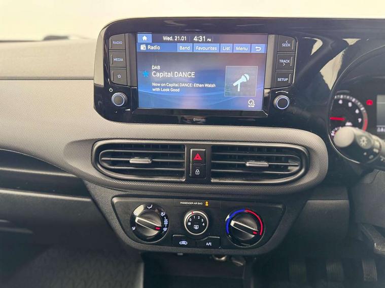8" Touchscreen centre console display audio with smart device integration and DAB, Apple car play/Android Auto, Bluetooth connectivity with voice recognition, Cruise control + speed limiter, Driver attention alert system, eCall emergency call system, ISG - Idle stop and go, Lane departure warning system with lane keep assist - LKAS, PAS, Rear view camera, Roadside assistance, Trip computer, 2 front/2 rear speakers, Steering wheel audio, phone and cruise controls, USB socket, 1 speed non intermittent rear windscreen wiper, Black finish on B pillars, Body colour door handles, Body coloured bumpers, Body coloured door mirrors, Electric front windows, Electric rear windows, Electrically adjustable and heated door mirrors, Front grille in matte black, Front intermittent wipers, Halogen daytime running lights, Halogen headlights, High beam assist, Indicator light on door mirrors, Rear Spoiler with Integrated Brake Light, 12v power outlet - front, 60/40 split folding flat to floor rear seats, Air conditioning, Auto light control, Bottle holders in front/rear doors + front centre console, Cabin and luggage compartment interior lighting, Cloth upholstery, Driver + passenger vanity mirrors, Driver's seat height adjustment, Driver/passenger sunvisors with ticket holders, Front door pockets, Front Head Restraints - Vertical and Horizontal Adjustment, Glove compartment, Height adjustable steering column, Isofix child seat preparation, Leather wrapped steering wheel and gear knob, Metal paint effect interior door handles, Rear door pockets, Vertical adjustment rear head restraints, 3x3 point rear seatbelts, Airbags - front, front side and curtain airbags, Anti-lock brake system, Autonomous emergency braking (AEB) with forward collision warning system, Brake assist function, Childproof rear door locks, Electronic stability control, Front and rear seatbelt reminder, Front seatbelt pretensioners, Hill start assist control (HAC), Passenger airbag deactivate switch, Traction control, Tyre pressure monitoring system, Immobiliser, Perimeter alarm, Remote central locking, Speed sensitive auto door locking, 15" alloy wheels, Tyre repair kit,