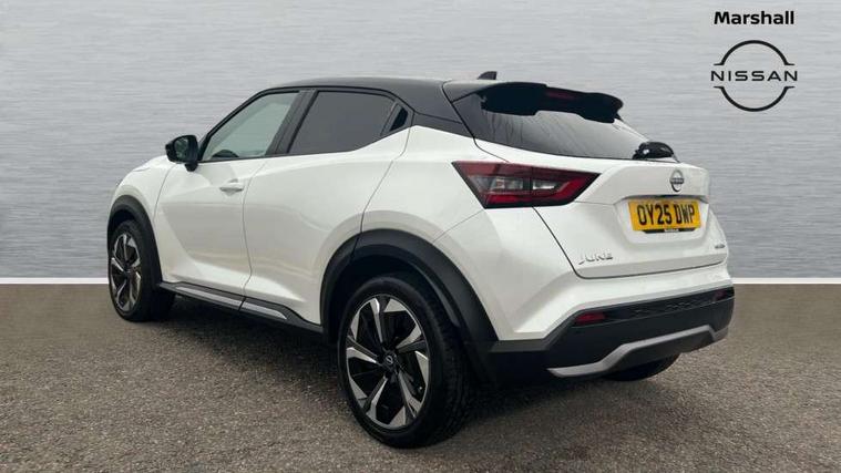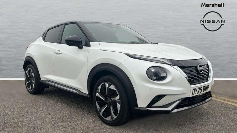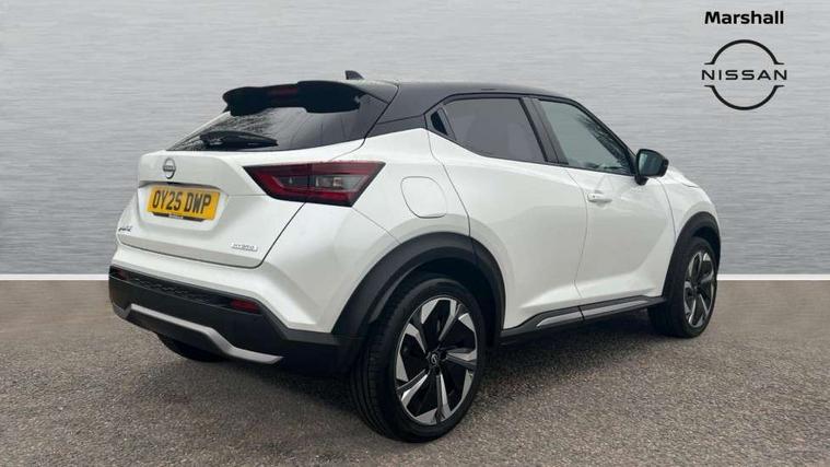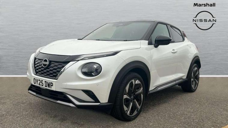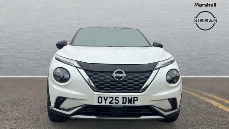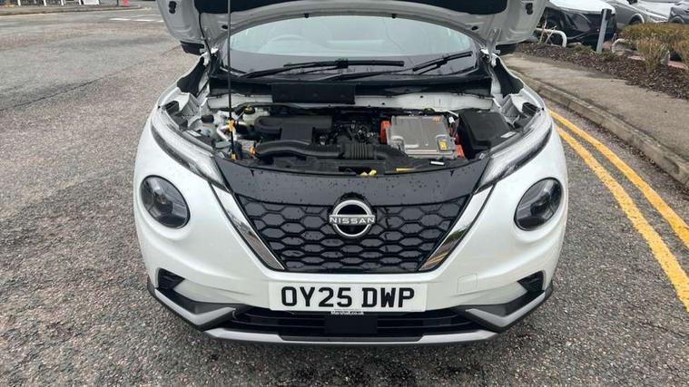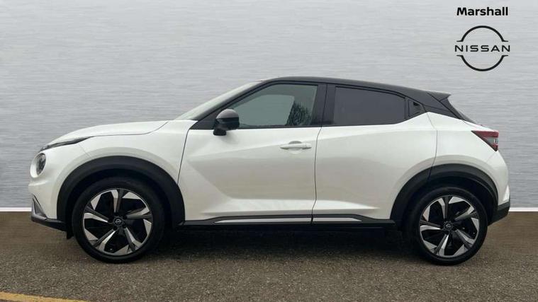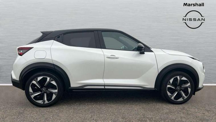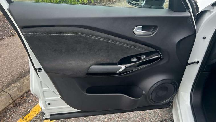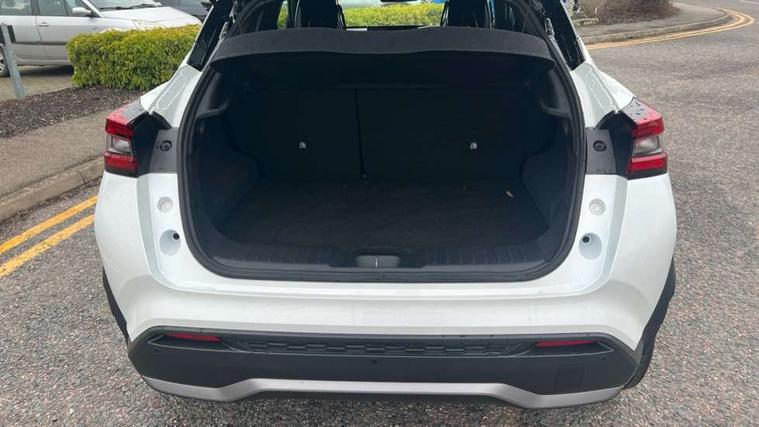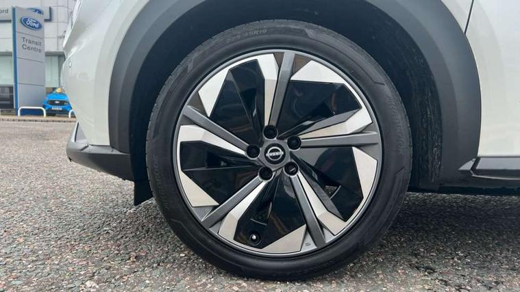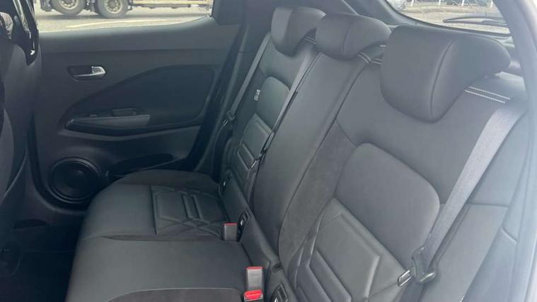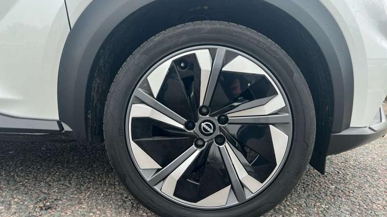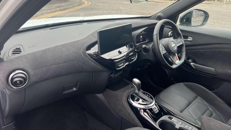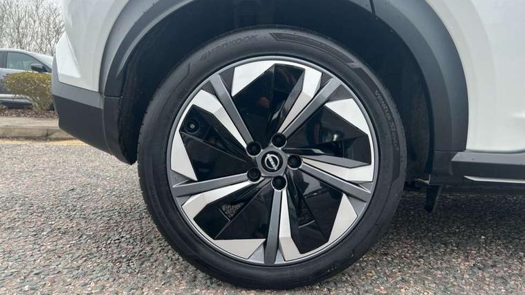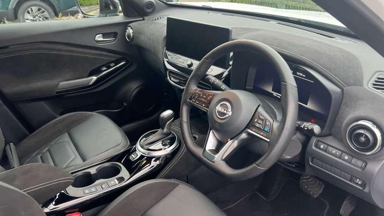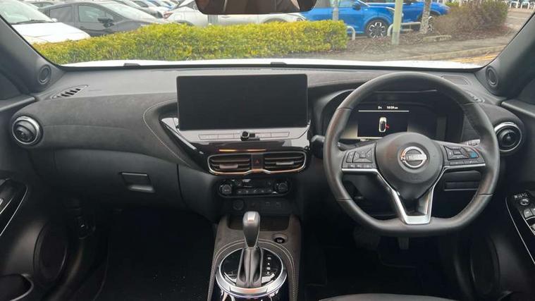 12.3" full colour TFT screen combimeter, Drive modes select (Eco, normal and sport), e-Pedal step, Emergency and breakdown call, EV mode switch, Front parking sensor, Intelligent driver alert system, Intelligent lane intervention, Lane departure warning system, Nissan connect 12.3" touch screen entertainment system, Nissan connect nav with TomTom traffic, Nissan connect services, Outside temperature sensor, Power Steering, Rear parking sensor, Stop/start button, Traffic sign recognition, Trip computer, Voice recognition, WiFi connectivity, Wireless Apple CarPlay and Google Android auto, Wireless Smartphone charger, 10 Bose speakers 6 speakers and 2 headrest speakers for driver/passenger seats, 2 X Rear console USB port, Bluetooth system, USB, Aux-in and 12V socket, Bose personal sound stage control, DAB Digital radio, Auto dimming frameless rear view mirror, Automatic hazard signal with emergency stop signal, Body colour door handles, Electrically adjustable door mirrors with integrated indicators, Follow me home headlights, Front and rear electric window with one touch driver window, Heated and auto folding door mirrors, High beam assist, LED 3rd brake light, LED daytime running lights, LED front fog lights, LED headlamps, LED rear fog lamp, LED rear lamps, One touch passenger window, Rain sensor windscreen wipers, Rear privacy glass, Rear side wing doors, Rear wiper, Roof spoiler, Shark fin roof antenna in solid Black, Three blink turn signal, 3 height adjustable rear headrests, 3 seat bench in 2nd row, 60/40 split folding rear seat, Automatic climate control, Card holder on driver sunvisor, Door ambient lighting, Driver seat back pocket, Driver side rear coat hanger, Driver/passenger sunvisors and vanity mirrors, Front and rear cabin lights, Front armrest, Front door pockets with bottle holders, Front head restraints, Front/rear passenger grab handles, Gear console ambient circle lighting, Height adjustable driver's seat, Internal chrome door handles, Leather gearshift knob, Luggage board, Luggage space lighting, Monoform sporty seats, Multifunction steering wheel, Passenger seat back pocket, Rear door bottle holders, Single front passenger seat, Smooth synthetic leather steering wheel, Synthetic leather kneepad, Telescopic steering wheel adjustment, Two cupholders in front centre console, Two rear isofix child seat anchorage points with top tether, Welcome light and console tray ambient lighting, Heat pack with height adjustable passenger seats - Juke, Interior personalisation pack - Juke, ProPilot pack - Juke Auto, Satin grey exterior personalisation pack - Juke, ABS with EBD and brake assist, Active ride control, Active Trace Control, Driver and passenger airbags, Driver and passenger side airbags, Electric handbrake with auto hold function, Electronic Stability Programme (ESP), Front and rear curtain airbags, Height adjustable seatbelts, Hill start assist, Intelligent emergency braking with pedestrian and cyclist recognition, Rear door child safety locks, Seatbelt reminder for driver/front passenger and rear seats, Three 3 point rear seatbelts, Traction control, Tyre pressure monitoring system, VDC Dynamic Vehicle Control, Alarm, Immobiliser, Intelligent key and start push button with walk away lock and approach unlock functions, Remote central locking, 19" Aero alloy wheels, Tyre puncture repair kit,