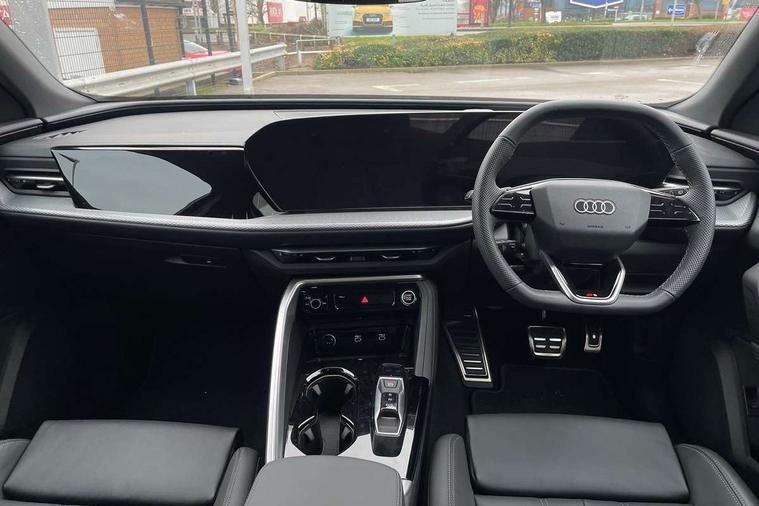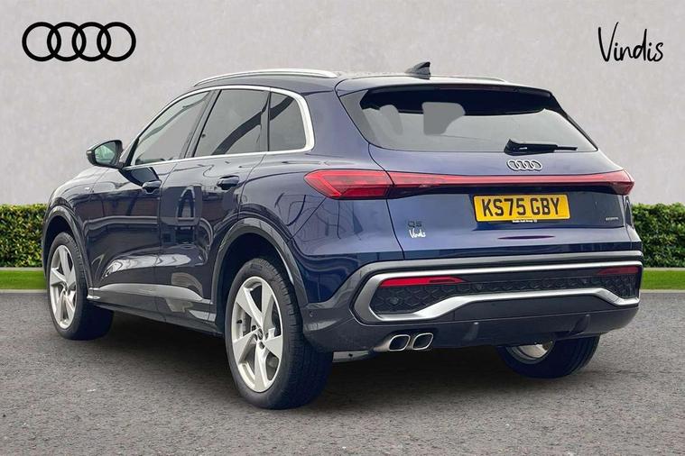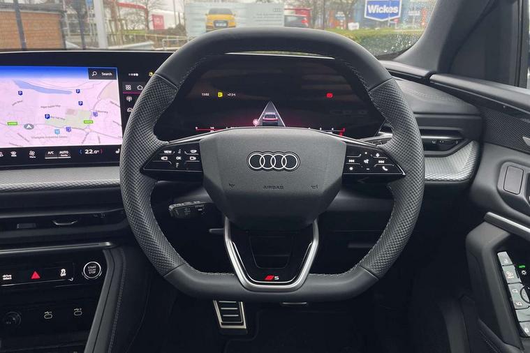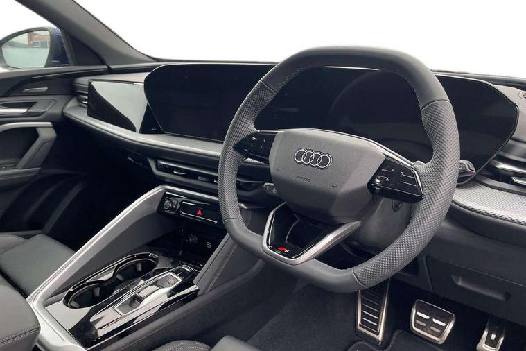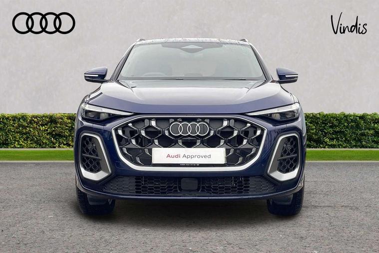 Adaptive cruise control, Attention and drowsiness detection with driver observation, Audi application store, Audi connect emergency call and service, Audi digital key, Audi drive select, Audi smartphone interface, Audi virtual cockpit plus with 11.9" OLED colour display, Camera based traffic sign recognition, Front cross traffic intersection assist, Lane change assistant with exit warning system, rear cross traffic alert and rear turn assist, Lane departure warning system, MMI navigation plus with high resolution 14.5" OLED touchscreen colour display, Park assist plus, PAS, Reversing camera, Swerve assist and front turn assist, Traffic sign based speed limiter, Audi sound system impressive sound with 8 loudspeakers including centre speaker and subwoofer, 6-channel amplifier with a total output of 180 watts, DAB Digital radio, Smartphone compartment with wireless charging, Aluminium roof rails, Auto dimming rear view mirror, Body coloured door mirrors, Electrically adjustable heated and folding + automatically dimming exterior mirrors, Front and rear electric windows, Front door sill trims with aluminium inlays, illuminated with 'S' logo, Grill frame, inlay and front air inlets in matt anthracite chrome, Headlight cleaning system, Heated rear window, High beam assist, High gloss window surrounds, LED headlights plus incl. digital DRL, dynamic coming and leaving home function with turning/all weather/motorway/manouevring and intersection lights, LED rear lights pro incl. dynamic rear indicators and illuminated light strip with animated coming and leaving home function, Logo projection light in exterior mirrors, Privacy glass, Projection third brake light for rear window in LED, Radiator grille in phantom black, Rear and side windows with heat insulating glass, Rear honeycombe grille in matt black with inlay in matt anthracite chrome, Rear side wing doors, Rear wash/wipe, S Line badge on the front wings, S line bumpers in contrasting Volcano grey metallic paint finish, Windscreen with acoustic glazing, 3 rear head restraints, 3 seat bench in 2nd row, 3 spoke leather steering wheel with multi-function buttons with touch control, flattened on top and bottom, with S badging and contrast stitching, 4 way electric lumbar support for driver and front passenger, Black carpets, Comfort centre armrest front, Deluxe 3 zone electronic climate control, Front and rear floor mats, Front sport seats with integrated head restraints, Headlining in black cloth, i-Size child seat mounting on the front passenger side and outer rear seats, i-Size and top tether on the outer rear seats, Increased charging capacity for USB ports 2X100 Watts in rear, 2X60 Watts in front, Interior trim in aluminium look, Luggage compartment lid, electrically opening and closing, Manual steering column adjustment, S embossed logo on front sport seats, Single front passenger seat, Softwrap in black, Stainless steel pedals and footrest, Steering wheel grips in perforated leather and shift paddles, Ambient lighting package plus - Q5, Rear seat bench plus pack - Q5, Storage and luggage compartment pack with luggage net - Q5, 3x3 point rear seatbelts, ABS, Acoustic vehicle alerting system, Convenience key with safelock, Driver and front passenger airbag with passenger airbag deactivation, Electric child safety locks, First aid kit with warning triangle and high visibility vests, Front emergency brake assist, Front side airbags with head airbag system and front interaction airbag, Hill hold assist, Rear seat occupant reminder, Tyre pressure loss indicator, Anti-theft wheel bolts, Thatcham approved category 1 anti theft alarm, Accent surfaces and control buttons in gloss black, Anthracite matt brushed aluminium inlays with linear embossing, Black dashboard with contrast stitching, Upper and lower interior elements in artificial leather, Tyre repair kit,