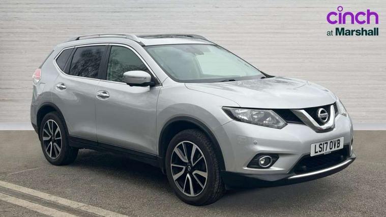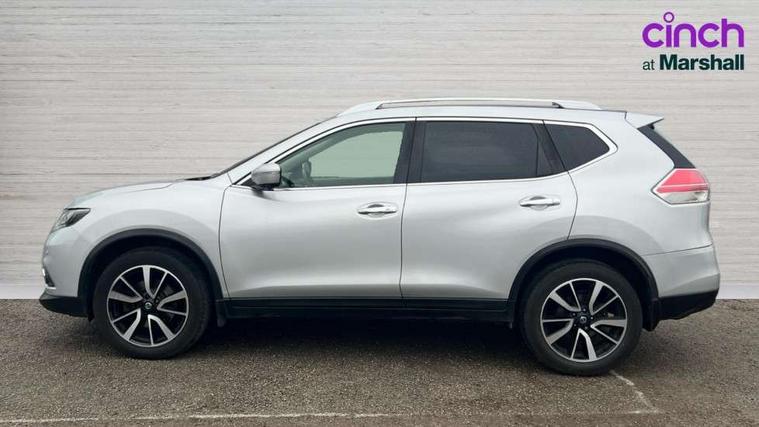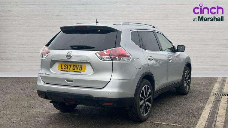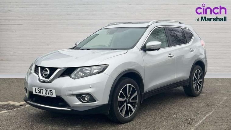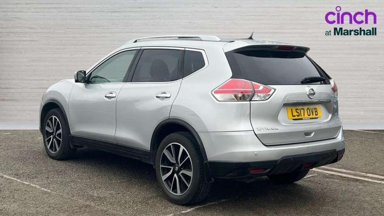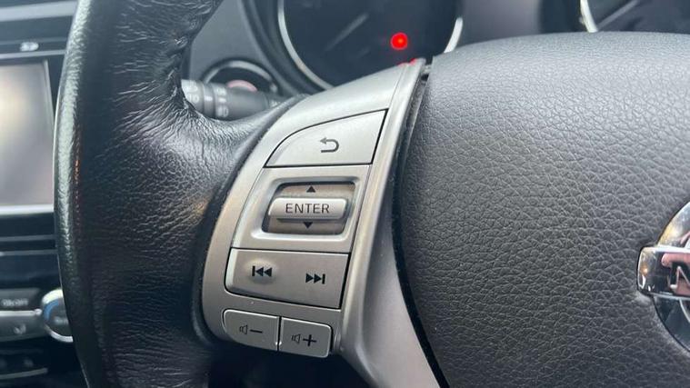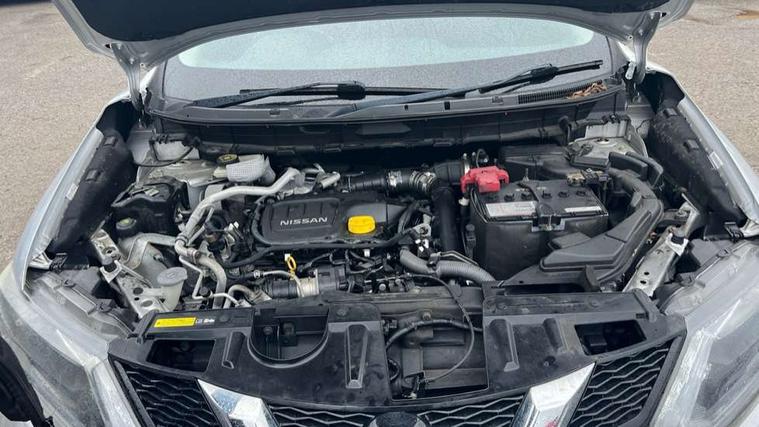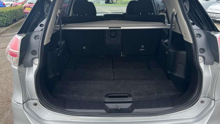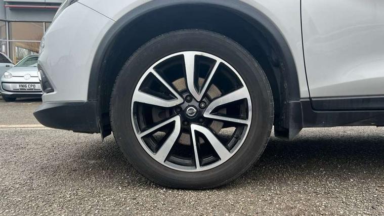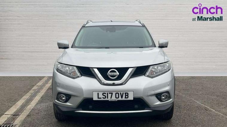 5" TFT driver information centre, Around View Monitor, Automatic tailgate opening, Bluetooth phone integration system, Cruise control + speed limiter, Engine start button, Front and rear parking cameras, Front and rear parking sensors, Lane departure warning system, Nissan connect sat nav system, PAS, Service interval indicator, Side view cameras, Traffic sign recognition, Trip computer, Diesel particulate filter, 6 speakers, Audio remote control in steering wheel, DAB Digital radio, Radio/CD, USB/aux input socket, Auto dimming rear view mirror, Automatic headlights, Automatic rain sensing wipers, Black honeycomb front grille, Body colour bumpers, Chrome door handles, Chrome window surround, Electric folding door mirrors, Electric panoramic sunroof, Electrically adjustable and heated door mirrors, Front and rear power windows, Front foglights with chrome rings, LED daytime running lights, Rear privacy glass, Rear wiper, Satin silver roof rails, 60/40 split folding rear seat, Cloth upholstery, Configurable luggage board system, Driver's seat manual height adjust, Dual zone climate control, Front and rear headrests, Front armrest, Isofix child seat attachment, Leather steering wheel and gear knob, Rake/reach adjustable steering wheel, Rear armrest, 3 point seatbelts on all seats, ABS, Child locks on rear doors, Driver and passenger airbags, EBD + Brake Assist, Electronic parking brake, ESP + traction control, Forward emergency braking, Front and rear curtain airbags, Hill start assist, Tyre pressure monitoring system, Warning triangle, Alarm, Immobiliser, Intelligent Key, Remote central locking, Metal grain interior trim, 19" 5 spoke alloy wheels, Space saver spare wheel,