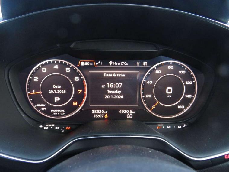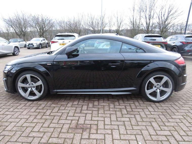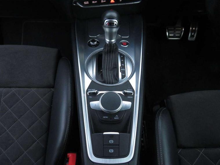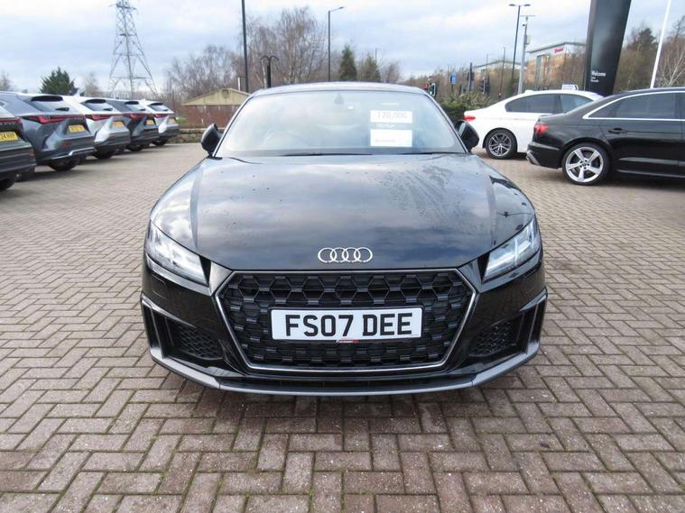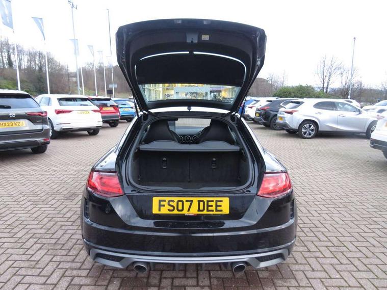 Audi drive select with 4 Pre configured modes, Audi virtual cockpit - 12.3" high-resolution LCD display with fully customisable instrument cluster, Cruise control + speed limiter, MMI touch panel, Mobile phone preparation with bluetooth interface, Progressive power assisted steering, Service interval indicator, Start/Stop system with energy recuperation, TP memo, S line sports suspension, AM/FM radio, Audi music interface, Bluetooth audio streaming, DAB Digital radio, MMI Radio with CD player and SD/XC card slot, Auto dimming rear view mirror, Auto headlight range control, Body colour bumpers, Body colour electrically adjustable and heated door mirrors with built in LED side indicators, Dynamic rear indicators, Electric folding door mirrors, Electric front windows, Front fog lights, Green tinted heat insulating glass, Headlight wash system, High gloss black radiator grille, LED daytime running lights, LED headlights with LED rear lights + dynamic rear indicators, Light and rain sensors, Retractable rear boot spoiler, S line badges on front wings, S Line body styling, S Line front and rear bumpers, S line rear diffuser with platinum grey insert, S line sill plates, Sunband for windscreen, 12V socket, 3 spoke flat bottomed high multi-function leather sport steering wheel with gearshift paddles, 4 way electric lumbar support for driver and front passenger, Air conditioning, Black headlining, Door sill trims with S line logo, Extended aluminium look with stainless steel pedals, Front centre armrest, Front super sports seats, Heated front seats, Height adjustable driver's seat, Height adjustable front head restraints, Height/reach adjust steering wheel, ISOFIX child seat mounting for front passenger seat with airbag deactivation, Perforated leather gearknob, Rear head restraints, Rear top tether child seat ISOFIX attachment, S Line badge on steering wheel, Split folding rear seat, Top tether anchor plate for isofix child seat, Non smoking pack - TT/TT RS, 3 point front seat belts, ABS, ASR traction control, Brake energy regeneration, Curtain airbags, Driver and front passenger airbag with front passenger airbag deactivation, EDL traction control, Electromechanical parking brake, ESP, First aid kit, Front side airbags, Head airbags, Hill hold assist, Seatbelt warning, Tyre pressure warning, Warning triangle, Anti theft alarm, Anti theft wheel bolts, Immobiliser, Keyless Go, Remote central locking, Matt brushed aluminium inlays, Tool kit, Tyre repair kit,