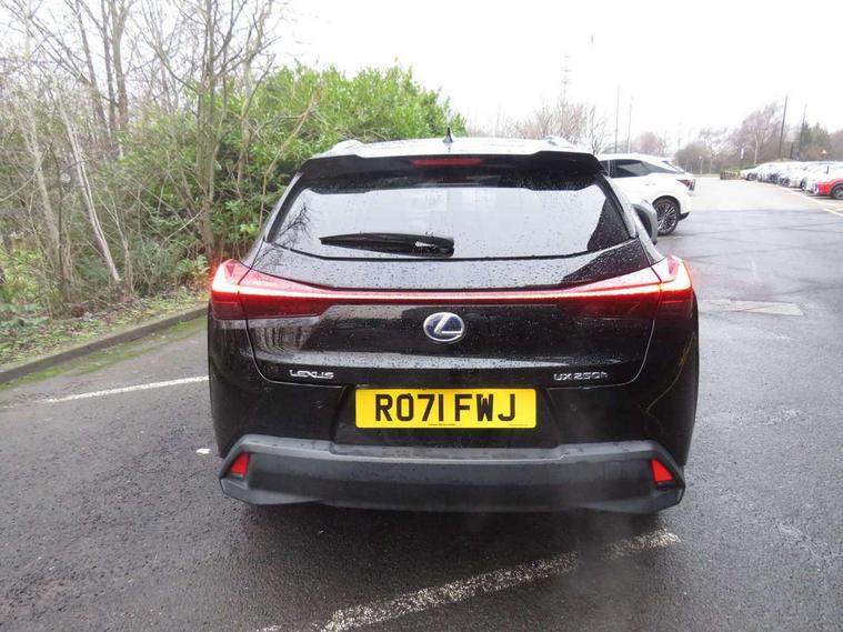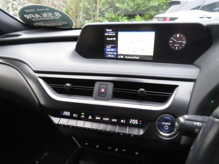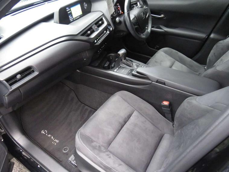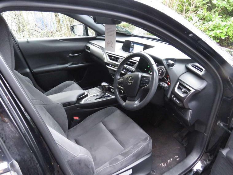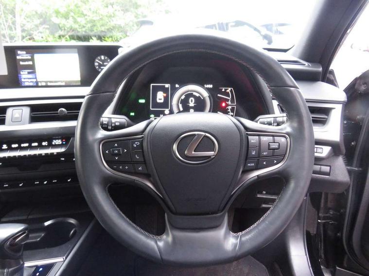 4 driving modes EV/Eco/Normal/Sport, 7" Lexus media display, 7" TFT instrument cluster, Analogue clock with GPS function, Apple car play/Android Auto, Compatible mobile phone bluetooth with audio streaming, E-call, Electric power steering (EPS) with speed sensitive features, Lane change flasher function, Lexus link connected services, Lexus safety systems + includes dynamic radar cruise control, pre collision system day and night, lane tracing assist, road sign assist, Push button start, Remote touch interface, Trip computer, Vehicle Dynamics Integrated Management (VDIM), Vehicle Stability Control (VSC), 2 front USB and 2 rear USB charging points, 6 speakers, AM/FM and DAB radio, AUX socket with VTR compatibility, CD player, Acoustic windscreen, Aero stabilising arch mouldings, Aero stabilising rear lights, Aero ventilated wheels, Bi-LED (low and high beam) headlights with Auto High Beam (AHB), Black roof drip mouldings, Black wheel arches, Body adhesive, laser screw welding and laser brazed roof structure, Body coloured bumpers, Electric adjustable/heated door mirrors, Front and rear one touch power windows, with anti-jam protection, Headlight cleaners, LED daytime running lights, LED tail lights, LED third brake light, Light green UV glass, Manual control of windscreen wipers, Rear wiper, Shark fin roof aerial, Single hidden exhaust pipe, Towing preparation, Variable front intermittent wipers, 12V accessory port centre console and luggage compartment, 2 cup holders in the front and rear centre console, 2 x folding shopping bag hooks in boot, 2 x sun visors with vanity mirror and lamp, 4 x tie down hooks in the boot, 5 headrests, 6 way driver and passenger manually adjustable front seats, 60/40 split folding rear seat, Card holder installed in driver and passengers sun visors, Centre armrest with storage, Driver and passenger door pocket, Dual zone electronic climate control + Nano-E humidity sensor, Glovebox, Illuminated entry system, Leather gear lever, Leather steering wheel, LED interior illumination, Map pockets in the rear of passenger's front seat, Premium fabric upholstery, Rear air vents with 2 USB chargers, Rear armrest with 2 cupholders, Storage tray under audio panel, Textile carpet mats, Tilt/reach adjustable steering column, Under deck storage, Under desk side storage, 2 x Isofix child rear seat restraints, 3x3 point rear seatbelts, Anti-lock braking system (ABS), BAS (Brake Assist System), Driver and front passenger 2 stage airbag, Driver and front passenger knee airbag, Driver/front passenger side airbags, EBD - Electronic brakeforce distribution, ECB (Electronically Controlled Brake System), Electric parking brake, Front adjustable seatbelt anchor points, Front and rear curtain shield airbags, Front outer seatbelt+pre-tensioners, force limiter+tension reduction: 3-point with active safety link to PCS, Hill start assist control (HAC), Passenger airbag cut-off device, Rear outer seatbelt+pre-tensioners, force limiter+tension reduction: 3-point with active safety link to PCS, Centre belt w/o pre tensioner+force limiter, Secondary Collision Brake (SCB), TRC (Traction Control), Tyre pressure warning, 2 x remote key fobs, Anti theft system : Alarm instruction sensor, glass breakage sensor and engine immobiliser, Locking wheel nuts, Remote central door locking, Speed sensitive auto door locking, Two motion door lock with double lock, VIN Window etching, 17" Alloy wheels, Tyre repair kit,
