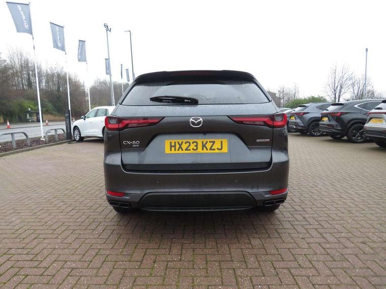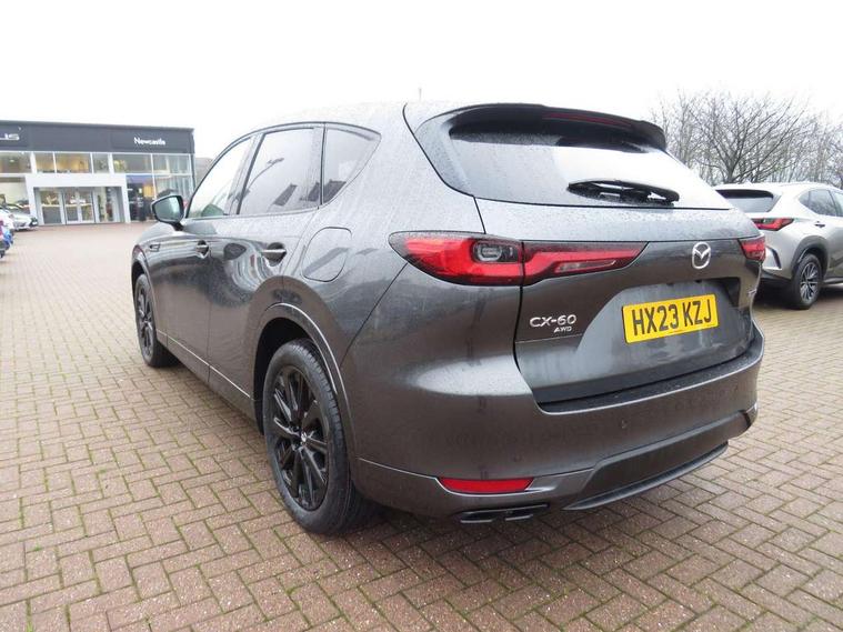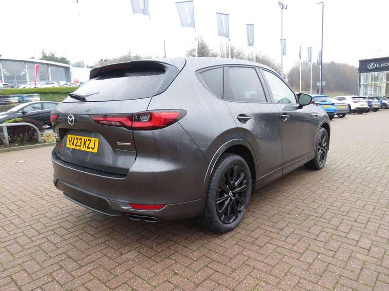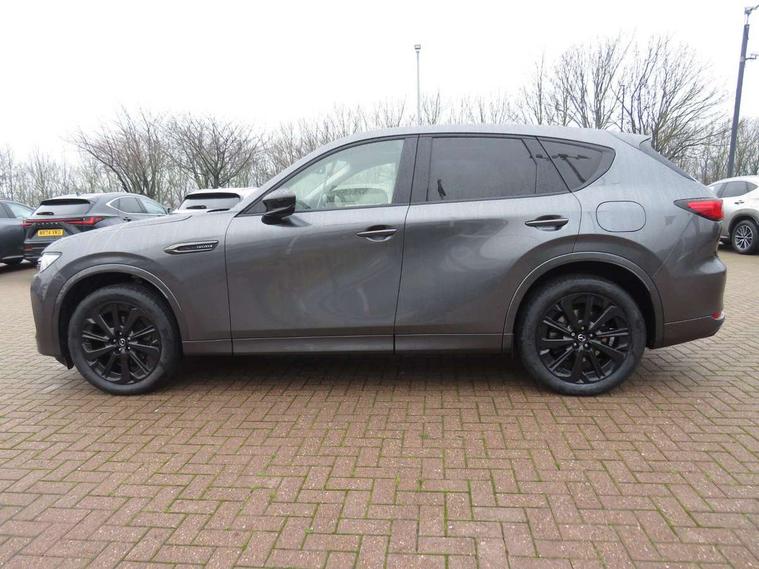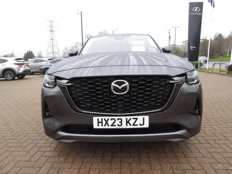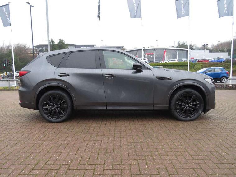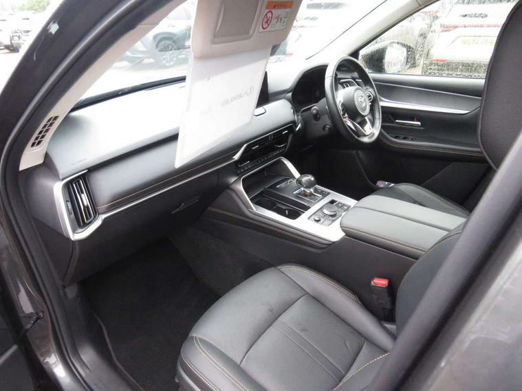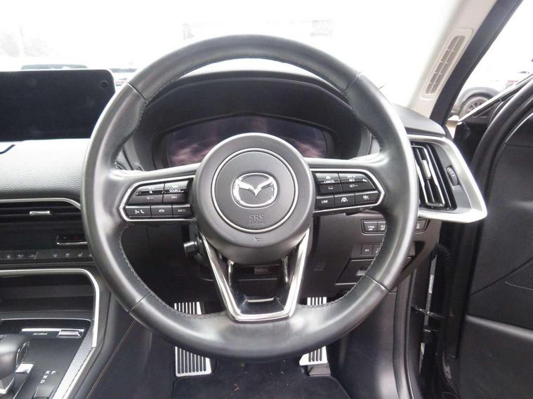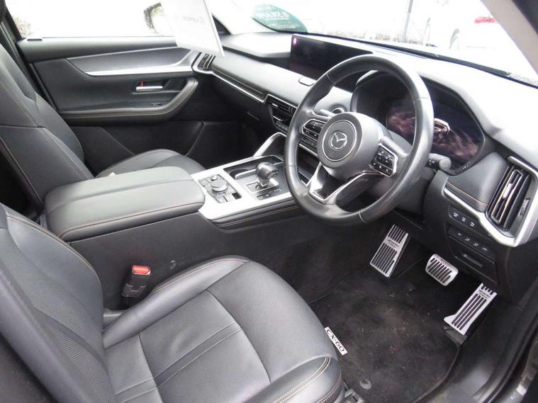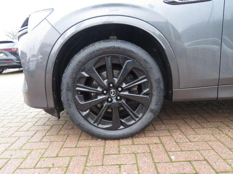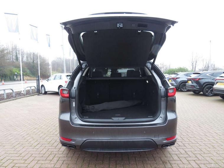 Emergency lane keeping with blind spot assist, Low washer fluid warning light, 12.3" Colour entertainment centre display with mazda connect infotainment, 12.3" TFT Colour display, Adjustable speed limiter, Black faux leather vinyl dashboard with titanium piping, Blind spot assist, Blind spot monitoring with rear cross traffic alert, Cruise control, Distance alert system, Driver attention alert system, Driver Monitoring with personal identification, E-call with GPS, Emergency stop signalling system, Exit warning function, Front and rear parking sensors, Ingress / Egress support and automatic driver position guide, Integrated bluetooth, Intelligent speed assist, Kinematic posture control, Lane keep assist system (LAS) with Lane departure warning system (LDWS), Mazda Driver Personalisation System, Mazda Navigation System with european mapping, Multimedia Commander, PAS, Power lift gate with handsfree function, Power start/stop button, Reversing camera with static guide lines, Speed alert, Traffic sign recognition, Trip computer, Windscreen projected colour active driving display, Wireless apple car play/android Auto, Internal Combustion Engine Sound Emulator, Mi-Drive (Normal, Sport, Off-road, Towing and EV mode), Paddle shift, AM/FM and DAB radio, Bose surround sound system with 12 Speaker, Bose center point, Bass match and audio pilot technology, Steering wheel mounted audio/bluetooth controls, USB-C inputs (x2 front and x2 rear), Auto dimming driver's door mirror, Automatic headlight levelling, B-pillar and C-pillar garnishes in gloss black finish, Body colour roof spoiler, Body coloured bumpers, Body coloured wheel arch and side mouldings, Coming/leaving home lighting function, Dark plated headlight lense, Dark plating finish signature wing in front grille, Dark plating front side garnish, Differentiated front bumper design to accentuate the intake, Dusk sensing headlights, Electric front/rear windows with one touch auto up/down, Electrically adjustable, heated auto power folding door mirrors with memory, Frameless auto dimming interior rear view mirror, Front kodo turn signal, Front wiper de-icer, Gloss black door mirrors, Headlight washers, High beam control, Honeycomb radiator grille in gloss black, LED 3rd brake light, LED headlamps, LED rear signature combination lamps, Rain sensing front wipers with adjustable sensitivity and speed, Rear side wing doors, Rear wiper, Roof pillars and roof lining finished in lighter colour to soften the overall look, Signature LED daytime running lights, Silver decoration panel, 12v power outlet - front, 12V socket in boot, 3 height adjustable rear headrests, 3 seat bench in 2nd row, 40/20/40 split folding rear seats with quick levers in the boot, Ambient lighting, Cargo net, Chrome interior trim accents with steering wheel centre bezel, surround of engine start / stop button and glove box handle, Door panel trim vinyl leather with armrest, Driver and front passenger two rear grab handles with rear coat hooks, Driver and front passenger visors with covered vanity mirror and driver ticket holder, Driver seat electric tilt, slide, recline, height and lumbar adjustment, Driver, front passenger and two rear door pockets, Driver/passenger front seatback pockets, Dual zone climate control air conditioning with rear air vents, Electric telescopic and tilt adjustment steering wheel, Folding rear centre armrest with two cup holders, Front centre storage with two cupholders, Front down lamp with front and rear foot lamps, Front headrests, Front passengers seat electric slide, recline, height and lumbar adjustment, Front seat ventilation with 3-stage setting, Glovebox illumination, Heated front seats with 3 stage setting, Heated leather wrapped steering wheel, Heated outer rear seats with 3-stage setting, ISOFIX child seat anchorage points attached on outer rear seats, Karakuri tonneau cover, Leather upholstery, Leather wrapped gear shift knob, LED illumination luggage compartment, Practical and spacious front centre armrest storage, Rear seat recline function for rear passenger comfort, Remote fold down rear seats, Remote pre-heating/cooling, Roof mounted sunglasses holder, Single front passenger seat, 3 point ELR front seat belts x2 with pretensioners, 3 point ELR rear seat belts, Active bonnet, Anti-lock braking system (ABS), Drivers knee airbag, DSC - Dynamic Stability Control, Electronic parking brake with auto disengage function and auto hold function, Front and rear curtain airbags, Front dual stage driver and single stage front passenger airbags, Front passenger airbag cut-off switch, Front side airbags, Front smart city brake support, Hill decent control, Hill launch assist, Manual rear child locks, Seatbelt reminder for driver/front passenger and rear seats, Traction control, Tyre pressure monitoring system (TPMS), Remote central locking with deadlocking and automatic door lock when driving, Smart keyless entry, Thatcham accredited alarm and immobiliser, Black centre console panel, Dashboard panel - Black Vinyl, 20" Black metallic alloy wheels, Emergency tyre repair kit,