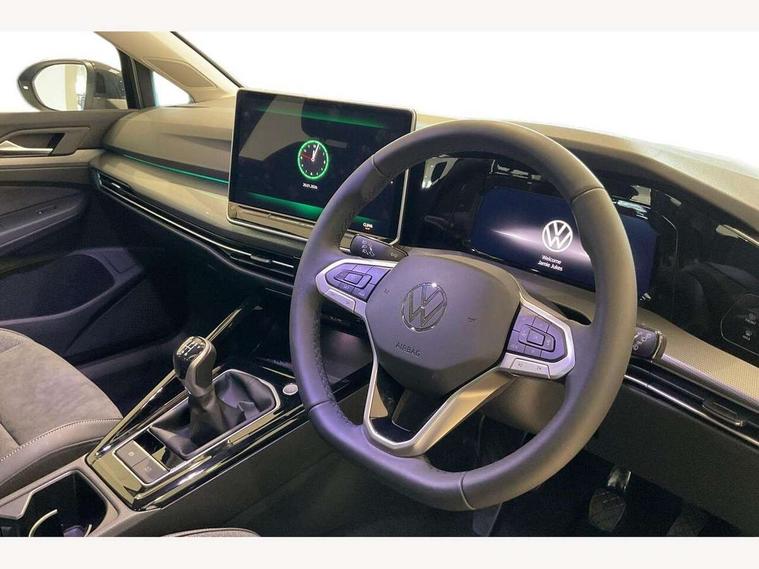 Activated carbon canister, Adaptive cruise control (ACC), Advanced driver attention and drowsiness monitor, Dynamic road sign display, E-Sim card for online connectivity, eCall emergency call system, Multi-color Digital cockpit pro, selection of different info profile possible, Multifunction front facing camera for distance control, Navigation system, Oncoming vehicle braking when turning including swerve support, Side assist blind spot lane change system, rear traffic alert and exit warning system, Speed limiter, Speedo, rev counter, electronic odometer, trip, service interval display, exterior temperature and fuel gauge, Voice enhancer and voice control, Warning signal and warning light for front and rear seatbelts not fastened, We connect plus preparation, We connect preparation, Wireless app connect, Petrol Particulate Filter, Start-stop system with battery regeneration (recuperation - energy recovery during braking), XDS electronic differential lock for improved traction and handling, 2 USB C ports in front, 2 USB charging sockets on the centre console in the rear charging capacity upto 45W, Digital radio reception (DAB), Diversity antenna for FM reception, Gaming platform via car app, Infotainment system with 12.9" display, Mobile phone interface with inductive charging feature, 3rd brake light, Automatic headlamp activation with Coming home and Leaving home feature, Body colour bumpers, Body colour door handles, Body colour door mirrors, Chrome trimmed front air intake surrounds, Chrome trims on the side window bottom, Exterior mirrors convex on the left and aspherical on the right, Front and rear electric windows, Heat insulating windshield made of laminated glass, LED separate daytime running light, Rear exhaust tailpipe, Rear fog light on one side and reversing lights on both sides, Rear side wing doors, Rear windscreen washer and wiper with interval delay, Remote electrically foldable door mirrors, puddle lights and reverse activated passenger's door mirror, Welcome light with surround lighting, 12V socket in front centre console, 12V socket in luggage compartment, 3 rear head restraints, 3 seat bench in 2nd row, Air care climatronic 3 Zone automatic climate control with rear air conditioning control panel, Ambient lighting with 30 colour including LED light unit in front footwell with selectable light colour, Chrome plated radiator grille inserts, air vent surrounds and light switch surrounds, Front + rear black carpet mats, Front centre armrest, ISOFIX anchors for child seats on outer rear bench seats and on front passanger seat compatible for i-Size, Leather gearshift handle, Luggage compartment lighting, Rear cupholder and loadthough, Single front passenger seat, Soul black instrument panel, Split folding backrest with centre armrest and unsplit rear seat bench, Standard pedal cluster, Storm grey roof lining, Sun visors with illuminated vanity mirrors, Driver assistance pack - Golf Estate/Hatchback Manual, 3 point height adj front seatbelts + pretensioners, 3 rear three point seatbelts, ABS, Autonomous emergency braking front assist with pedestrian and cyclist monitoring, Child locks on rear doors, Driver and front passenger airbag with front passenger airbag deactivation, Electronic parking brake with auto hold, ESC (Electronic Stability Control), Extended pedestrian protection measures, Rear disc brakes, Two tone horn, Tyre pressure loss indicator, Volkswagen roadside assistance, Anti theft wheel bolts, Preparation for alcohol interlock, New brushed dark metal decorative inserts for dashboard and front door panels,