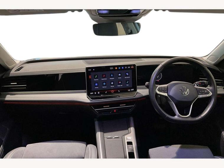 2 x Front USB-C ports, 2 x USB-C charging sockets on the centre console in the rear, charging capacity up to 45W, Adaptive cruise control, Advanced driver attention and drowsiness monitor, Digital cockpit pro 10.25" high resolution, Discover media navigation system includes streaming and internet, Dynamic road sign display, E-Sim card for online connectivity, eCall emergency call service, Full electric tailgate operation, Inductive smartphone charging without external antenna connection, Memory feature for park assist, Oncoming vehicle braking when turning including swerve support, Park assist with park distance control, Predictive speed limiter, Preparation for We connect and We connect plus, Wireless app connect, Battery 380 A (59 Ah) EFB+, Front wheel drive, Petrol Particulate Filter, Rear shock absorbers, Auto dimming interior rear view mirror, Automatic headlights, Body colour bumpers, Body colour door handles, LED third brake light, Nameplate set in black, Rain sensor, Rear side wing doors, Rear wiper, Welcome light with surround lighting, 3 seat bench in 2nd row, 3 zone air care climatronic with rear air conditioning control panel, Front + rear carpet mats, Front head restraints, Isofix child seat preparation, easy-fit (for two outer rear seats, and front passenger seat), compatible with I-size, Leather-wrapped multi-function steering wheel with shift paddles, Luggage compartment cover, power operated, Single front passenger seat, Standard pedal cluster, Sun visors with illuminated vanity mirrors for driver and front passenger, Sunblind for rear side windows, Three rear head restraints, Unsplit rear seat bench, split folding backrest, 3x3 point rear seat belts, ABS (Anti locking brake system) includes BAS (Brake assist) and EBD (Electronic brake pressure distribution), Autonomous emergency braking front assist with pedestrian and cyclist monitoring, Disc brakes in front, Driver/Front Passenger airbags, Drivers knee airbag, Electronic parking brake with auto hold, ESC (Electronic stability control) + EDL (Electronic Differential lock) and ASR (Traction control), EDTC (Engine drag torque control), Extended safety system with proactive passenger protection system, Front passenger airbag deactivation switch, Hill hold function, Tyre pressure loss indicator, Warning triangle and first aid kit, Alarm with interior protection, Keyless locking and starting system keyless access with safelock, Aluminium decorative inserts, Tool kit for tyre mobility set, Trims for alloy wheels,