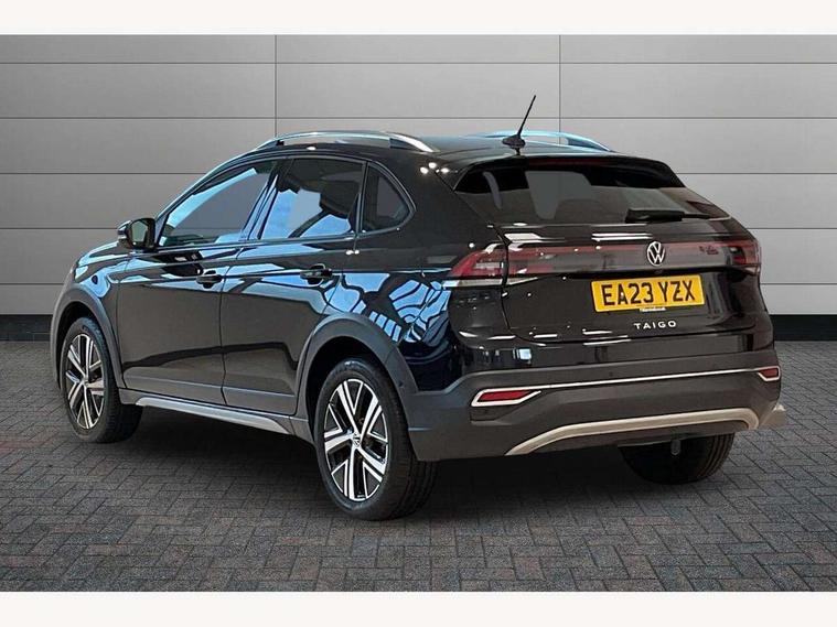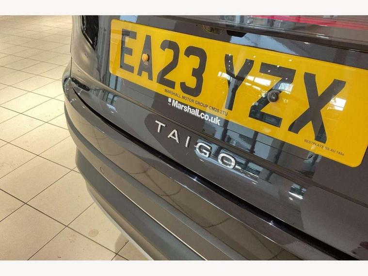 App-Connect including App-Connect Wireless, Digital cockpit pro - 10.25" high resolution TFT dash display screen with customizable menus and information, Driver alert system, e-Call (emergency call), Power Steering, Travel assist including emergency assist, Washer fluid level indicator, Wireless Charging including Bluetooth, Rear shock absorption, Start-stop system with battery regeneration (recuperation - energy recovery during braking), Digital radio reception (DAB+), Diversity antenna for FM reception, WeConnect plus, Advanced high beam control dynamic light assist for LED matrix headlamps, Aspherical driver's exterior mirror, Body coloured bumpers and radiator grille with chrome trim and front fog lamps with chrome bezel, Body coloured exterior mirror housings and door handles, Dual chrome twin tailpipes on left and right, Dynamic headlight range control, Electric windows, Exterior ambient lighting in illuminated front grille, External USB type C socket and charging sockets, Front fog lamps with cornering function, LED matrix headlamps, LED rear combination lamp, LED third brake light, Left convex exterior mirror, Power folding adjustable/heated exterior mirrors and front passenger exterior mirror lowering function, Rear fog light on one side, reversing light on both sides, Rear side wing doors, Rear wash/wipe with intermittent wipe setting, 12V socket in centre console, 2 front reading lights, 3 rear head restraints, 3 seat bench in 2nd row, Air care climatronic air conditoning system with active combination filter and 2-zone temperature control, Ambient lighting with logo projection, Black carpets, Child seat anchor for child seat system i-Size, 2x top tether and child seat anchor in front on front passenger side, Chrome bezel for instrument cluster, vents, door handles + gear shift, Driver and front passenger seat height adjustment, Front + rear carpet mats, Front centre armrest, Front footwell illumination, Front sports comfort seats, Height and reach adjustable steering wheel, Interior ambient lighting and surround lighting, Leather trimmed gear knob, Leather wrapped multifunction steering wheel, Luggage compartment floor, Luggage compartment light, Lumbar support for driver's and front passengers seat, Single front passenger seat, Split folding backrest with centre armrest and unsplit rear seat bench, Storage compartment under front seats, Sun visors with illuminated vanity mirrors, Chrome Package - Taigo, Drivers assistance pack - Taigo, Light and sight pack - Taigo, 2 x 3-point seatbelts/outer rear seats with ECE label, 3-point seat belts in front with pretensioner and height adjustment, 3-point seatbelt for centre rear seat, Driver and front passenger airbags with front passenger airbag de-activation, front side and curtain airbags, Driver and front passenger safety-optimised head restraints, Electronic stability control, Extended and predictive pedestrian/ cyclist protection, Front and rear disc brakes, Front curtain and side airbags with center airbag, Hill start assist, Manual rear child locks, Single tone horn, Tyre pressure loss indicator, Anti-theft alarm system with interior monitoring, backup horn, and towing protection, Anti-theft wheel bolts, Low rolling resistance tyres,