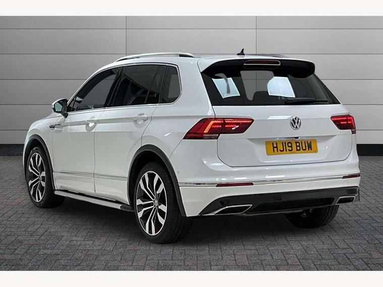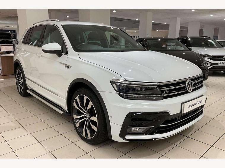 Active information display, Adaptive cruise control, App-Connect, Bluetooth phone integration system, Car-Net Security and Service, Coasting function, Distance control assist, Drive mode selector, Driver profile selection, Electromechanical power steering, Fatigue detection system, Front assist, radar sensor controlled distance monitor, city emergency braking + predictive pedestrian protection, Instrument cluster, Lane assist, Low washer fluid warning light, Multifunction colour display, Outside temperature display, Service interval indicator, Speed limiter, Start/Stop function, Warning lights, Misfuel prevention device for diesel engine, XDS electronic differential lock, 2x USB sockets in front, 4 X 20 watt output, DAB Digital radio, MP3 compatible single CD player, SD card slot, Simultaneous pairing of 2 compatible mobile devices, SMS functionality - read, compose and send SMS messages using touch-screen display, Title and cover art display, 3D effect cherry red LED rear tail lights, Auto dimming interior mirror, Automatic activation of hazard warning lights, Black door protector with chrome inserts, Body colour door handles, Body colour door mirrors, Body coloured bumpers, Chrome side body trim, Chrome side window surrounds, Chrome trimmed radiator grille, Coming/leaving home lighting function, Dusk sensor + auto driving lights, Electric folding door mirrors, Electric heated + adjustable door mirrors, Electric panoramic sunroof with sunblind, Front air intake with chrome strip, Front and rear electric windows, Halogen clear headlights with integrated indicators and range adjustable, Heated rear window, High level 3rd brake light, LED headlights with dynamic light assist daytime running lights and cornering front fog lights, LED rear number plate lights, Rain sensor windscreen wipers, Rear windscreen washer and wiper with interval delay, Side door sills with chrome inserts, Side skirts and rear bumper with chrome insert, Silver rear diffuser trim, Silver roof rails, Silver under body guard, Tinted windows (B pillar backwards), Windscreen wipers/ intermittent wipe + 4 position delay, 12V Accessory socket in centre console, 3 rear headrests, 3 zone climate control, 4 load lashing points, 40:20:40 split folding rear seats, Bag hook in luggage compartment, Driver + front passenger lumbar support, Foldable passenger seatback, Front + rear carpet mats, Front centre armrest with 12v socket, Front centre armrest with storage + rear 2 air vents + cupholders, Front seat back storage pockets, Front seatback folding tables, Height/reach adjust steering wheel, Illuminated driver/passenger vanity mirrors, Illuminated scuff plates, Instrument lighting white adjustable panel illumination, Interior light with delay, Isofix Preparation 2 Rear child seats, Leather gear knob, Load through provision with 2 cupholders when folded, Lockable cooled glovebox, Luggage compartment lighting, Luggage compartment side storage, Map pockets on front seats, Passenger seat height adjuster, Passenger underseat drawer, Rear cupholders, Removable luggage cover, Sliding/reclining rear seats, Storage compartment in driver's door, Storage compartment in passenger's door, Storage compartment in rear doors, Storage tray on dashboard, Sunglasses storage, Variable boot floor, Ambient lighting pack - Tiguan, Winter pack - Tiguan/Tiguan Allspace, 3 rear 3 point seatbelts, ABS+EBD+Brake assist, Active bonnet, Active pedestrian safety system, Curtain airbags, Driver/Front Passenger airbags, Driver/Passenger whiplash optimised head restraints, Drivers knee airbag, DTC - Drag torque control, Electronic parking brake with auto hold, ESP with EDL + ASR, First aid kit, Front side airbags, Front ventilated disc brakes and rear disc brakes, Head airbag system, Height adjustable front 3 point seatbelts + pretensioners, Hill hold control, Passenger airbag deactivate switch, Passenger knee airbag, Proactive preventive occupant protection, Rear side airbags, Rigid safety cell with front and rear crumple zones, Seatbelt warning lamp and buzzer, Two tone horn, Warning triangle, Alarm with interior protection, Electronic engine immobiliser, Remote central locking with 2 remote folding keys, Chrome door trim inserts, Piano black interior trim, Steel space saver spare wheel,