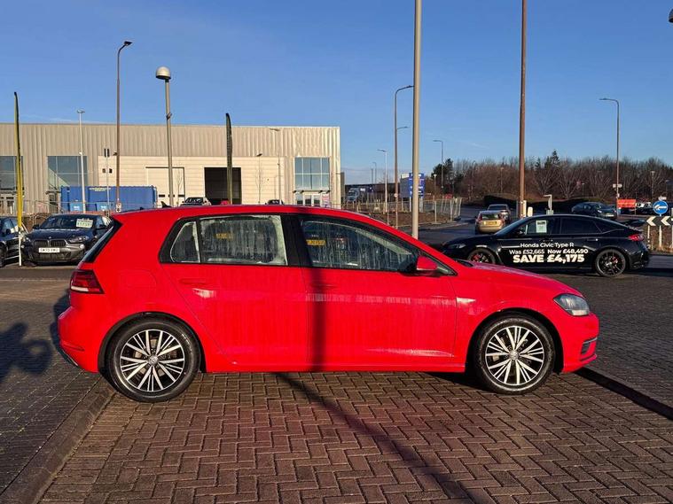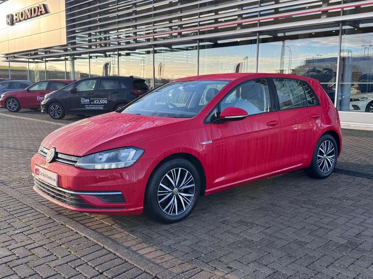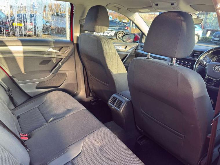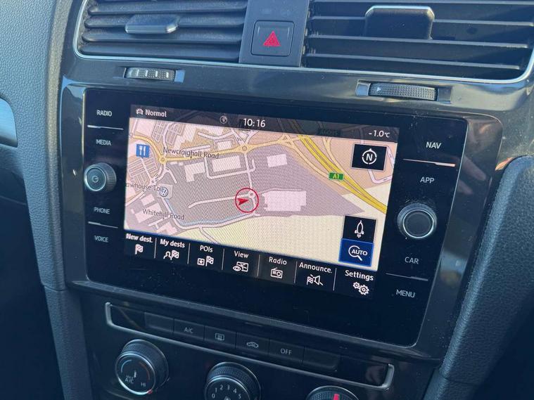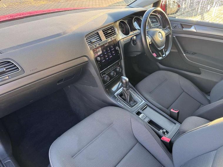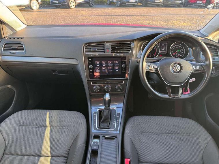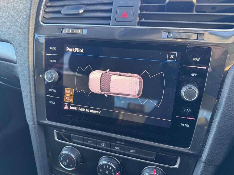'Lights On' Reminder warning buzzer, 8" colour touch screen, ACC - Adaptive cruise control with front assist, forward collision warning, distance monitoring, city emergency brake and speed limiter, App-Connect, Bluetooth telephone and audio connection for compatible devices, Brake pad wear indicator warning light, Drive mode selector, Driver alert system, Driver profile selection, Front assist, radar sensor controlled distance monitor, city emergency braking + predictive pedestrian protection, Front assistant collision mitigation, Instrument cluster in white, Multifunction computer with visual gear change recommendation for fuel consumption, Power assisted speed sensitive electro-mechanical steering, Speedo, rev counter, electronic odometer, trip, service interval display, exterior temperature and fuel gauge, Stop/start system, Ultrasonic front and rear optical and audible parking sensors, Warning buzzer and light for front seatbelts unfastened, Battery regeneration during braking, XDS electronic differential lock, 8 Speakers, Composition media system, DAB Digital radio receiver, MP3/WMA compatability, SMS Functionality, USB and SD card connectivity, Aerodynamic black radiator grille with chrome trimmed insert, Automatic coming/leaving home lighting function, Automatic dimming rear view mirror/rain sensor, Black rear diffuser, Body colour bumpers, Body colour door handles, Body colour door mirrors with integrated indicators, Electric front windows, Electric rear windows, Electrically adjustable and heated door mirrors, Glavanised body, Heated rear windscreen, High level 3rd brake light incorporating LED Technology, Range adjustable headlights via infotainment system with LED daytime running lights, Rear number plate lights incorporating LED technology, Rear window aerial, Rear window wash/wipe with intermittent wipe, Reflectors in all doors, Remote electrically foldable door mirrors, door mirror puddle lights and reverse activated kerb-view adjustment on passengers door mirror, Tailgate with integrated rear roof spoiler, Windscreen wipers/ intermittent wipe + 4 position delay, 12V socket in luggage compartment, 3 rear headrests, 4 load lashing points in luggage compartment, 60/40 split folding rear seat backrest, Bag hook in luggage compartment x 2, Cooled glovebox, Dust/pollen filter, Front and rear reading lights incorporating LED technology, Front centre armrest with storage compartment and two rear air vents, Front seat back storage pockets, Grab handles front x 2, rear x 2 with integrated coat hooks, Height and reach adjustable steering wheel, Illuminated vanity mirrors, Instrument lighting white adjustable panel illumination, Interior light delay, Isofix preparation for 2 rear child seats, Load through provision with rear centre armrest and cupholders x2, Luggage compartment light, Multifunction leather steering wheel with leather trimmed gear knob, Overhead storage box, Pearl grey headlining, Storage box in luggage compartment, Storage compartment in roof console with cover, Storage compartments in front doors, Storage compartments in rear doors, Stowable luggage compartment cover, Sun visors, Three spoke multi-function leather trimmed steering wheel and gearknob, Variable boot floor, height adjustable and removable, Mirror pack - Golf, 3 rear three point seatbelts, Airbags - Driver's and front passenger's, curtain airbag, Driver's knee, front side impact and passenger's airbag deactivation switch, Anti-lock Braking System (ABS) with Hydraulic Brake Assist (HBA), Automatic post collision braking system, Child locks on rear doors, Driver/Passenger optimised head restraints, Electronic parking brake with auto hold, Electronic stability control (ESC) including Electronic differential lock (EDL) and ASR (Traction control) with deactivation via infotainment system, Pre crash preventive occupant protection, Three point height adjustable front seatbelts with tensioners, Tyre pressure loss indicator, Alarm with interior protection, Electronic engine immobiliser, Remote central locking with 2 remote folding keys, Brushed dark silver decorative inserts in dash and door panels, Chrome plated air vent surround, Chrome-plated light switch surround, Polar night black centre console, Steel space saver spare wheel,