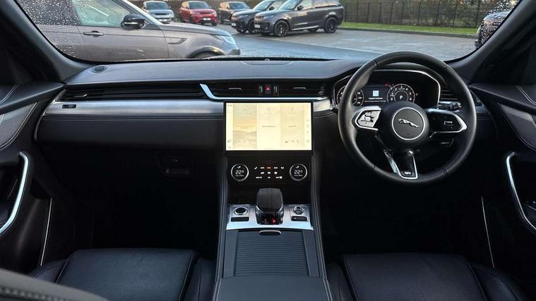 11.4" touchscreen, Android Auto, Apple car play, Bluetooth connectivity, Driver alert system, Driver condition monitor, eCall emergency call system, Eco driving style assistant, Electric power assisted steering, InControl remote, Jaguar Toggle shift selector, Lane departure warning system, Lane keep assist, Outside temperature gauge, Personalisation profile management, Pivi pro connected navigation system with app interface and media storage, Pro services and wifi hotspot, Push button starter, Service interval indicator, Speed proportional steering, Start up sequence with movement in dials and lighting, Traffic sign recognition with adaptive speed limiter, Trip computer, Voice control system, 7 kW onboard charger, 8 speed automatic transmission, AC/DC charging, Adaptive dynamics, All terrain progress control, All Wheel Drive (AWD), Configurable dynamics, Home charging cable, Open differential with torque vectoring by braking, Public charging cable, AM/FM radio, Bluetooth streaming, DAB Radio (Digital Audio Broadcasting), Dynamic volume control, InControl apps, InControl protect, iPod integration, 3 flash lane change indicators, Animated directional indicators, Approach Illumination, Auto dimming rear view mirror, Automatic headlights, Electric heated/power fold memory door mirrors with approach lights and auto dimming driver side, Electric windows with one touch open/close and anti trap, F-Pace and R Dynamic badge, Green tinted glass, Heated front windscreen + heated washer jets, Heated rear window with timer, Jaguar script and leaper, LED High level third brake light, LED tail lights, Metal load space scuff plates, Non acoustic front windscreen, P400e AWD badge, R Dynamic badge on side door, Rain sensor windscreen wipers, Rear fog lights, Rear metal tread plates, Rear side wing doors, Rear wiper, Trailer stability assist, Variable front intermittent wipers, 12V power point front, 3 rear headrests, 3 seat bench in 2nd row, Air distribution speed, Centre armrest console, Centre console with side storage, Deletion loadspace storage rails, Door sill tread plates, Fold flat front seats, Front centre armrest with storage compartment, Front door storage space, Glovebox finisher with jaguar script, Heated steering wheel, Hooks in loadspace, Illuminated glovebox, Interior front door handles with separate locking switches, ISOFIX on outer rear seats, Jaguar sense, Leather steering wheel, Luggage tie downs in loadspace, Mist sensing, Multifunction steering wheel, Overhead lighting console, Overhead stowage for sunglasses, Passive front head restraints, Premium carpet mats, Rear air vents, Rear armrest with twin cupholders, Rear centre headrest, Rear door storage space, Reversible boot floor, Satin chrome gearshift paddles, Shopping bag hook, Single front passenger seat, Sunvisors with illuminated vanity mirrors, Twin front cupholders with cover, Online Pack with data plan - F-Pace, 380mm front brakes and 325mm rear brakes, 3x3 point rear seatbelts, ABS, All surface progress control (ASPC), Brake pad warning light, DSC - Dynamic Stability Control, Electric parking brake (EPB), Emergency brake assist, Front airbags with passenger seat occupant detector, Front and rear seatbelt reminder, Front side airbags, Full length side window curtain airbag, Hill launch assist, Power operated child locks, Traction control, Tyre pressure monitoring system, Immobiliser, Keyless start, Locking wheel nuts, Perimeter alarm, Remote central locking, Valet mode,