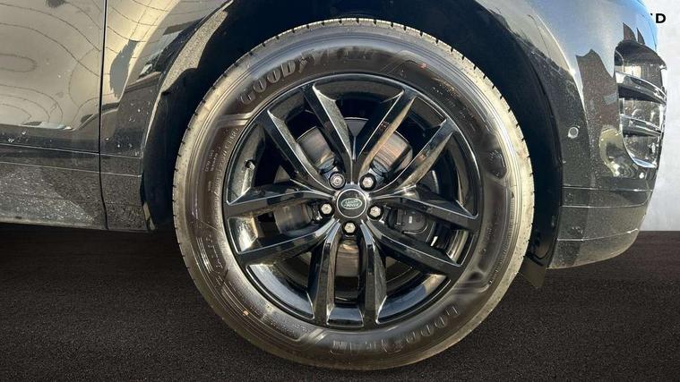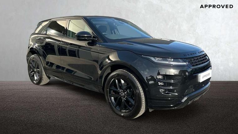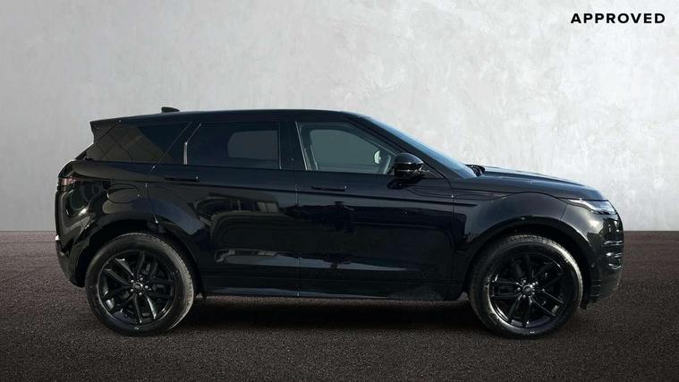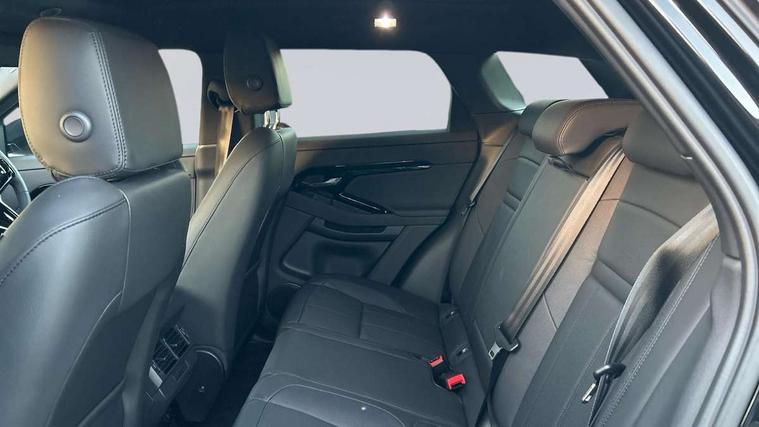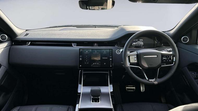 11.4" touch screen, 3D 360 degree surround camera with wade sensing, Adaptive cruise control, Android Auto, Apple car play, Blind spot assist, Bluetooth connectivity, Brake pad wear indicator warning light, Driver condition monitor, eCall emergency system, Eco mode, Electronic power assisted steering (EPAS), Front and rear parking aid, InControl remote, Interactive driver display, Land Rover InControl apps, Lane keep assist, Pivi pro connected includes diamond pivi variant, smart settings, connected navigation pro, nuance speech licence, Powered tailgate/boot lid, Rear collision monitor, Rear traffic monitor, Tailgate, Traffic sign recognition with adaptive speed limiter, Voice control system, Wireless device charging, All terrain progress control, Electric rear axle drive, Home charging cable, Large fuel tank, Passive suspension, Public charging cable, Terrain Response 2, Digital Audio Broadcast radio-DAB, Meridian sound system with 400W subwoofer and 11 speakers, Steering wheel mounted controls, Acoustic laminated windscreen, Auto dimming interior rear view mirror, Auto headlights, Auto high beam assist, Automatic headlight levelling, Black contrast roof, Electric windows with one touch open/close and anti trap, Fixed panoramic sunroof with powered sunblind, Flush deployable exterior door handles, Front and rear recovery eyes, Heated rear window with timer, Heated washer jets, Heated windscreen, LED headlights with signature DRL and LED tail Lights, Metallic paint, Power fold, auto-dimming, heated door mirrors with approach lights and auto dimming driver side, Privacy glass, Rain sensing windscreen wipers, Rear animated directional indicators, Rear fog lights, Rear side wing doors, Rear wiper, Tailgate spoiler, Third brake light, Winter wiper park position, 12 way driver memory and 10 way passenger electric front seats with 2 way manual headrest + 4 way lumbar support, 40:20:40 split folding rear seats with centre headrest and armrest, Bright metal pedals, Cabin lighting, Carpet mats, Chrome tread plates with range rover branding Includes stainless steel loadspace scuff plate with etched graphic, Customer configurable single point entry, Front and rear cupholders, Grained Leather upholstery, Heated front seats, Heated steering wheel, Isofix system on outer rear seats, Manually adjustable steering column, Overhead lighting console, Overhead stowage for sunglasses, Passive front head restraints, Rear air vents, Rear head restraints, Satin chrome gearshift paddles, Single passenger seat, Standard steering wheel with Moonlight Bezel, Sunvisors with illuminated vanity mirrors, Twin sliding front centre armrest, Two zone climate control, Black exterior styling pack - Evoque, Power socket pack 2 - Evoque, 3 rear 3 point seatbelts, Anti-lock braking system (ABS), Black brake calipers, Brake hold function, Customer configurable autolock, DSC - Dynamic Stability Control, Electronic brake force distribution, Electronic parking brake, Electronic traction control, Emergency braking, Front and rear seatbelt reminder, Hill descent control, Hill launch assist, Low traction launch, Occupant protection assist, Passenger seat occupant detector, Power operated child locks, Roll stability control, Six airbags - Driver and passenger airbags/driver knee airbag/front side airbag and curtain airbags, Torque vectoring brake, Tyre pressure monitoring system, Alarm, Immobiliser, Intrusion sensor, Keyless entry, Locking wheel nuts, Secure tracker pro, Black brushed aluminium finisher, 19" gloss black alloy wheels - Style 5136, All season tyres, Tyre repair system,