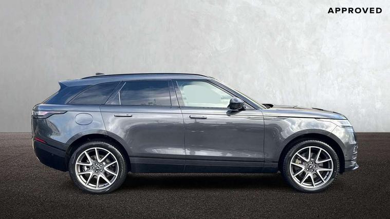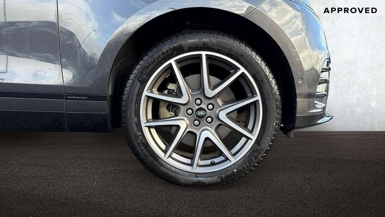 3D surround camera includes forward traffic detection and vehicle guidance, Adaptive cruise control with steering assist, Android Auto, Apple CarPlay, Blind spot assist, Bluetooth connectivity, Brake pad wear indicator warning light, Driver condition monitor, eCall emergency call system, Front and rear parking aid, InControl remote, Land Rover InControl apps, Lane keep assist, Pivi pro with connected navigation, Rear collision monitor, Rear traffic monitor, Service indicator, Speed proportional electronic power assisted steering (EPAS), Traffic sign recognition with adaptive speed limiter, Trip computer, Voice control system, Wade Sensing, Wireless device charging, 7kw on board charger, 8 speed automatic transmission, AC/DC charging, Adaptive dynamics, All terrain progress control, Coil suspension system, Home charging cable, Open differential with torque vectoring by braking, Public charging cable, Single speed transfer box, Terrain Response 2 with dynamic program, DAB radio, Steering wheel mounted controls, 3rd brake light, Acoustic laminated windscreen, Auto dimming interior rear view mirror, Autobiography badge, Automatic headlamp levelling, Automatic headlights, Body coloured bumpers, Boot protection plate, Contrast bonnet in burnished copper & rear lettering, Electric windows with one touch open/close and anti trap, Flush deployable exterior door handles, Follow me home headlights, Heated rear window with timer, Heated washer jets, Heated windscreen, Metal load space scuff plates, Pixel LED headlights with signature DRL, Power fold, auto-dimming, heated door mirrors with memory and approach lights, Rain sensor windscreen wipers, Rear animated directional indicators, Rear fog lights, Rear side wing doors, Rear wash/wipe, Tailgate/boot lid spoiler, Trailer stability assist, Velar badge, 3 seat bench in 2nd row, Ambient lighting, Bright metal pedals, Carpet mats, Driver/passenger sunvisors with illuminated vanity mirrors, Ebony suedecloth headlining, Electrically adjustable steering column, Full extended leather upgrade, Heated steering wheel, Isofix system on outer rear seats, Loadspace cover, Overhead lighting console, Overhead stowage for sunglasses, Passive front headrests, Rear air vents, Rear centre headrest, Single front passenger seat, Twin front cupholders, Twin sliding front centre armrest, Online pack with data plan - Velar, Power socket pack 2 - Velar, 380mm front brakes and 325mm rear brakes, 3x3 point rear seatbelts, Anti-lock braking system (ABS), Cornering brake control, Curtain airbags, Customer configurable autolock, Door side intrusion beams, Driver airbag, DSC - Dynamic Stability Control, Electronic brake force distribution, Electronic parking brake, Electronic traction control, Emergency braking, Front and rear seatbelt reminder, Hill descent control, Hill launch assist, Low traction launch, Passenger airbag, Power operated child locks, Rear airbags, Roll stability control, Side airbags, Tyre pressure monitoring system (TPMS), Global lock and unlock switch on driver door, Immobiliser, Intrusion sensor, Keyless entry, Lock only switch on front passenger door, Locking wheel nuts, Perimetric alarm, Remote central locking, All season tyres,