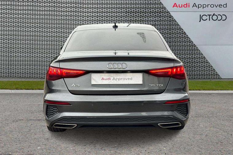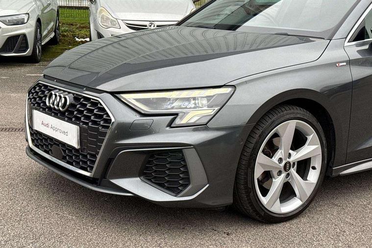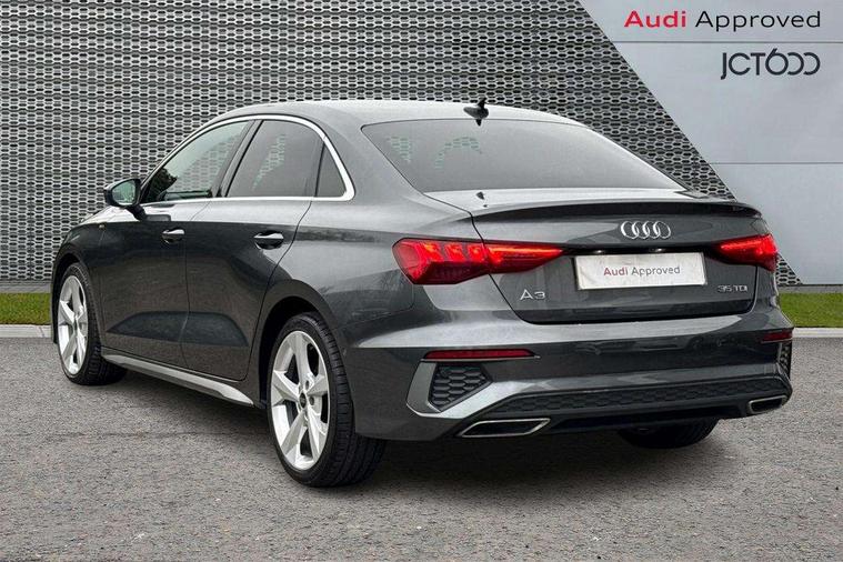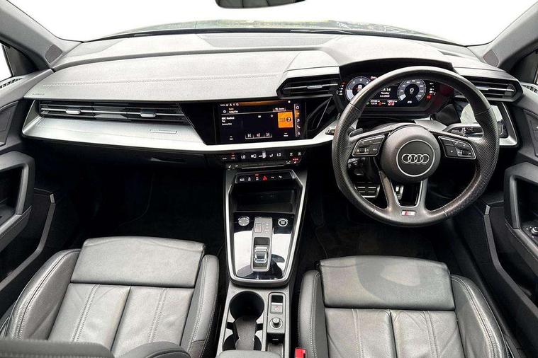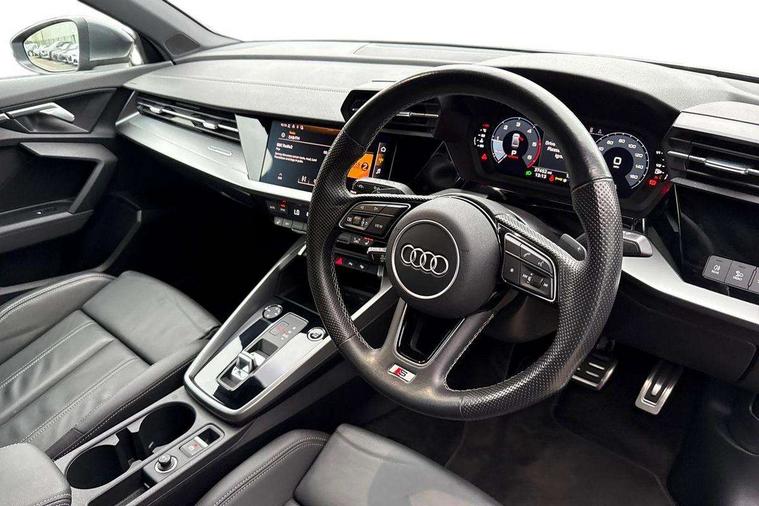 Audi connect emergency call and service, Audi drive select (Auto, Comfort, Dynamic, Efficiency and Individual), Audi smartphone interface, Audi Virtual Cockpit - 10.25" digital and colour instrument cluster, Automatic start/stop system with recuperation, Bluetooth interface, Collision avoidance assistant, Electromechanical power speed sensitive steering, Lane departure warning system, MMI Navigation Plus with high resolution 10.1" colour touch screen display, Service indicator, Voice control system with natural language interaction, Diesel particulate filter, 2x USB Type C ports (for charging and data transfer), 6 passive loudspeakers, CD player, DAB Digital radio, 3rd brake light, Acoustic glass windscreen, Aluminium window trim, Auto dimming frameless rear view mirror, Electrically adjustable/heated/folding/auto dimming door mirrors with integrated LED indications + kerb view function for passenger side, Front electric windows, Illuminated door sills with aluminium inserts at the front with S logo, LED daytime running lights, LED headlights with LED rear lights and dynamic rear indicators, Light and rain sensors, Model and engine designation badges at rear, Privacy glass - dark tinted rear window, rear door and side windows, Rear boot, Rear electric windows, Rear side wing doors, S line bumpers, S roof spoiler, 12V socket and storage compartment in front centre console, 3 seat bench in 2nd row, 40/20/40 split folding rear seat bench with cupholder, Black cloth headlining, Dual zone electronic climate control, Front and rear centre armrest in leather, Front and rear headrests, Front/rear floor mats, Height and reach adjustable steering wheel, Illuminated vanity mirror, Interior lighting - glove compartment light and right hand side, Luggage compartment floor covering, Manual boot compartment lid, Manually adjustable front sport seats, Seat side bolsters, Single front passenger seat, Stainless steel pedals and front footrest in black, Twin leather upholstery with front sports seats S embossed logo, Aluminium interior elements pack - A3, S line styling pack - A3 Saloon, 3x3 point rear seat belts, Driver and front passenger airbag with passenger airbag deactivation, Electronic Stabilisation Control (ESC) including ABS, ASR and EDL, First aid kit with warning triangle and 2 safety vests, Front side airbags with head airbags and interaction airbag, Hill hold assist, Pre-sense front with pedestrian and cyclist detection, Seatbelt monitoring, Tyre pressure loss indicator, Anti theft alarm, Anti-theft wheel bolts, Immobiliser, Manual child locks, Remote control central locking, Aluminium air vent surrounds, Aluminium trim elements, Dark spectrum aluminium inlays, accent surfaces in the dashboard and centre console in platinum grey silk effect paint finish,