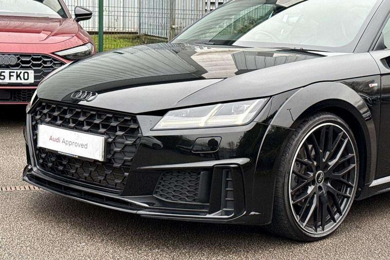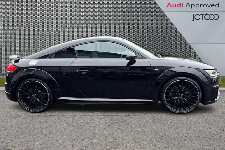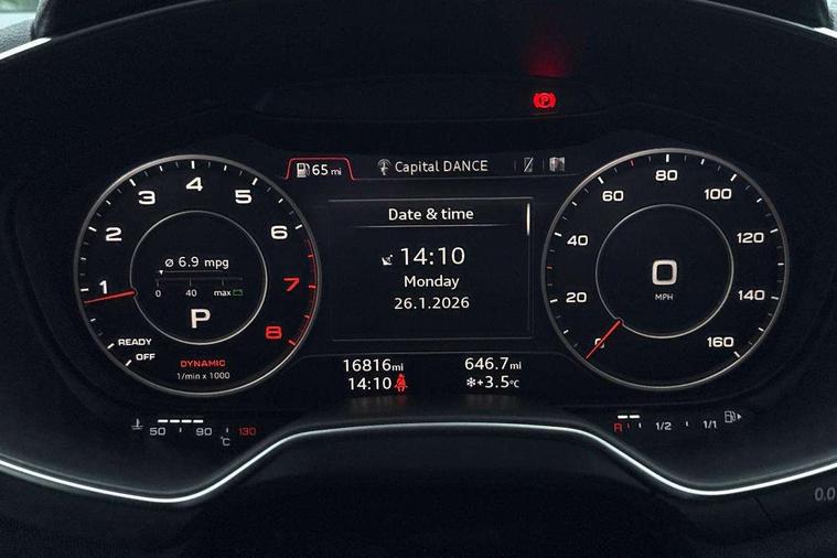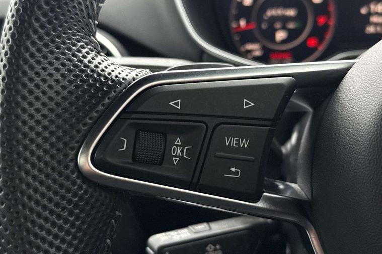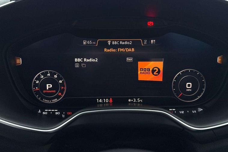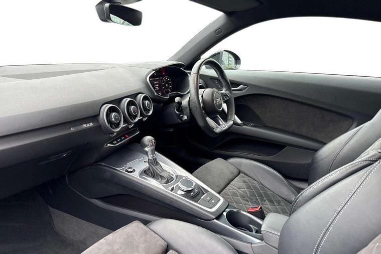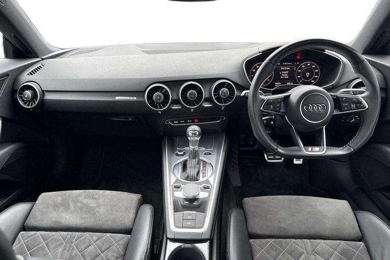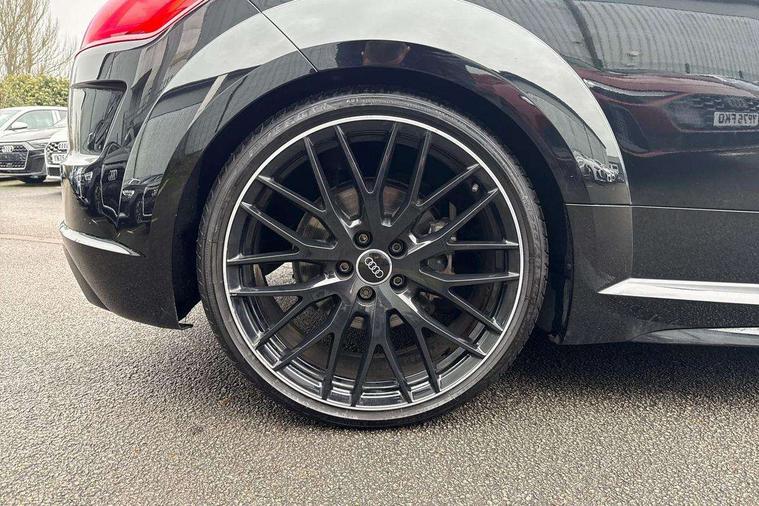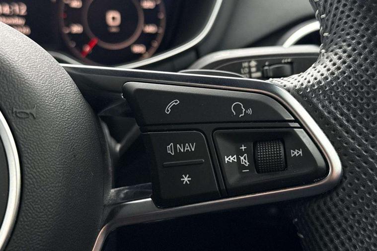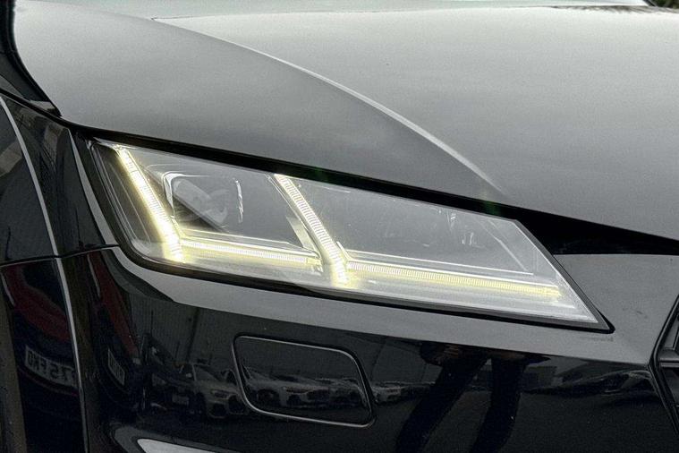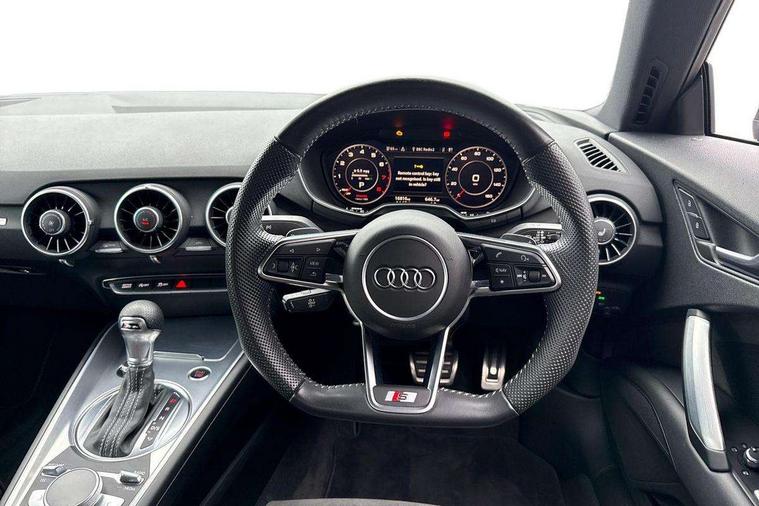 Audi drive select with 4 Pre configured modes, Audi smartphone interface, Audi virtual cockpit - 12.3" high-resolution LCD display with fully customisable instrument cluster, Cruise control + speed limiter, Emergency call service, MMI touch panel, Mobile phone preparation with bluetooth interface, Progressive power assisted steering, Service interval indicator, Start/Stop system with energy recuperation, TP memo, Sports suspension, AM/FM radio, Bluetooth audio streaming, DAB Digital radio, MMI Radio with CD player and SD/XC card slot, Auto dimming rear view mirror, Auto headlight range control, Black chrome tailpipe, Dark privacy glass from B-pillar backwards, Electric folding door mirrors, Electric front windows, Electrically adjustable and heated door mirrors with integrated LED side indicators, Front fog lights, Green tinted heat insulating glass, LED 3rd brake light, LED daytime running lights, LED headlights with LED rear lights + dynamic rear indicators, Light and rain sensors, Rear boot, Sunband for windscreen, 12V socket, 2 rear seats, 3 spoke flat bottomed high multi-function leather sport steering wheel with gearshift paddles, 4 way electric lumbar support for driver and front passenger, Black headlining, Contrasting silver stitching in steering wheel, Door sill trims, Extended aluminium look with stainless steel pedals, Front centre armrest, Front passenger seat, Front super sports seats, Heated front seats, Height adjustable driver's seat, Height adjustable front head restraints, Height/reach adjust steering wheel, ISOFIX child seat mounting for front passenger seat with airbag deactivation, Manual adjustment of seat height, fore/aft position, seat angle, seat depth and backrest angle, Perforated leather gearknob in black, Rear head restraints, Rear top tether child seat ISOFIX attachment, Split folding rear seat, Tool kit, Black styling pack - TT, Non smoking pack - TT/TT RS, 3 point front seat belts, ABS, ASR traction control, Curtain airbags, Driver and front passenger airbag with front passenger airbag deactivation, EDL traction control, Electromechanical parking brake, ESP, First aid kit, Front side airbags, Head airbags, Hill hold assist, Seatbelt warning, Tyre pressure loss indicator, Warning triangle, Anti theft alarm, Anti theft wheel bolts, Immobiliser, Keyless Go, Remote central locking, Matt brushed aluminium inlays, Tyre repair kit,
