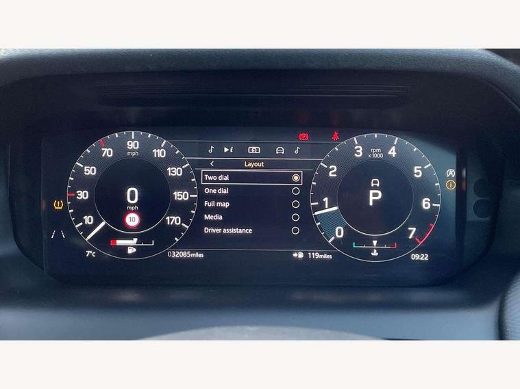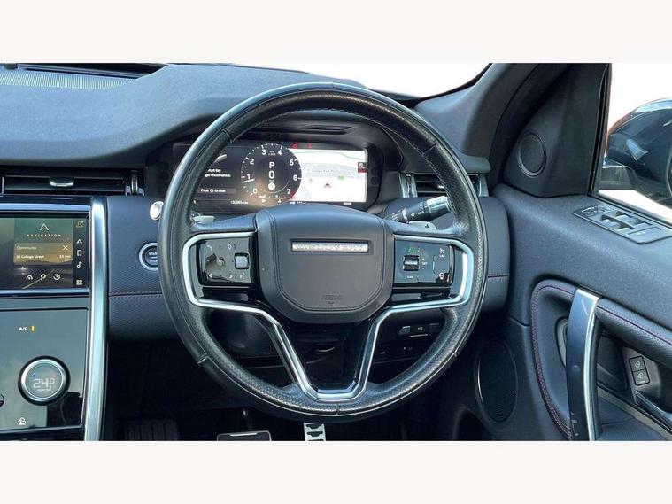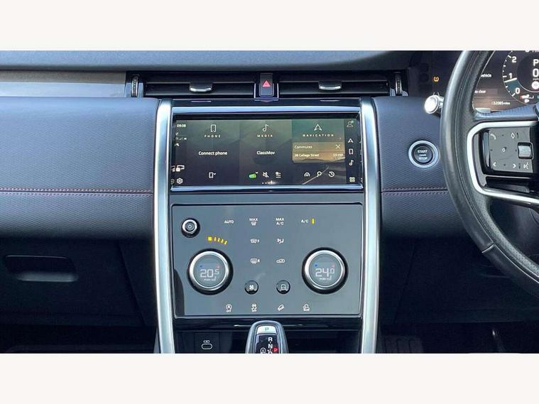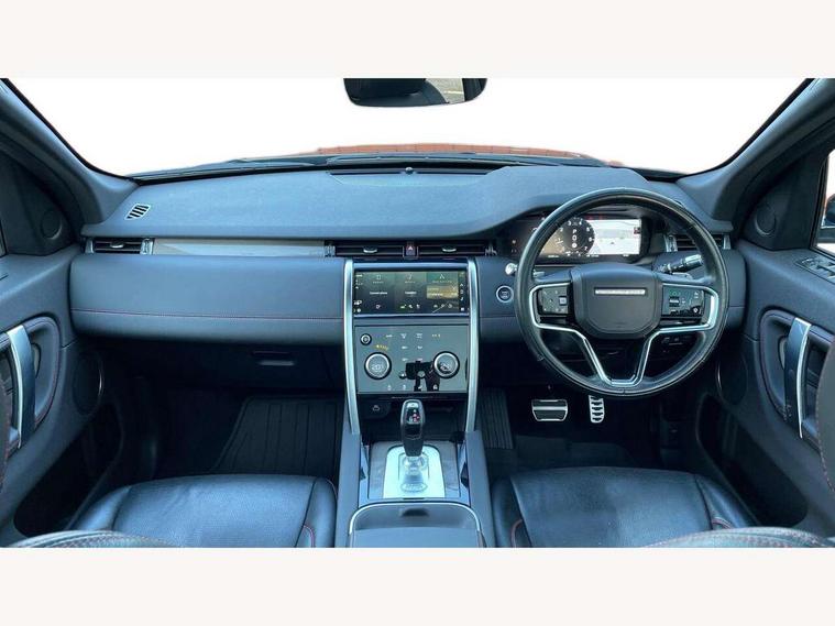 10" touch screen, 3D Surround Camera with 360 View, 180 Rear View, Front Traffic Detection, Forward Vehicle Guidance, Tow Hitch Assist and clear sight Ground View, Android Auto, Apple CarPlay, Driver condition monitor, Front and rear parking aid, InControl remote premium, Interactive driver display, Lane keep assist, PAS, Pivi Pro connected navigation system with upgraded Infotainment, Powered tailgate/boot lid, Rear view camera, Service interval indicator, Traffic sign recognition with adaptive speed limiter, Trip computer, Wade Sensing, All terrain progress control, Coil suspension system, Configurable dynamics, Terrain Response 2, Bluetooth connectivity including audio streaming, Digital Audio Broadcast radio-DAB, Steering wheel mounted audio controls, Automatic headlight levelling, Automatic headlights, Black contrast roof, Electric front/rear windows, Fixed panoramic sunroof with powered sunblind, Power fold, auto-dimming, heated door mirrors with approach lights, Rain sensing windscreen wipers, Rear fog lights, Rear side wing doors, Rear wiper, Bright metal pedals, Centre console with armrest, Front passenger isofix child seat attachment, Rear headrests, Satin chrome gearshift paddles, Sunvisors with illuminated vanity mirrors, Third row dual adjustable individual seats, Tilt/reach adjustable steering wheel, Black exterior pack - Discovery sport, Online pack - Discovery sport, 3 point seatbelts on all seats, ABS, Brake hold function, Collision mitigation braking system, Cornering brake control (CBC), Driver/Front Passenger airbags, Drivers knee airbag, Electronic brake force distribution, Electronic parking brake, Emergency brake assist, ESP + traction control, Hill descent control, Hill launch assist, Pedestrian airbag system, Rear seat ISOFIX, Red brake calipers, Side and curtain airbags for front and 2nd row seats, Trailer stability control, Tyre pressure monitoring system, Battery Back Up System (BBUS) with tilt sensor, Intrusion sensor, Keyless entry, Locking wheel nuts, Centre stack rails in noble chrome, Tyre repair kit,