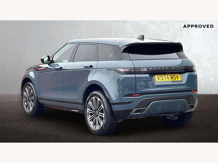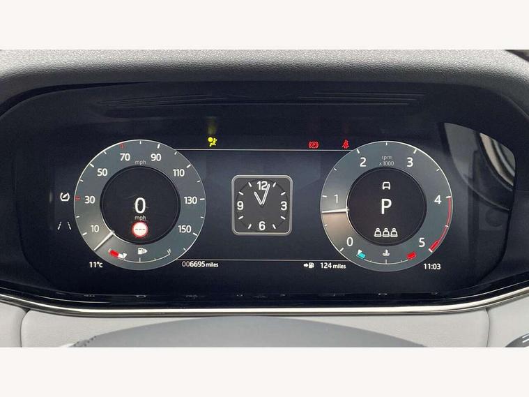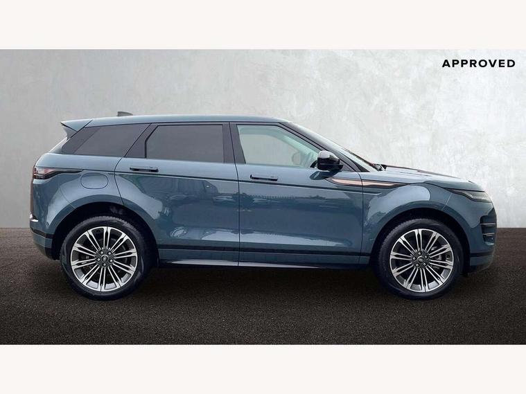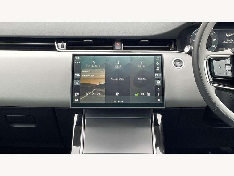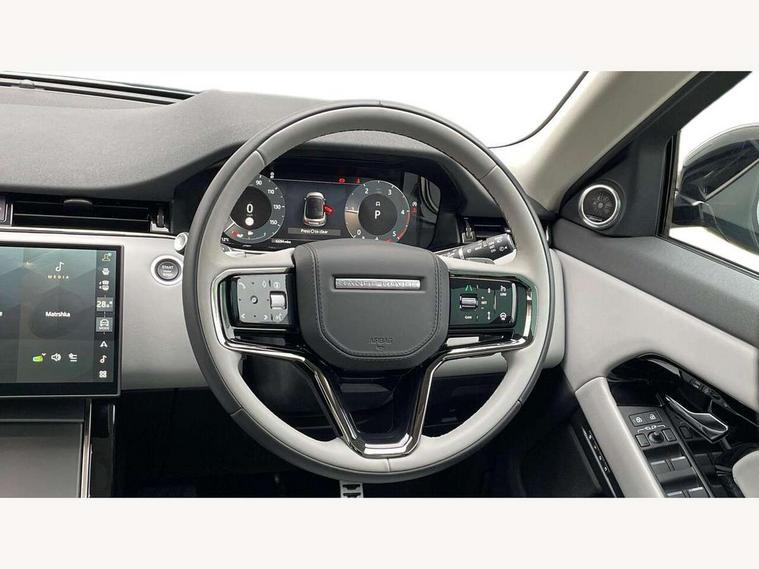 11.4" touch screen, Adaptive cruise control, Android Auto, Apple car play, Blind spot assist, Bluetooth connectivity, Brake pad wear indicator warning light, Driver condition monitor, eCall emergency system, Eco mode, Electronic power assisted steering (EPAS), Front and rear parking aid, InControl remote, Interactive driver display, Land Rover InControl apps, Lane keep assist, Pivi pro connected includes diamond pivi variant, smart settings, connected navigation pro, nuance speech licence, Powered tailgate/boot lid, Rear collision monitor, Rear traffic monitor, Traffic sign recognition with adaptive speed limiter, Voice control system, Wireless device charging, All terrain progress control, Diesel exhaust fluid (DEF) large tank, Efficient Driveline, Large fuel tank, Passive suspension, Terrain Response 2, Digital Audio Broadcast radio-DAB, Steering wheel mounted controls, Acoustic laminated windscreen, Auto headlights, Automatic headlight levelling, Electric windows with one touch open/close and anti trap, Flush deployable exterior door handles, Front and rear recovery eyes, Heated rear window with timer, Heated washer jets, Heated windscreen, Pixel LED headlights with signature DRL and LED tail Lights, Power fold, auto-dimming, heated door mirrors with approach lights and auto dimming driver side, Rain sensing windscreen wipers, Rear animated directional indicators, Rear fog lights, Rear side wing doors, Rear wiper, Side repeater indicators in mirror, Tailgate spoiler, Third brake light, Winter wiper park position, 14 way driver memory electric front seats with 2 way manual headrests + 4 way lumbar support, bolsters, 40:20:40 split folding rear seats with centre headrest and armrest, Ambient interior lighting, Bright metal pedals, Carpet mats, Chrome tread plates with range rover branding Includes stainless steel loadspace scuff plate with etched graphic, Customer configurable single point entry, Electrically adjustable steering column with memory function and easy entry/exit, Front and rear cupholders, Heated steering wheel, Isofix system on outer rear seats, Overhead lighting console, Overhead stowage for sunglasses, Passive front head restraints, Rear air vents, Rear head restraints, Satin chrome gearshift paddles, Single passenger seat, Sunvisors with illuminated vanity mirrors, Twin sliding front centre armrest, Online pack with data plan - Evoque, Power socket pack 2 - Evoque, 3 rear 3 point seatbelts, Anti-lock braking system (ABS), Brake hold function, Customer configurable autolock, DSC - Dynamic Stability Control, Electronic brake force distribution, Electronic parking brake, Electronic traction control, Emergency braking, Front and rear seatbelt reminder, Hill descent control, Hill launch assist, Low traction launch, Occupant protection assist, Passenger seat occupant detector, Power operated child locks, Roll stability control, Six airbags - Driver and passenger airbags/driver knee airbag/front side airbag and curtain airbags, Torque vectoring brake, Tyre pressure monitoring system, Alarm, Immobiliser, Intrusion sensor, Keyless entry, Locking wheel nuts,