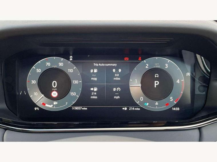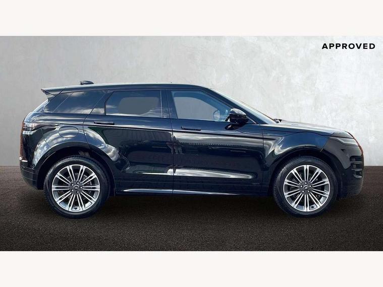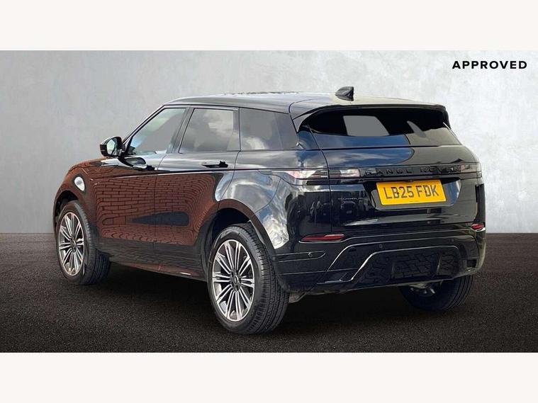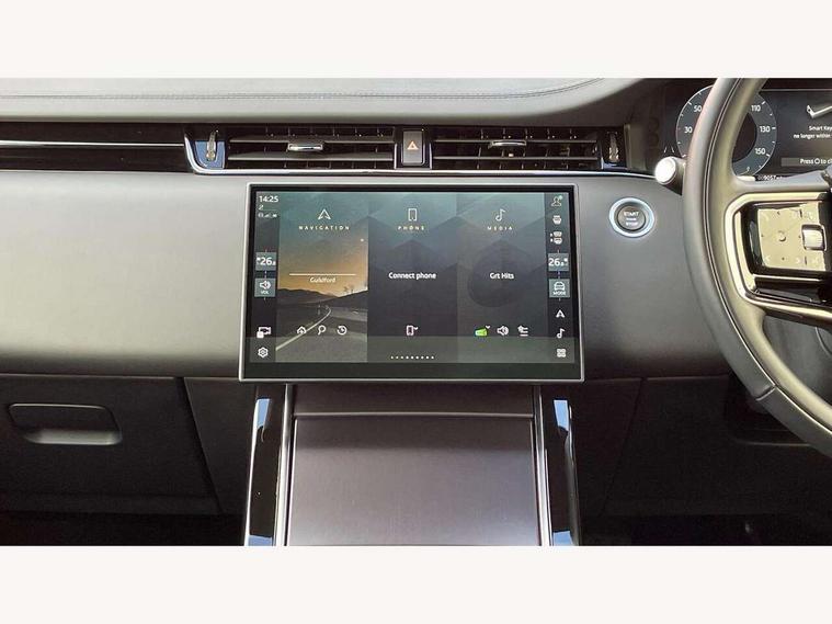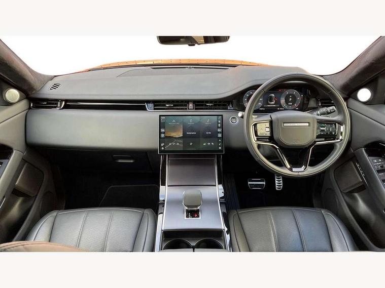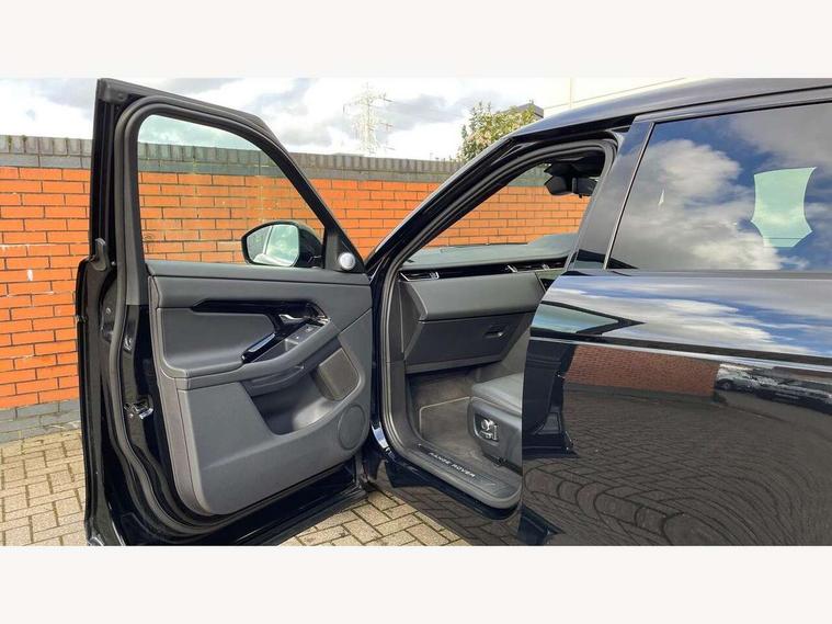 11.4" touch screen, 3D 360 degree surround camera with wade sensing, Adaptive cruise control, Android Auto, Apple car play, Blind spot assist, Bluetooth connectivity, Brake pad wear indicator warning light, Driver condition monitor, eCall emergency system, Eco mode, Electronic power assisted steering (EPAS), Front and rear parking aid, InControl remote, Interactive driver display, Land Rover InControl apps, Lane keep assist, Pivi pro connected includes diamond pivi variant, smart settings, connected navigation pro, nuance speech licence, Powered tailgate/boot lid, Rear collision monitor, Rear traffic monitor, Tailgate, Traffic sign recognition with adaptive speed limiter, Voice control system, Wireless device charging, All terrain progress control, Diesel exhaust fluid (DEF) large tank, Efficient Driveline, Large fuel tank, Terrain Response 2, Digital Audio Broadcast radio-DAB, Meridian surround sound system with 650W subwoofer and 14 speakers, Steering wheel mounted controls, Acoustic laminated windscreen, Auto headlights, Automatic headlight levelling, ClearSight interior rear view mirror, Electric windows with one touch open/close and anti trap, Flush deployable exterior door handles, Front and rear recovery eyes, Heated rear window with timer, Heated washer jets, Heated windscreen, Pixel LED headlights with signature DRL and LED tail Lights, Power fold, auto-dimming, heated door mirrors with approach lights and auto dimming driver side, Rain sensing windscreen wipers, Rear animated directional indicators, Rear fog lights, Rear side wing doors, Rear wiper, Side repeater indicators in mirror, Sliding panoramic roof with powered sunblind, Tailgate spoiler, Third brake light, Winter wiper park position, 14 way driver memory electric front seats with 2 way manual headrests + 4 way lumbar support, bolsters, 40:20:40 split folding rear seats with centre headrest and armrest, Ambient interior lighting, Bright metal pedals, Carpet mats, Customer configurable single point entry, Electrically adjustable steering column with memory function and easy entry/exit, Front and rear cupholders, Heated steering wheel, Isofix system on outer rear seats, Overhead lighting console, Overhead stowage for sunglasses, Passive front head restraints, Rear air vents, Rear head restraints, Satin chrome gearshift paddles, Single passenger seat, Sunvisors with illuminated vanity mirrors, Twin sliding front centre armrest, Power socket pack 2 - Evoque, 3 rear 3 point seatbelts, Anti-lock braking system (ABS), Brake hold function, Customer configurable autolock, DSC - Dynamic Stability Control, Electronic brake force distribution, Electronic parking brake, Electronic traction control, Emergency braking, Front and rear seatbelt reminder, Hill descent control, Hill launch assist, Low traction launch, Occupant protection assist, Passenger seat occupant detector, Power operated child locks, Roll stability control, Six airbags - Driver and passenger airbags/driver knee airbag/front side airbag and curtain airbags, Torque vectoring brake, Tyre pressure monitoring system, Alarm, Immobiliser, Intrusion sensor, Keyless entry, Locking wheel nuts, All season tyres,