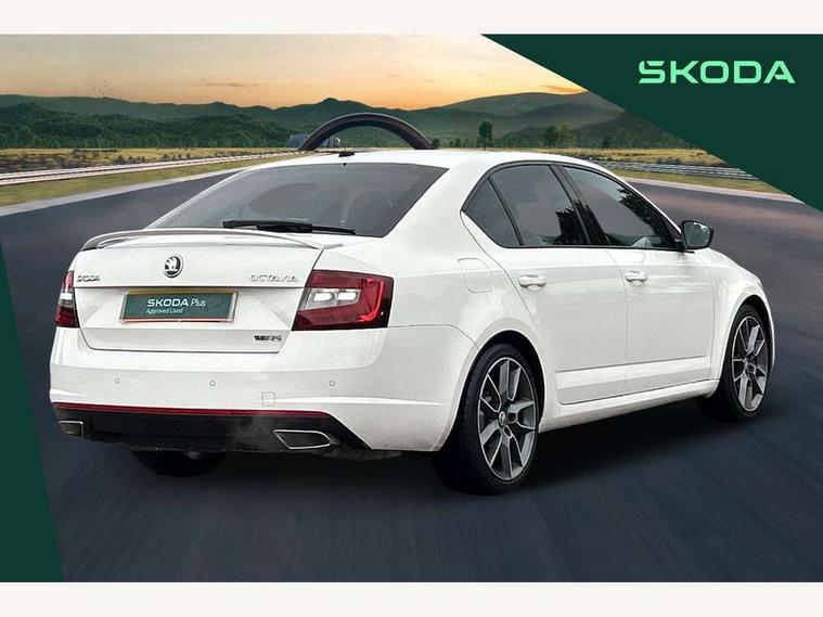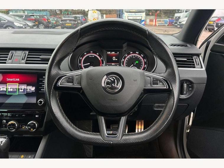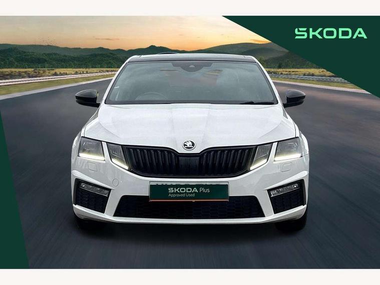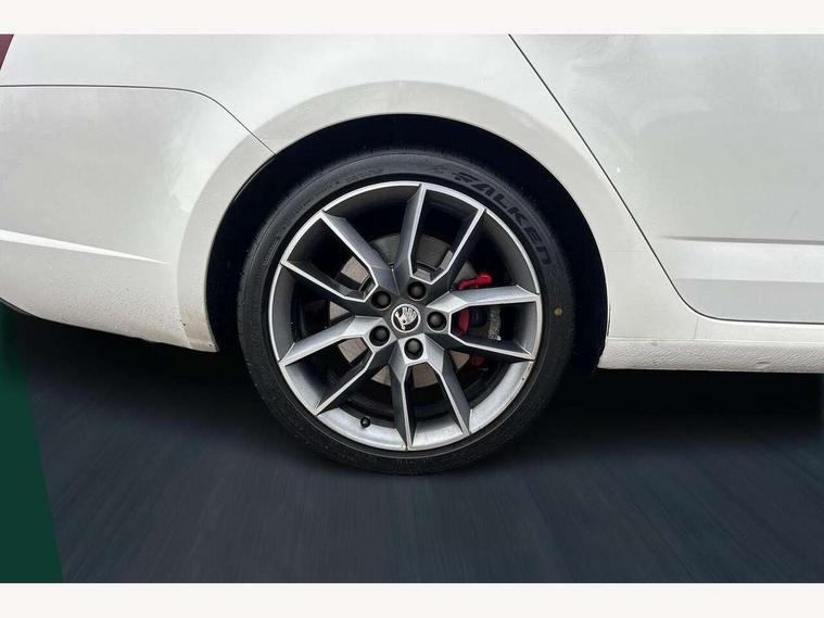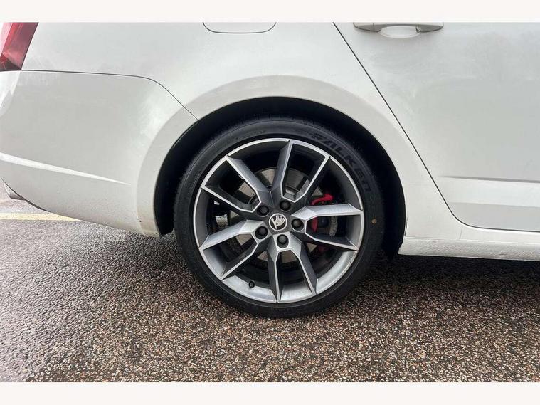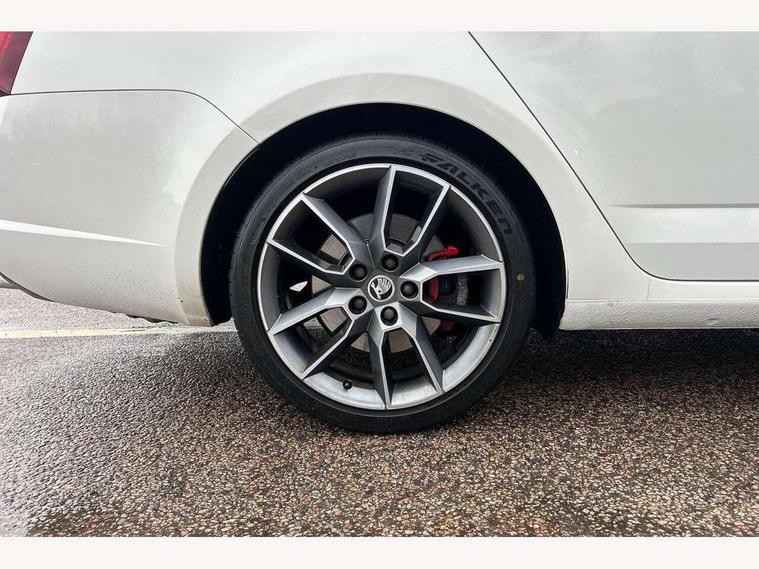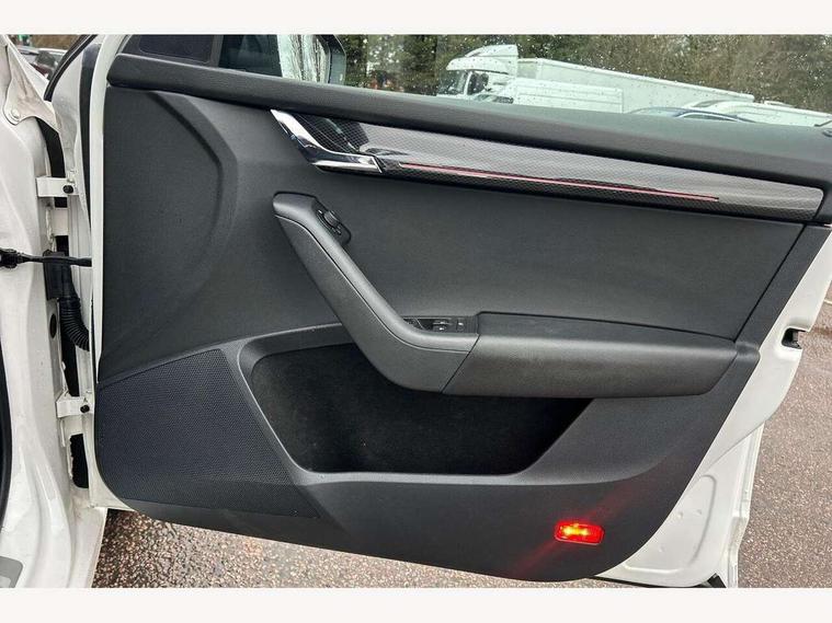 Bluetooth system, Driver alert system, Driver fatigue sensor, Electro-mechanical power steering, Outside temperature gauge, Performance mode selection, Proximity sensors, Service interval indicator, SmartLink with Apple Carplay/Android auto and MirrorLink, Stop/start system, Voice control system, Electronic limited slip differential, Sports suspension, Auxiliary input socket, Bolero Radio, DAB Digital radio, Multi device interface, Aero wiper + intermittent function, Body colour door handles, Body coloured bumpers and protective side mouldings, Door sill trim with vRS logo, Electric front and rear windows with child safety lock, Full LED Headlights with adaptive front light system and LED daytime running lights, High gloss black front grille, High level third brake light, Internally adjustable headlight beam level, LED rear lights (high), Light assistant (coming home/tunnel light) with auto-dimming rear view mirror, Privacy glass, Rain sensor, Rear wiper, Telescopic front headlight washers, Tinted glass, vRS exterior design with bumper and spoiler, 3 spoke supersport multifunction leather steering wheel with vRS logo including paddle shift, Air re-circulation and pollen filter, Aluminium pedals, Black headlining, Chrome inner door handles, Driver + passenger vanity mirrors, Dual zone automatic air conditioning with humidity sensor and control, Front and rear footwell illumination, Front armrest with storage box, Front seat and rear pockets, Front sport seats, Gear shift indicator, Height adjustable driver and passenger seat with lumbar support, Height adjustable front and rear head restraints, Height/reach adjust steering wheel, Illuminated air conditioned glovebox, Illuminated luggage compartment, Interior courtesy light operated by door switches, Interior door handle lighting in front and rear, Lashing eyelets in boot, Rear armrest with 2 cupholders and load through provision, Rear seat backrest release, Safety vest holder under passenger seat, Split folding rear seat backrests, Sunglasses storage, Textile floor mats, Two isofix child seat fitting in rear, Umbrella under front passenger seat, vRS Cloth upholstery, LED Interior lighting package - Octavia, 3 rear 3 point seatbelts + pretensioners, Automatic post collision braking, Driver and passenger front and side airbags, Drivers knee airbag, Energy recovery system, ESC including ABS, EBV, MSR, ASR, EDS, HBA, DSR, ESBS, TSA, MKB, XDS and Prefill brake function, Fuel supply cut off, Head and curtain airbags, Height adjustable front seatbelts + pretensioners, Hill hold control, Passenger airbag deactivate switch, Red brake calipers, Seatbelt warning lamp, Tyre pressure monitor, Alarm, Electronic engine immobiliser, Remote central locking, Low rolling resistance tyres,