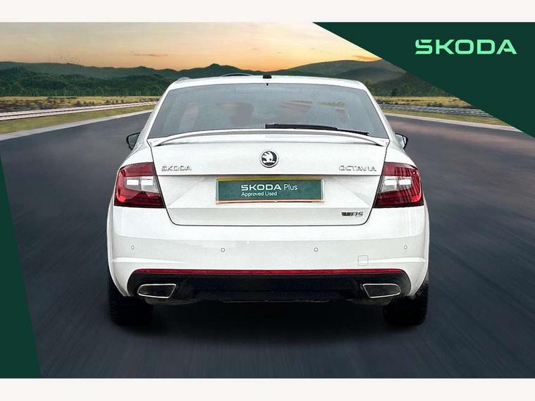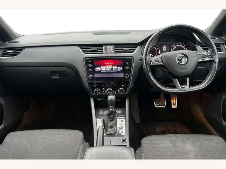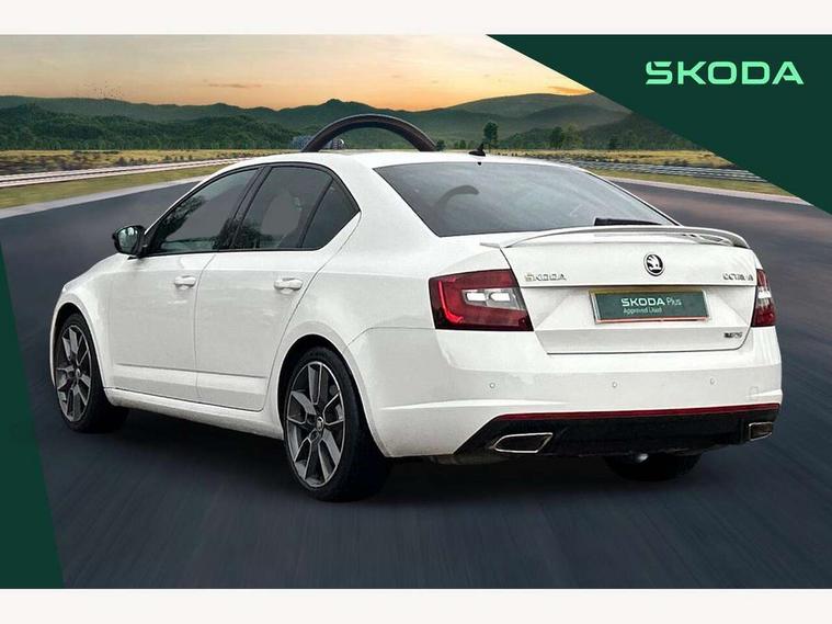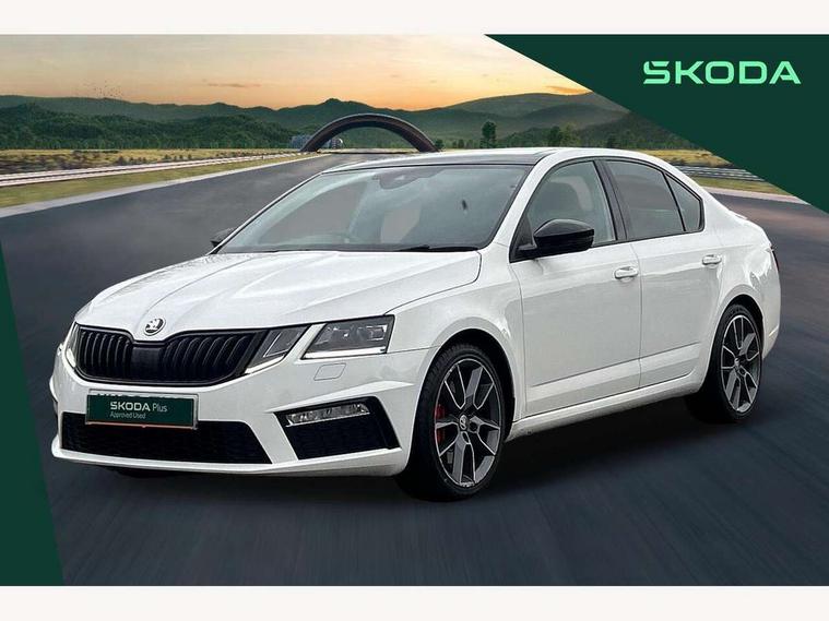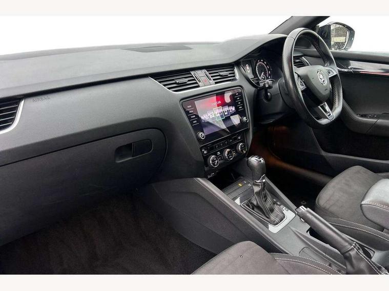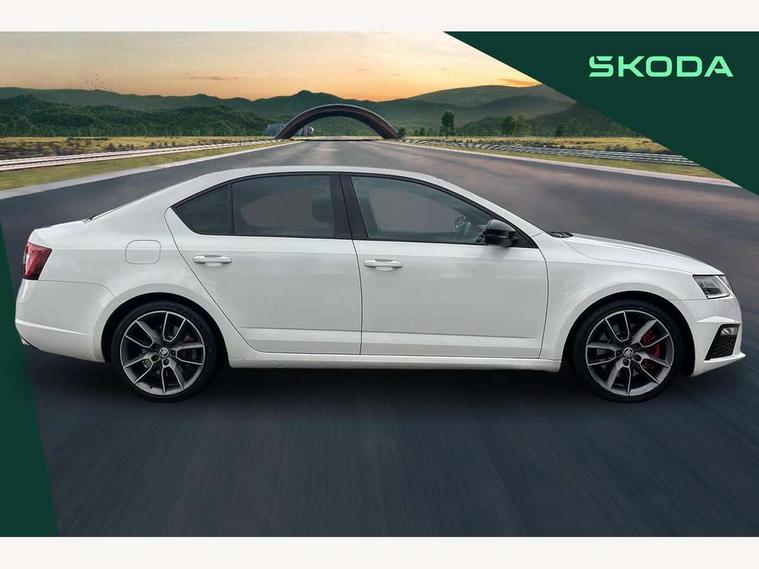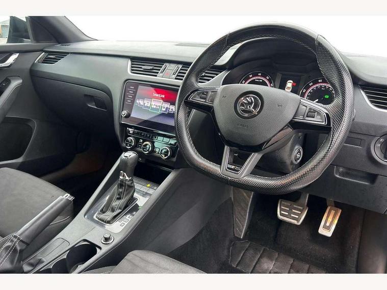 Bluetooth system, Driver alert system, Driver fatigue sensor, Electro-mechanical power steering, Outside temperature gauge, Performance mode selection, Proximity sensors, Service interval indicator, SmartLink with Apple Carplay/Android auto and MirrorLink, Stop/start system, Voice control system, Electronic limited slip differential, Sports suspension, Auxiliary input socket, Bolero Radio, DAB Digital radio, Multi device interface, Aero wiper + intermittent function, Body colour door handles, Body coloured bumpers and protective side mouldings, Door sill trim with vRS logo, Electric front and rear windows with child safety lock, Full LED Headlights with adaptive front light system and LED daytime running lights, High gloss black front grille, High level third brake light, Internally adjustable headlight beam level, LED rear lights (high), Light assistant (coming home/tunnel light) with auto-dimming rear view mirror, Privacy glass, Rain sensor, Rear wiper, Telescopic front headlight washers, Tinted glass, vRS exterior design with bumper and spoiler, 3 spoke supersport multifunction leather steering wheel with vRS logo including paddle shift, Air re-circulation and pollen filter, Aluminium pedals, Black headlining, Chrome inner door handles, Driver + passenger vanity mirrors, Dual zone automatic air conditioning with humidity sensor and control, Front and rear footwell illumination, Front armrest with storage box, Front seat and rear pockets, Front sport seats, Gear shift indicator, Height adjustable driver and passenger seat with lumbar support, Height adjustable front and rear head restraints, Height/reach adjust steering wheel, Illuminated air conditioned glovebox, Illuminated luggage compartment, Interior courtesy light operated by door switches, Interior door handle lighting in front and rear, Lashing eyelets in boot, Rear armrest with 2 cupholders and load through provision, Rear seat backrest release, Safety vest holder under passenger seat, Split folding rear seat backrests, Sunglasses storage, Textile floor mats, Two isofix child seat fitting in rear, Umbrella under front passenger seat, vRS Cloth upholstery, LED Interior lighting package - Octavia, 3 rear 3 point seatbelts + pretensioners, Automatic post collision braking, Driver and passenger front and side airbags, Drivers knee airbag, Energy recovery system, ESC including ABS, EBV, MSR, ASR, EDS, HBA, DSR, ESBS, TSA, MKB, XDS and Prefill brake function, Fuel supply cut off, Head and curtain airbags, Height adjustable front seatbelts + pretensioners, Hill hold control, Passenger airbag deactivate switch, Red brake calipers, Seatbelt warning lamp, Tyre pressure monitor, Alarm, Electronic engine immobiliser, Remote central locking, Low rolling resistance tyres,