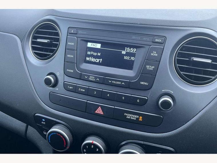 Bluetooth system, Cruise control + speed limiter, PAS, Trip computer, Vehicle Stability Control (VSC), 4 speakers, DAB Digital radio, RDS radio with MP3 player, Steering wheel mounted controls, USB/aux input socket, Black finish on B pillars, Body colour door handles, Body coloured bumpers, Body coloured door mirrors, Daytime running lights, Electric front windows, Electric rear windows, Electrically adjustable and heated door mirrors, Front intermittent wash wipers, Rear spoiler, Rear wiper, 12v power outlet - front, 60/40 split folding flat to floor rear seats, Air conditioning, Cloth upholstery, Courtesy lights, Driver + passenger vanity mirrors, Driver's seat height adjustment, Driver/passenger sunvisors with ticket holders, Front and rear bottle holders, Front door pockets, Front/rear adjustable head restraints, Height adjustable steering column, Isofix child seat preparation, Luggage compartment lighting, Rear door pockets, 3x3 point rear seatbelts, ABS/EBD, Brake assist function, Childproof rear door locks, Curtain airbags, Driver/Front Passenger airbags, Electronic stability control, Front and rear seatbelt reminder, Front seatbelt pretensioners, Front side airbags, Passenger airbag deactivate switch, Traction control, Tyre pressure monitoring system, Immobiliser, Perimeter alarm, Remote central locking, Speed sensitive auto door locking, 14" steel wheels, Space saver spare wheel,