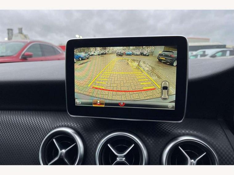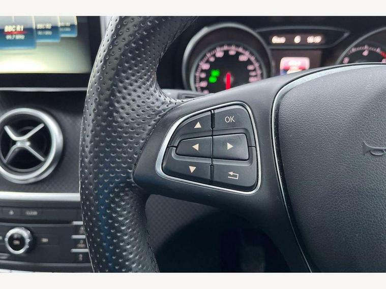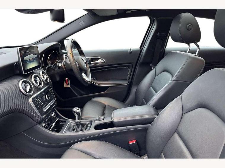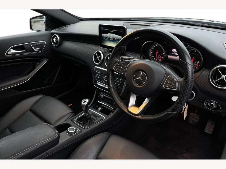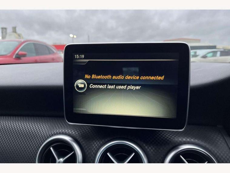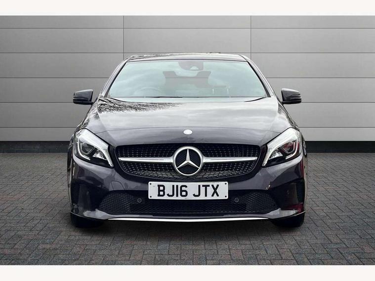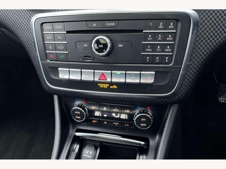 8" colour display screen, Active park assist with parktronic system, Attention assist, Bluetooth interface for hands free telephone, Bulb failure indicator, Collision prevention assist plus, DYNAMIC SELECT with a choice of driving modes (ECO, Comfort, Sport, Sport+ and Individual), External temperature gauge, Low fluid warning light, Reversing camera, Service indicator (ASSYST PLUS), Speed sensitive parameter assisted steering, Trip computer, Comfort suspension, SD card slot, USB port, Adaptive brake lights, Auto dimming driver's door mirror, Auto dimming rear view mirror, Body colour bumpers, Body colour door handles, Body colour side skirt, Body coloured door mirrors, Chrome beltline trim, Daytime running lights, Electric adjustable heated door mirrors, Electric folding door mirrors, Electric front windows, Electric rear windows, Headlamp assist, Heated rear window with timer, High beam assist, LED Headlights, Panoramic sliding sunroof, Radiator grille with 2 louvres in body colour, Rain sensor windscreen wipers, Rear wiper, Twin Trapezoidal tailpipes, 1/3 to 2/3 split folding rear seats, 12 colour Ambient lighting, 12V socket, 4 way adjustable lumbar support, Adjustable head restraints, Artico man-made leather upholstery, Auto Mercedes-Benz child seat recognition sensor, Black headlining, Dual zone automatic climate control, Electric front seats with memory function, Footwell lights, Front and rear reading lights, Front centre armrest with storage compartment, Front head restraints, Heated front seats, Height adjustable front seats, Height/reach adjustable steering column, Illuminated door sills, Illuminated glovebox, Illuminated storage compartment, Isofix rear child seat preparation, Leather gearshift, Load securing rings in luggage compartment, Luggage compartment cover, Luggage net under rear parcel shelf, Rear head restraints, Storage compartment under load area floor, Sunvisors with illuminated vanity mirrors, Twin front cupholders, Seat comfort pack - A Class, Stowage Pack - A Class, 3 rear 3 point seatbelts, ABS with Brake Assist, Active bonnet, Adaptive brake system, Child proof door locks, Crash responsive emergency lighting, Drivers knee airbag, Dual stage driver/passenger airbags, Electronic parking brake, ESP with ASR, Front and rear seatbelt reminder, Front head airbags, Front passenger seat occupancy sensor, Front side airbags, Hill start assist, Tyre pressure monitoring system, Warning triangle and first aid kit, Window airbags, Alarm system/interior protection/immobiliser, Keyless Go access/ignition system, Remote central locking, Checked pattern trim, Chrome air vent surrounds, 17" 5 twin spoke alloy wheels, Tirefit sealant with electric air pump,
