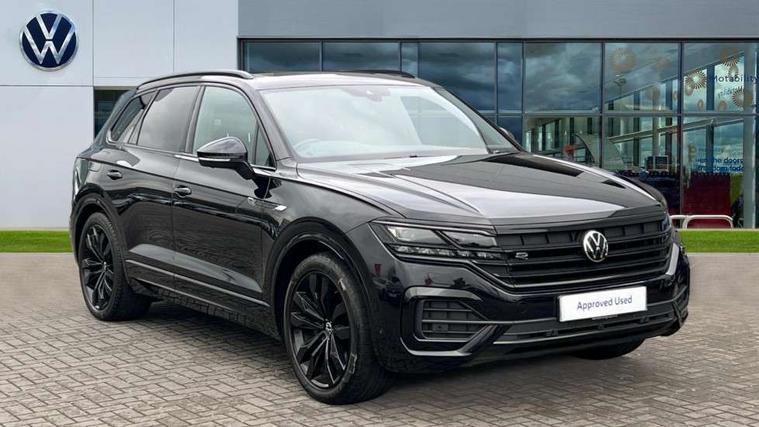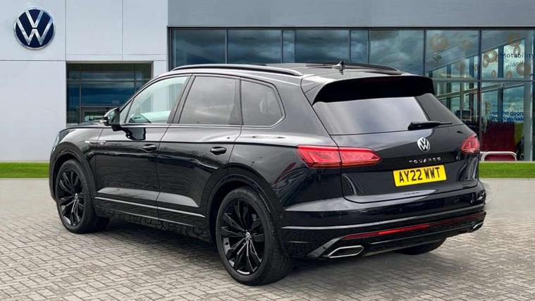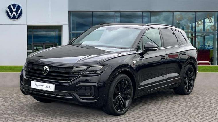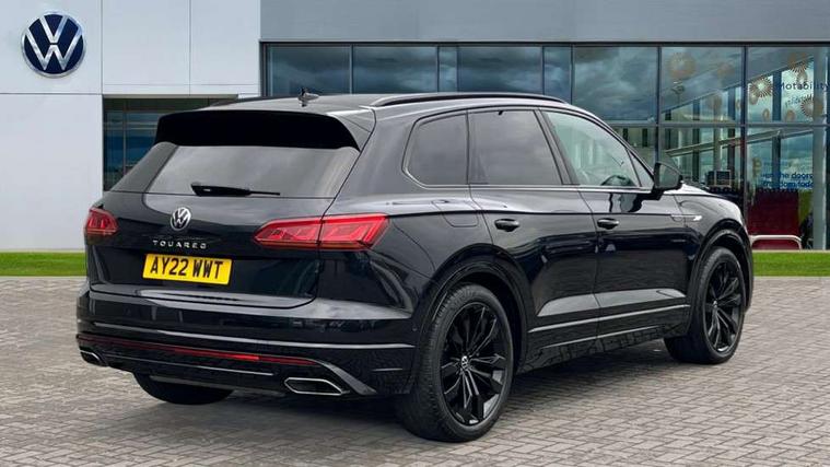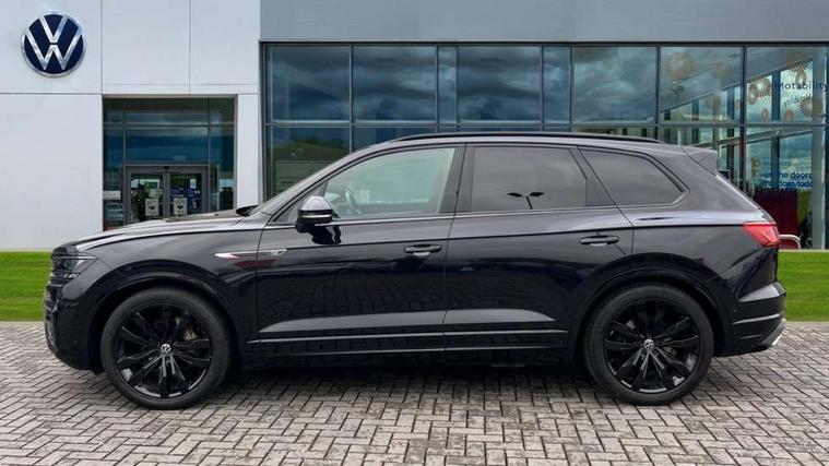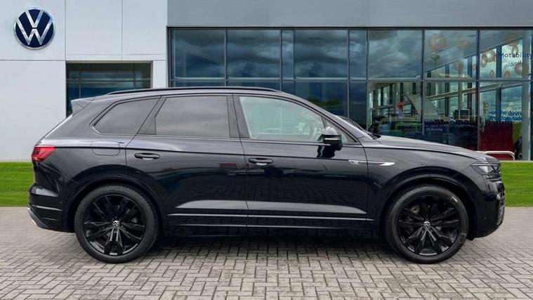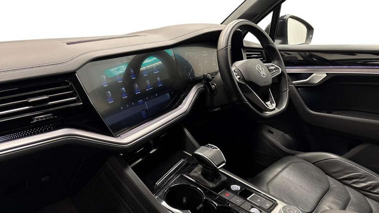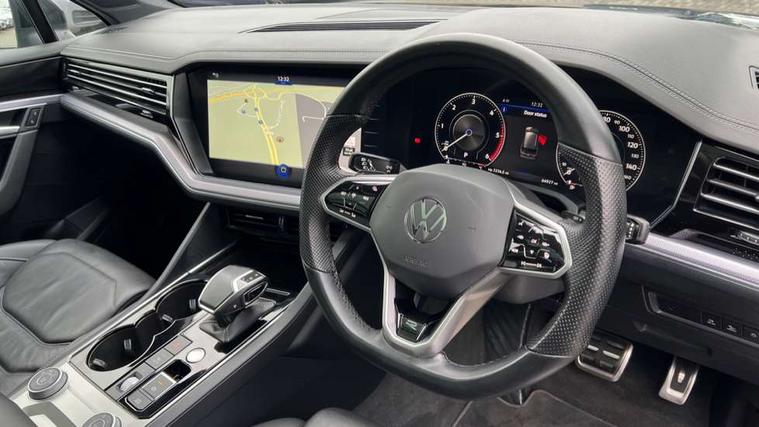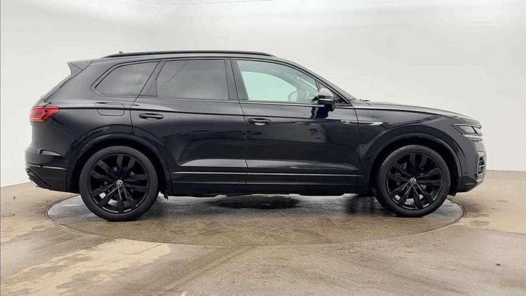 2D/3D map view, ACC - Adaptive cruise control with front assist, forward collision warning, distance monitoring, city emergency brake and speed limiter, Apple car play/Android Auto, Audible and visual fatigue detection system, Bluetooth hands free telephone connection, Car information display, Drive select with Damper control, Driver alert system, Driver profile selection, Dynamic road sign display camera controlled system with visual warning for traffic and road signs, eCall emergency system, Fully electric tailgate + keyless entry and start, Instrument cluster, MirrorLink, Multifunction camera with lane assist, Multifunction computer premium with 7" colour display, One touch indicators with repeat function, Service interval indicator, Speed sensitive power steering, Start/stop system with regenerative braking, Tailgate power latch, Think blue trainer driver tips and journey analysis, Traffic sign recognition, Voice control system, Wireless Smartphone charger, 24 litre AdBlue tank, Torsen limited slip differential, DAB Digital radio, Dynamic navigation based on TMC+, Gesture control for infotainment system, Multi device interface (MDI) with illuminated USB-C connection, Music playback - MP3, WMA and AAC files, SD card slot, Simultaneous pairing of 2 compatible mobile devices, SMS functionality - read, compose and send SMS messages using touch-screen display, Title and cover art display, Volkswagen media control, Adaptive low beam for urban and motorway use, Auto dimming rear view mirror, Automatic coming/leaving home lighting function, Automatic headlights, Black anodised roof rails, Black door mirrors, Black rear diffuser, Black side window surrounds, Black upper and lower grille louvres extending into headlights and radiator grille, Body colour door handles, Body coloured wheel arches, C signature gloss black front air intake, Chromed tailpipe on the left and right integrated in the bumper with trapezoid design, Dusk sensor, Dynamic headlight range control, Electric front tilt/slide panoramic sunroof and fixed rear sunroof, Electrically power adjustable, heated, folding, auto dimming, front passenger exterior door mirror lowering function, Front and rear electric windows, Galvanised body, Gloss black finish B pillar, Gloss black rear diffuser, Headlight washers, Heat insulating darkened glass in side and rear windows, Heated windscreen washer jets, IQ.Light-LED matrix headlight, daytime running light with dynamic cornering light and indicator, LED rear fog light, LED rear number plate lights, Plastic scuff plates in door apertures, Poor weather light, Puddle lights, Rain sensor, Rear side wing doors, Rear wiper, 12V socket in front and rear centre console and boot, 2 Coat hooks on B pillar, 3 rear head restraints, 3 spoke sport heated leather multi-function sports steering wheel with gear shift paddles - generation 2, 4 way adjustable front head restraints, 4 way electric lumbar support for driver and front passenger, 4 zone climate control, 40:20:40 split folding slide/recline rear seat, B pillar vents, Black lower edge of door extending sills, Branded points of interest, Double sun visor for drivier and passenger with LED illuminated vanity mirrors, Electric luggage compartment cover, Folding rear centre armrest with 2 cupholders, Front + rear carpet mats, Front centre armrest with storage box, Gear shift indicator, Height/reach adjust steering wheel, Illuminated air conditioned glovebox, Isofix preparation for 2 rear child seats, Jack and tool kit, Leather trimmed gear knob with gloss black inlay/aluminum trim, Leatherette door trim, LED luggage compartment lighting, Load through provision, Luggage compartment with load lashing rings, Plastic loading edge protection, Rear seat remote release levers, Soul black headlining, Stainless steel pedals, Innovision cockpit pack - Touareg, 3 point front seatbelts with pre-tensioners, ABS, Active bonnet, Automatic post collision braking system, Curtain airbags, Driver/Front Passenger airbags, EBD + Brake Assist, EDL, Electronic parking brake with auto hold, ESC with ASR, Front seat side impact airbags, Hill descent control, Hill start assist, Passenger airbag deactivate switch, Seatbelt warning lamp and buzzer, Three 3 point rear seatbelts, Two tone horn, Volkswagen roadside assistance, Warning triangle and first aid kit, Alarm with interior monitoring in cab, backup horn and towing protection, Child security locks for front and rear doors, Electronic engine immobiliser, Remote central locking, Black decorative trims on the side windows, High gloss black centre console,