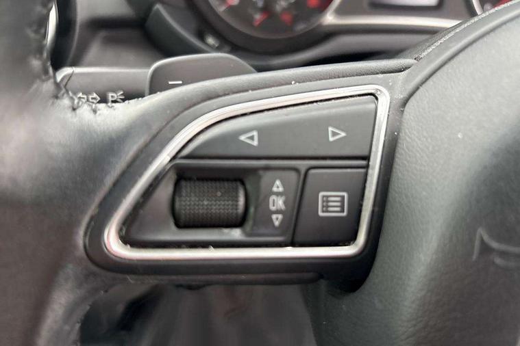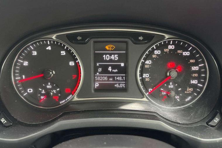 Audi drive select, Cruise control, Driver's information system, Electro-mechanical PAS, Low washer fluid indicator, Service interval indicator, Voice control system, Additional SD card reader, Audi music interface, Bluetooth audio streaming, DAB Digital radio, Adaptive brake lights, Body coloured bumpers, Body coloured door mirrors, Electric adjustable door mirrors, Electric front windows, Electric rear windows, Front fog lights, Heat insulating glass, Heated door mirrors, Heated rear windscreen, Polished stainless steel tailpipe, Rear wiper, 12V Accessory socket in centre console, 3 rear seats, 3 spoke leather multi-function sport steering wheel including paddle shift, Adjustable rear head restraints, Cupholders in centre console, Door sills trims with aluminium inlays, Front floor mats, Front head restraints, Front sports seats, Height adjustable front seats, Isofix attachments on rear seats, Jack and tool kit, Leather gear knob, Leather handbrake, Lumbar adjustment for front seats, Rake/reach adjustable steering wheel, Split folding rear seats, Titanium grey cloth headlining, 3x3 point rear seatbelts, ABS/EBD, Brake assist function, Driver and passenger side airbags, Driver/Front Passenger airbags, EDL, ESP with ASR, First aid kit, Front and rear seatbelt reminder, Front passenger airbag deactivation, Head airbags, Height adjustable front seatbelts, Tyre pressure monitor, Warning triangle, Locking wheel bolts, Remote central locking with 2 remote folding keys, Thatcham category 1 alarm + immobiliser, High gloss black air vent sleeves, Tyre repair kit,