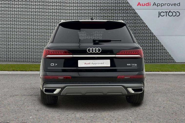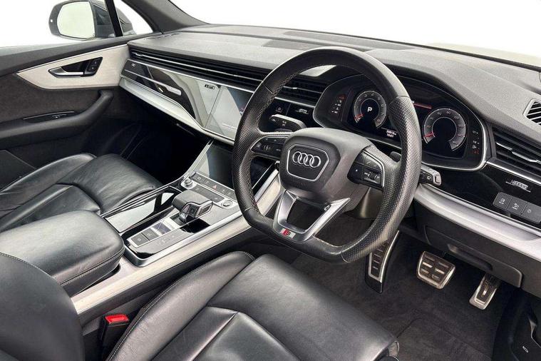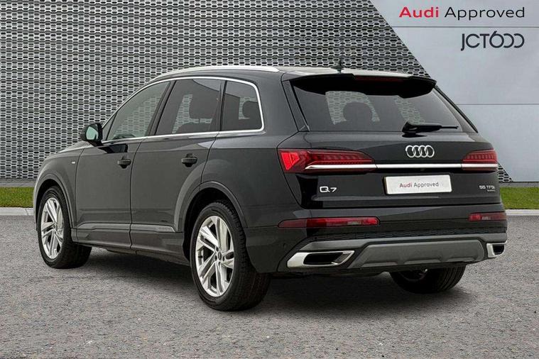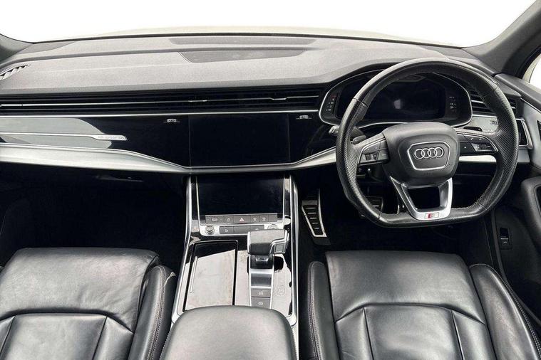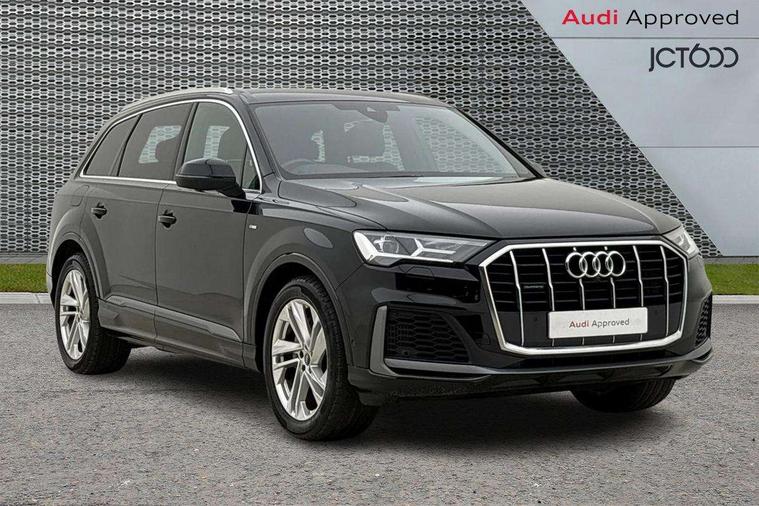 Audi connect safety and service (e-call), Audi connect with Amazon Alexa Integration, Audi drive select (Auto, Comfort, Dynamic, Efficiency, Individual, Off-road and All road), Bluetooth interface, Camera based traffic sign recognition, Electromechanical steering, MMI navigation plus with MMI touch screens includes 10.1" and 8.6" screens with haptic feedback, Natural voice recognition, Parking system plus with 360 degree display (front, rear and side sensors) - acoustic and visual park assist system, Power operated tailgate, Rear view camera, Smartphone interface includes wireless Apple carplay/Android Auto, Start/stop system, 48V Mild hybrid technology, 85 litre fuel tank, Adaptive air suspension, Quattro all wheel drive with self locking centre differential, Audi music interface - front 2 USB-C ports with charger and data functions, Audi sound system with 6 channel amplifier, 180 watt amplifying capacity and 10 loudspeakers including subwoofer, DAB digital radio module, 3rd brake light, Aluminium roof rails, Aluminium window trim, Audi matrix LED headlights with dynamic front and rear indicators, Auto dimming frameless rear view mirror, Body coloured door mirrors, Electrically adj heated/folding + automatically dimming exterior mirrors with memory + automatic kerb side function for passenger side exterior mirror, Heat insulating glass in windshield, Integrated LED indications in door mirrors, LED daytime running lights, LED rear tail lights, Privacy glass - dark tinted rear and rear side windows from B-pillar backwards, Rear side wing doors, Rear wiper, S Line badge on wings, S line bumpers in full body colour paint finish, S line roof spoiler, S line styling side ventilation grilles and side skirts, 2 seat bench in 3rd row, 2 zone automatic climate control, 3 seat bench in 2nd row, 7 seat layout with ISOFIX points for the front passenger seat and rear passenger seat, Black cloth headlining, Comfort front centre armrest, Electric adjustable front seat with 4 way lumbar support, driver memory functionality, Folding rear seats, Front head restraints, Front/rear floor mats, Heated front seats, Illuminated door sill trims with S logo, LED interior ambient lighting, Luggage compartment cover, Luggage compartment sill protection in stainless steel, Rear head restraints, Single front passenger seat, Stainless steel pedals, Sunvisors with illuminated vanity mirrors, 3 point seatbelts on all rear seats, Audi pre sense front, Child locks on rear doors, Driver and front passenger, front side and curtain airbags, Electromechanical parking brake, Electronic Stabilisation Control (ESC) including ABS, ASR and EDL, Extended pedestrian protection measures, Hill hold assist, Seatbelt monitoring, Tyre pressure loss indicator, Warning triangle and first aid kit, Anti theft alarm, Anti-theft wheel bolts and wheel loosening detection, Keyless Go, Remote central locking, Darkened matt brushed aluminium inlays, Tool kit, Tyre repair kit,
