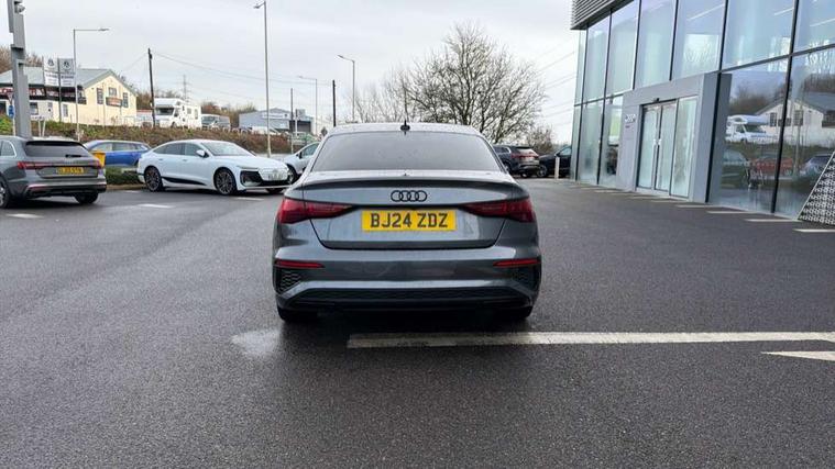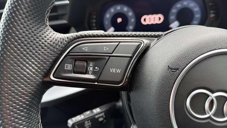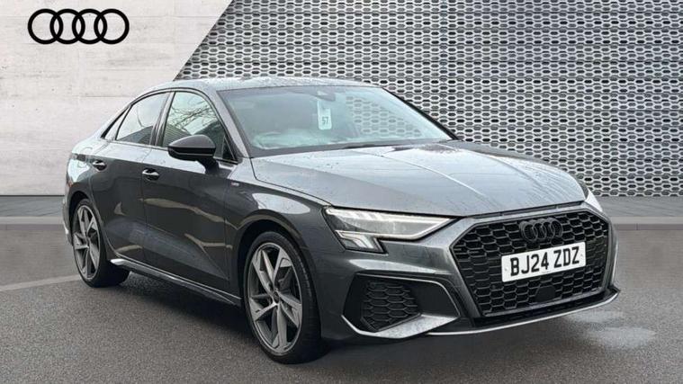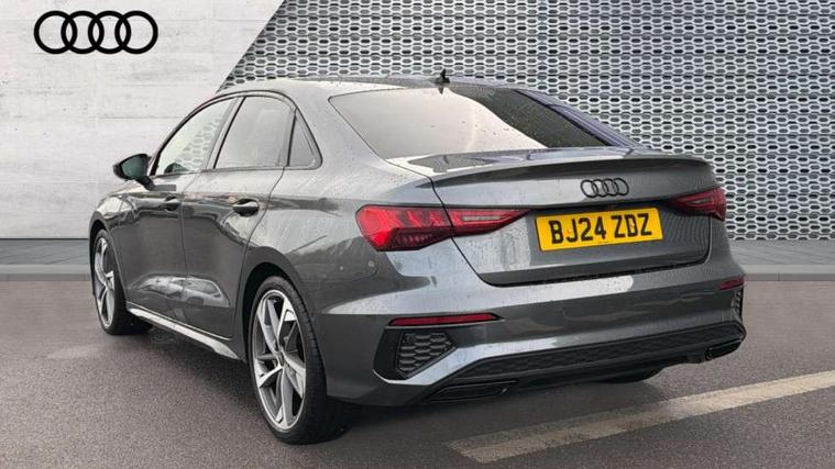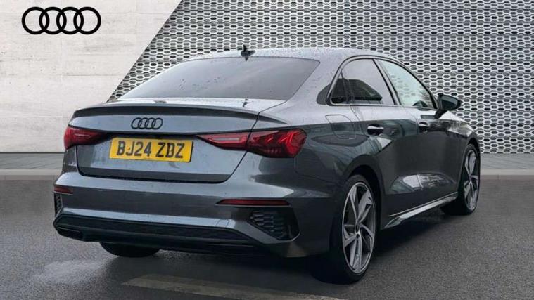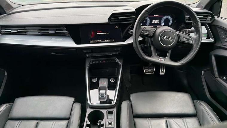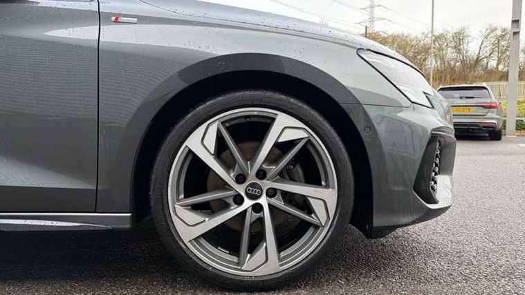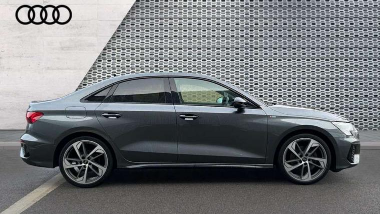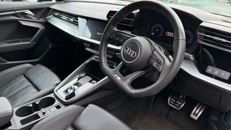 Audi drive select (Auto, Comfort, Dynamic, Efficiency and Individual), Audi smartphone interface, Audi Virtual Cockpit - 10.25" digital and colour instrument cluster, Automatic start/stop system with recuperation, Bluetooth interface, Camera based traffic sign recognition, Collision avoidance assistant, e-Call (emergency call), Electromechanical power speed sensitive steering, Lane departure warning system, MMI Navigation Plus with high resolution 10.1" colour touch screen display, Service indicator, Trip computer, Voice control system with natural language interaction, Sports suspension, 2xUSB-C connection with data and charging functions, 6 passive loudspeakers, CD player, DAB Digital radio, 3rd brake light, Acoustic glass windscreen, Audi beam uses LEDs to project the Audi logo onto the ground as you exit your A3, Auto dimming frameless rear view mirror, Electrically adjustable/heated/folding/auto dimming door mirrors with integrated LED indications + kerb view function for passenger side, Front electric windows, Illuminated door sills with aluminium inserts at the front with S logo, LED daytime running lights, LED headlights with LED rear lights and dynamic rear indicators, Light and rain sensors, Model and engine designation badges at rear, Privacy glass - dark tinted rear window, rear door and side windows, Rear boot, Rear electric windows, Rear side wing doors, S roof spoiler, 12V socket and storage compartment in front centre console, 3 seat bench in 2nd row, 3 spoke flat bottomed leather multifunction sport steering wheel with gear shift paddles, 4 way electrically adjustable lumbar support for driver and front passenger, 60/40 split folding rear seat bench, Black cloth headlining, Dual zone electronic climate control, Front and rear centre armrest in artificial leather, Front and rear headrests, Front/rear floor mats, Height and reach adjustable steering wheel, Interior lighting - glove compartment light and right hand side, Luggage compartment floor covering, Manual boot compartment lid, Single front passenger seat, Stainless steel pedals and front footrest in black, Twin leather upholstery with front sports seats S embossed logo, Aluminium interior elements pack - A3, Black styling pack - A3 Saloon/Black edition, LED interior lighting pack - A3 Saloon, 3x3 point rear seat belts, Driver and front passenger airbag with passenger airbag deactivation, Electronic Stabilisation Control (ESC) including ABS, ASR and EDL, First aid kit with warning triangle and 2 safety vests, Front side airbags with head airbags and interaction airbag, Pre-sense front with pedestrian and cyclist detection, Seatbelt monitoring, Tyre pressure loss indicator, Anti theft alarm, Anti-theft wheel bolts, Electronically operated child locks, Immobiliser, Remote control central locking, Aluminium air vent surrounds, Dark spectrum aluminium inlays, accent surfaces in the dashboard and centre console in platinum grey silk effect paint finish, 19" 5 arm trapezoid design alloy wheels in matt grey with diamond cut finish,