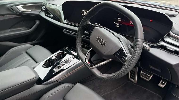 Adaptive cruise control, Advanced driver attention and fatigue montior, Audi application store, Audi assistant, Audi connect emergency call and service, Audi drive select, Audi smartphone interface, Audi virtual cockpit plus with 11.9" OLED colour display, Automatic start/stop system with coasting functionality, Camera based traffic sign recognition, Intersection assist, Lane departure warning, MMI navigation plus with high resolution 14.5" OLED touchscreen colour display, Park assist plus, Parking system plus with 360 display, Progressive steering with servotronic, Rear view camera, Swerve assist and turn assist, Traffic sign based speed limiter, Sports suspension lowered by 20mm, 2 USB-C ports in both the front and rear, Audi sound system impressive sound with 10 loudspeakers including centre speaker and subwoofer, 6-channel amplifier with a total output of 180 watts, DAB digital radio reception, Smartphone compartment with wireless charging, Aluminium roof rails, Aluminium window trims, Auto dimming rear view mirror, Body colour door mirrors, Door mirrors - electrically adjustable, heated, folding and auto dimming on both sides, Front and rear electric windows, Front door sill trims with aluminium inlays, illuminated with 'S' logo, High beam assist, LED headlights Plus incl. digital daytime running lights, turning light, all-weather light, motorway light, manouevring light and intersection light, LED rear lights pro incl. dynamic rear indicators and illuminated light strip with animated coming and leaving home function, LED third brake light, Privacy glass, Rear and side windows with heat insulating glass, Rear side wing doors, Rear wash/wipe, S Line badges on the front wings, S line bumpers, radiator grille and diffuser in phantom black and diffuser insert in matt anthracite, White rhombus logo projection light in exterior mirrors, Windscreen with acoustic glazing, 3 rear headrests, 3 seat rear bench, 3 spoke leather steering wheel with multi-function buttons with touch control, flattened on top and bottom, with S badging and contrast stitching, 3-zone automatic climate control, 40:20:40 split folding rear seat bench with centre armrest and cup holders, Comfort front centre armrest, Front and rear floor mats, Front seats with manual adjustment for position and 4-way electric lumbar support, Front sport seats with integrated headrest and S embossed logo, Headlining in black cloth, Heated front seats, i-Size child seat mounting on the front passenger side and outer rear seats, i-Size and top tether on the outer rear seats, Luggage compartment lid, electrically opening and closing, Manual steering column height and depth adjustment, Single front passenger seat, Stainless steel pedals and footrest, Steering wheel grips in perforated leather and shift paddles, Ambient lighting package plus - A5, 3x3 point rear seat belts, Driver airbag, Electric child safety locks, First aid kit with warning triangle and vests, Front emergency brake assist, Front passenger airbag, Front passenger airbag deactivation, Front side airbags with head airbag system and front interaction airbag, Hill hold assist, Seat belt monitoring with rear seat occupant reminder, Tyre pressure loss indicator, Anti theft alarm, Anti-theft wheel bolts, Keyless Go, Accent surfaces and control buttons in gloss black, Black dashboard with contrast stitching, Inlays in matt brushed aluminium with linear embossing, anthracite, Softwrap in leatherette with contrast stitching, Upper and lower interior elements in leatherette, Tyre repair kit,