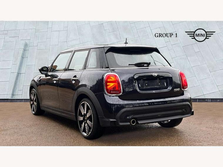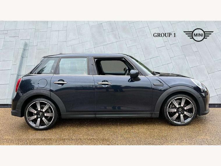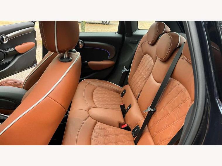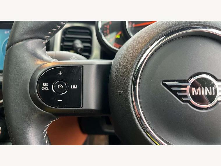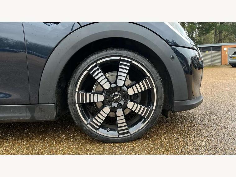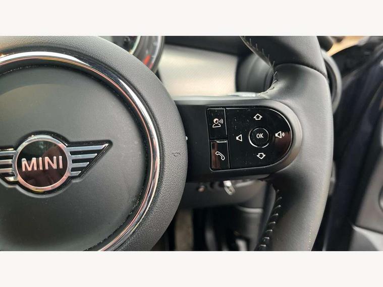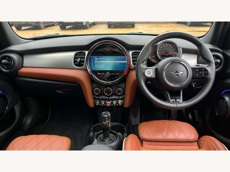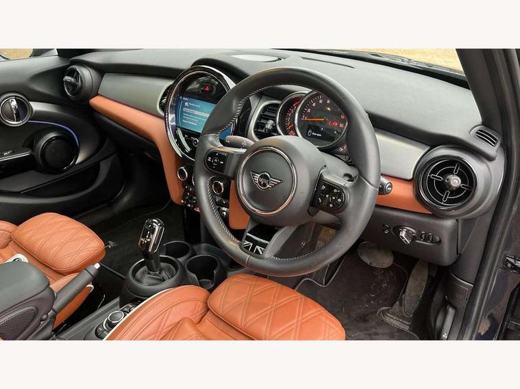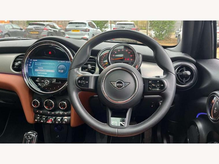 Automatic start/stop function with brake energy recuperation, Compatible mobile phone bluetooth with audio streaming, Cruise control with brake assist, Electro-mechanical speed dependant steering assistance, Flexible car sharing preparation, Instrument cluster, MINI Driving Modes - centre toggle switch to control driving setting (sport, mid and green), Mini E-call, MINI TeleServices, On board computer, Rear park distance control, Service interval indicator, Double Vanos system, Fully variable valve control, Gear change indicator display, High precision injection, Performance Control, Steptronic transmission with double clutch, 6 speakers in front door trims and underneath front seats, 8.8" touchscreen with LED ring, FM tuner and DAB digital radio, Automatic headlight activation switch, Body colour fuel filler cap, Chrome line exterior - radiator grille bars, tailgate handle, lower front grille grating and rear central fog-light, Dynamic brake lights, Electric front+rear windows, Heated rear window, Heated windscreen washer jets, LED headlight with closed ring and daytime driving lights, Metal door sill strips with MINI imprint, Model logo Cooper on right of tailgate, Rain sensor window wipers, Rear fog lights, Rear LED lights with union jack design, Rear window wiper, Side scuttle panel with integrated indicator, Sun/heat protection glass, White indicator lenses, 12V Accessory socket in centre console, 4 lashing eyes in luggage compartment, 60/40 split folding rear seat, Anthracite headliner including grab handles and clothes hooks, Carbon black colour line - Knee roll and door armrest, Chrome interior highlights, Chrome line interior - air vents, gear lever base, door handles and speakers in doors, Cupholders, Front and rear head restraints, Front and rear isofix with front passenger airbag deactivation, Glove compartment, Height and length steering column adjustment, Interior lighting with 12 different colours across the dashboard, underneath door bezel with illuminated laser-engraved design on central display, Leatherette gearshift lever and handbrake gaiters, LED reading lights, vanity mirror lights, front foot well light and spotlight on front seats, Manual air conditioning, Mechanical seat adjustment - forward/back & backrest for front seats and driver seat height adjust, MINI yours badge on exterior pillar, Multifunction steering wheel, Storage compartments in doors, Sunvisors with vanity mirrors, Velour floor mats, Walknappa leather steering wheel with grey seam and MINI Yours badge on Piano Black lower steering wheel spoke, 3 point seatbelts on all five seats, 6 Airbags - front, side, head and seat belt tensioners, Anti-lock braking system (ABS), DSC - Dynamic Stability Control, Front and rear disc brakes, Hill start assist, Single tone fanfare horn, Tyre pressure monitoring system, Alarm system with tilt sensor, monitoring doors, bonnet interior and tailgate, Electronic vehicle immobiliser, Start/stop toggle with keyless go, Tool kit,