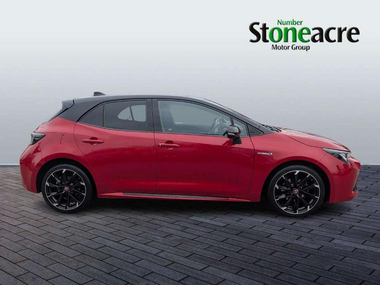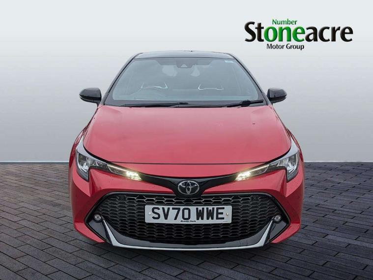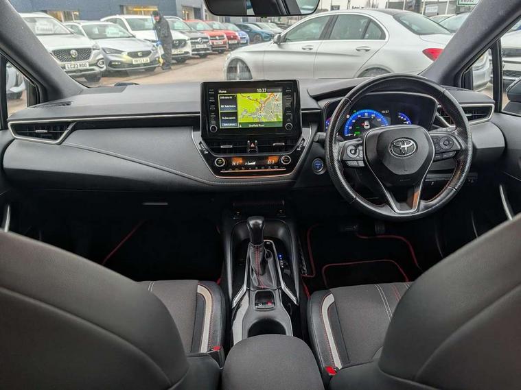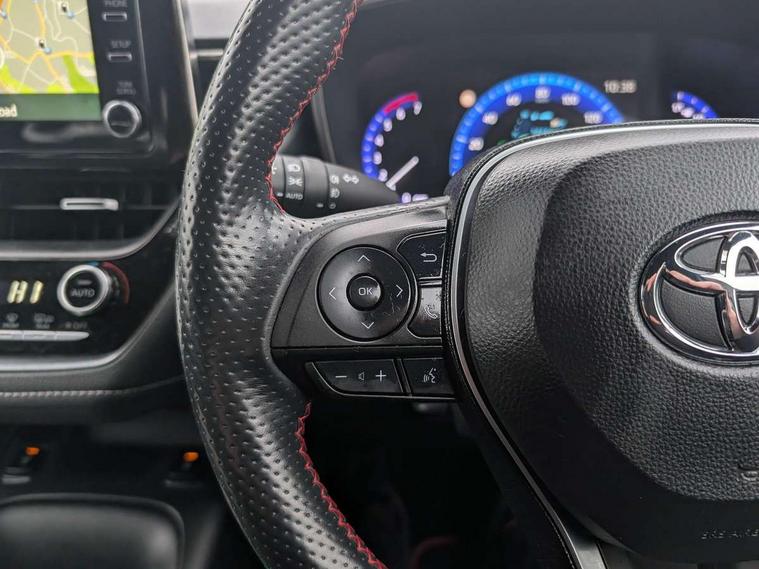 3D Colour multi information display, Bluetooth telephone connectivity, E-call, Electrically assisted power steering, Head up Display, Intelligent park assist, Push button start, Reversing camera, Smartphone integration with Apple CarPlay and Android auto, Speed limiter, Voice activation, Vehicle Stability Control (VSC), 2 ring combimeters with 7" colour TFT screen, 6 speakers, 8" multimedia and back monitor, AM/FM radio, DAB Digital radio, Toyota touch 2 with go navigation system, USB and Aux in connectors + 12V front outlet, Anti-jam protection on power windows, Auto dimming inside rear view mirror, Auto up and down function on all power windows, Automatic folding mirrors, Automatic headlights, Body coloured bumpers, LED daytime running lights, LED front fog lights, LED Headlights, LED rear combi lights with LED lightguide, Power adjustable heated door mirrors, Power front windows, Power rear windows, Privacy glass, Rain sensing wipers, Rear window wiper, Reverse tilting door mirrors, Shark fin antenna, 3 rear headrests, 3 spoke leather steering wheel + gear knob, Alcantara/partial leather upholstery, Clean air filter, Dual zone automatic air conditioning with ECO mode switch, Front head restraints, Heated seats, ISOFIX seat fixing (2 fixings on rear outer seats), Pollen filter, Power lumbar support, Sports seats, Steering wheel switches, Tilt/telescopic steering column, Whiplash Injury Lessening (WIL) feature (active headrest) for seats, Parking pack - Corolla, Toyota safety sense 2 pack - Corolla, 3x3 point rear seatbelts, Adjustable front driver seat belt extender, Anti lock braking system + Electronic brake force distribution, Brake assist function, Electronic parking brake, Front passenger airbag on/off switch, Front seatbelt reminder, HAC - Hill start assist control, Rear seat belt reminder, Seatbelt pretensioners and force limiters, Supplemental restraint system (SRS) 7 airbags - dual driver, dual side curtain, side impact and driver knee airbags, Traction control, Tyre pressure warning system, Alarm/immobiliser, Remote central locking + deadlocks, Tyre repair kit,