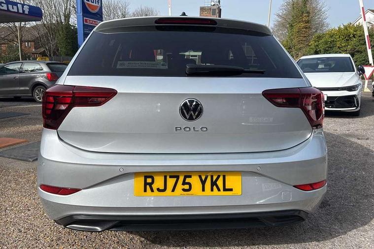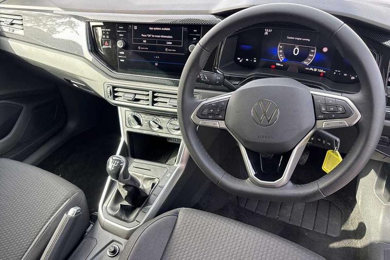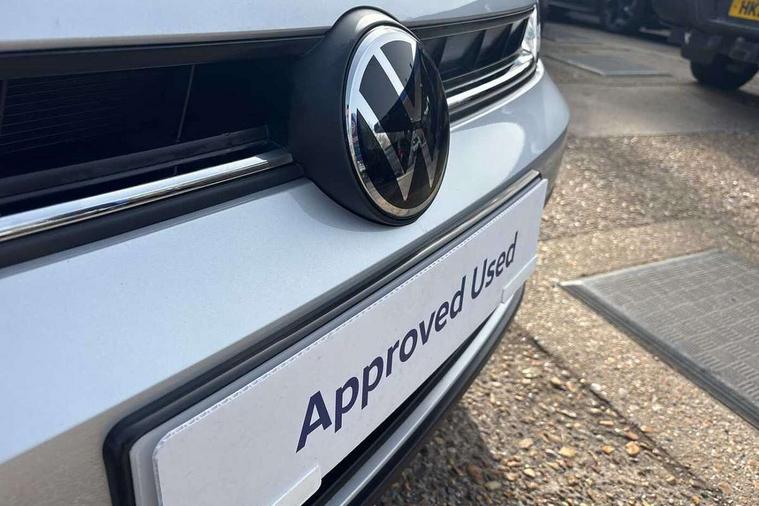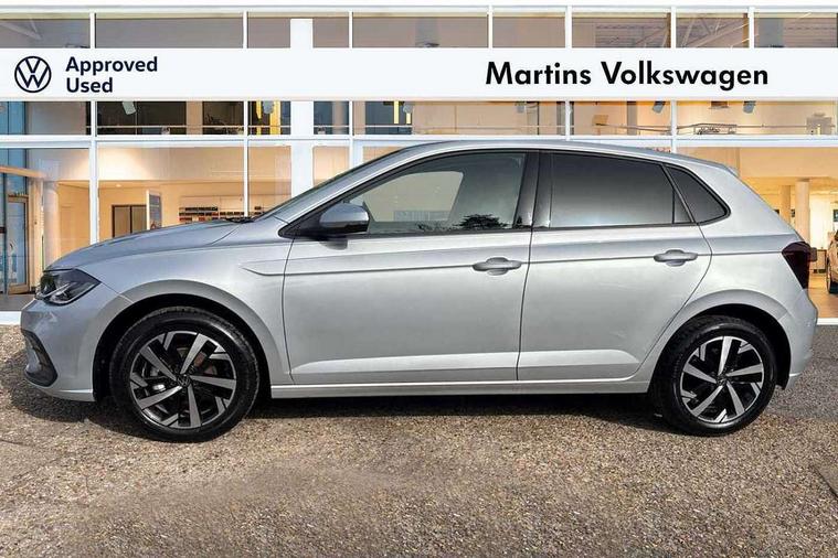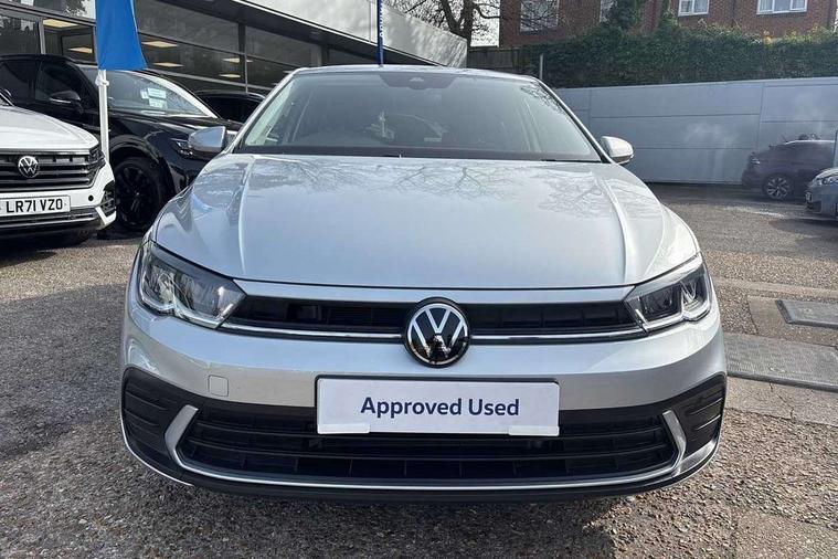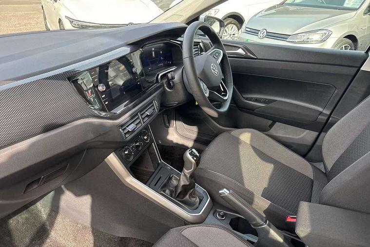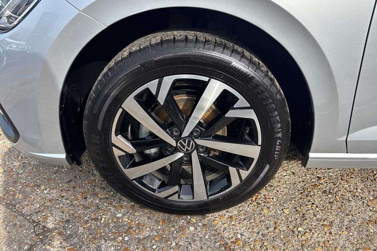 Adaptive cruise control without follow-to-stop and speed limiter, Advanced driver attention and drowsiness monitor, Bluetooth mobile phone interface, Dynamic road sign display, Emergency call service, Mobile phone preparation with inductive charging function, Multifunction front facing camera for distance control, Power assisted speed sensitive steering, Preparation for navigation system with media and internet package, Preparation for We connect and We connect plus, Rear view camera, Speedo and rev counter, electronic odometer, trip, service interval display and exterior temperature gauge, Standard rear axle, Travel Assist - Lane keeping system and traffic jam assist, Travel assist including emergency assist, Trip computer, Warning signal and warning light for front and rear seatbelts not fastened, Washer fluid level indicator, Wireless app connect, Front wheel drive, Rear shock absorpion, Start-stop system with battery regeneration (recuperation - energy recovery during braking), DAB Digital radio, Diversity antenna for FM reception, Automatic dimming interior rear view mirror, Automatic headlight control with LED separate daytime running lights with coming/leaving home function, Body colour bumpers with chrome inserts, Body colour door handles, Body colour door mirrors, Electric front windows, Engine badge deletion, Headlight range adjustment, Heat insulating and laminated safety glass windshield, LED Headlights, LED rear combination lamps, Power folding adjustable/heated exterior mirrors and front passenger exterior mirror lowering function, Rain sensor, Rear electric windows, Rear fog light, Rear side wing doors, Rear tinted glass from B-pillar backwards approx 65% tinted, Rear windscreen washer and wiper with interval delay, Third brake light, 12V power socket in centre console, 2 front and 2 rear reading lights with switch off delay and dimmer, 2 USB-C ports in the front, 2 USB-C charging sockets on the center console in the rear, 3 rear head restraints, 60/40 split folding rear seat and rear seat bench not split, Carpet mats, front and rear, Ceramique roof lining, Chrome plated radiator grille inserts, air vent surrounds and light switch surrounds, Door and side trim panel, Driver and front passenger seat height adjustment, Driver/passenger sunvisors with illuminated vanity mirrors, Front centre armrest, Front seat backrest storage pockets, Front standard seats, Handbrake lever handle in leather, Hartley/Thomas cloth upholstery, Headliner in recycled material, Isofix child seat preparation easy-fit (for two outer rear seats, and front passenger seat) compatible with I-size, Leather trimmed gear knob, Luggage compartment cover, Luggage compartment lighting, Removable luggage compartment floor, Single front passenger seat, Standard climatic zones, Standard pedal cluster, Three spoke leather wrapped multifunction steering wheel, Light and vision pack - Polo, 3 point height adj front seatbelts + pretensioners, 3 point seat belt for centre rear seat, 3 point seatbelts, outer rear with ECE lable, ABS, Driver and front passenger airbag with front passenger airbag deactivation, Drivers and front passengers safety optimised head restraints, ESC (Electronic stability control) + EDL (Electronic Differntial lock) and ASR (Traction control), Extended and predictive pedestrian/ cyclist protection, Front assist with autonomous emergency braking (for Adaptive Cruise Control ACC up to 130 mph), Front curtain and side airbags with center airbag, Front disc brakes, Hill hold control, Manual child lock in rear doors, Rear drum brakes, Single tone horn, Tyre pressure loss indicator, Alarm with interior protection, Anti-theft alarm system with interior monitoring, backup horn, and towing protection, Anti-theft wheel bolts, Electronic engine immobiliser, Lava stone black gloss/matt decorative inserts in dash and front door panels, 16" Torsby alloy wheels, Low rolling resistance tyres,