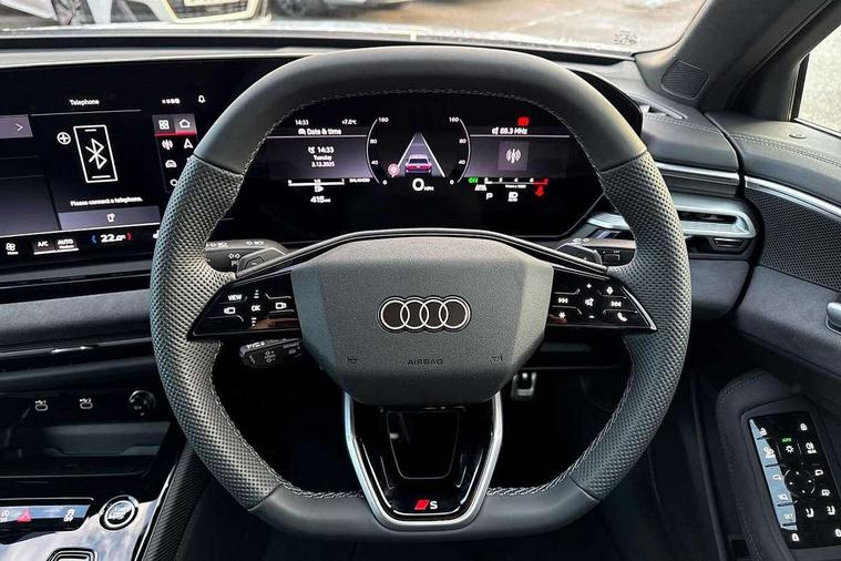 Adaptive cruise assist plus, Audi application store, Audi assistant, Audi connect emergency call and service, Audi connect with Amazon Alexa Integration, Audi digital key, Audi drive select, Audi phone box with wireless charging, Audi virtual cockpit, Automatic start/stop system with coasting functionality, Bluetooth interface, Emergency assist, Lane departure warning with emergency assist, Luggage compartment lid with Electric opening / closing, MMI 10.9" front passenger touch display, MMI navigation plus with high resolution 14.5" OLED touchscreen colour display, Power assisted steering, Service interval indicator, Side assist and exit warning with rear cross-traffic assist and rear turn assist, Smartphone interface includes wireless Apple carplay/Android Auto, Voice control system, Sports suspension, Audi sound system impressive sound with 10 loudspeakers including centre speaker and subwoofer, 6-channel amplifier with a total output of 180 watts, DAB Digital radio, USB ports with charging function, Audi Matrix LED technology, Auto dimming rear view mirror, Automatic-dynamic headlight range control, Black door handle inserts, Dipped beam, main beam, position light, dynamic indicator and cornering light, Door mirrors - electrically adjustable, heated, folding and auto dimming on both sides, Dynamic light scenarios of the coming home/leaving home function when stationary, Electric front/rear windows, Exhaust-pipe in dark chrome, Frameless auto dimming interior rear view mirror, Front illuminated aluminium inlay door sill trims with S logo, Headlight cleaning system, LED headlights Plus incl. digital daytime running lights, turning light, all-weather light, motorway light, manouevring light and intersection light, LED rear lights pro incl. brake lights, tail lights, rear number plate lights, reversing lights, continuous light strip, LED third brake light, Privacy glass, Rain and light sensors, Rear and side windows with heat insulating glass, Rear boot, Rear side wing doors, Sport exterior inc Radiator grille, air inlets and diffuser in scandium grey as well as inlay in diffuser in selenite silver, White rhombus logo projection light in exterior mirrors, Windscreen with heat insulating and acoustic glazing, 3 seat bench in 2nd row, 3-spoke Sport leather steering wheel flat top and bottom with multifunction and shift paddles, 4 way electric lumbar support for driver and front passenger, 4 zone deluxe automatic climate control, 40:20:40 split folding rear seat bench with centre armrest and cup holders, Centre armrest, front- adjustable angle with four settings, Dinamica microfibre/Artificial leather upholstery, Electrically adjustable front seats, Front head restraints, Heated front seats, i-Size child seat mounting on the front passenger side and outer rear seats, i-Size and top tether on the outer rear seats, Manual steering wheel adjustment, Rear headrests, Single front passenger seat, Sport front seats, Stainless steel pedals and footrest, Steering wheel trim in chrome look, S emblem, steering wheel grips in perforated leather and contrasting stitching, Ambient lighting package plus - A6, Black exterior package - A6, Drive and Park assistance package - A6, Protective warning assistance package - A6, 3x3 point rear seat belts, Black seat belts, Convenience key with safelock, Driver and front passenger airbags, EBD - Electronic brakeforce distribution, Electric rear child safety lock, Electromechanical parking brake, Electronic Stability Control (ESC) including ABS, ASR and EDL, First aid kit with warning triangle and vests, Front passenger airbag deactivation, Proactive occupant protection, front, side and rear, Red brake calipers, Seatbelt monitoring, Side airbags in front and rear with head airbag system and front interaction airbag, Standard 18"steel disc brakes front and rear, Tyre pressure monitoring system, Anti theft alarm, Anti-theft wheel bolts, Immobiliser, Keyless Go, Remote central locking, Accents in the interior in aluminium look, Carbon square structure inlays, Upper and lower interior elements in dinamica microfibre, Wraparound interior elements in artificial leather, Tyre repair kit,