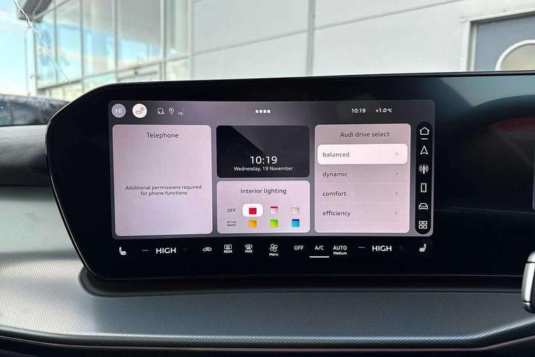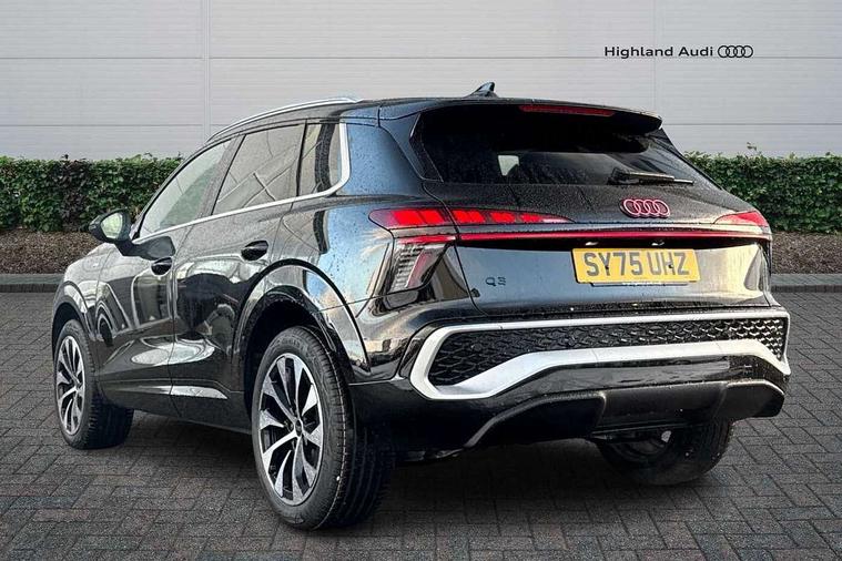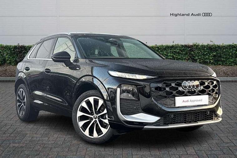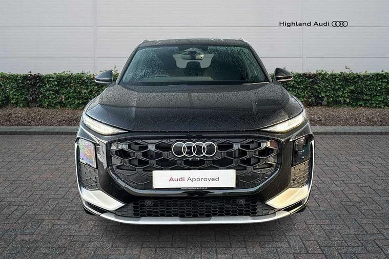 Adaptive cruise control, Audi connect emergency call and service, Audi connect remote and controls, Audi drive select (Balanced/Individual, effeciency, comfort and dynamic), Audi virtual cockpit plus - 11.9" display, Bluetooth interface, Camera based traffic sign recognition, Driver attention and fatigue monitor with driver monitoring, Front cross traffic assist, Lane departure warning with emergency assist, Panoramic curved display with 12.8" MMI navigation plus and MMI touch, Park assist plus with parking system and 360 display, Phonebox light with wireless charging, Reversing camera, Smartphone interface includes wireless Apple carplay/Android Auto, Start/stop system, Swerve assist and turn assist, Traffic sign based speed limiter, Voice control system with natural language interaction, Comfort suspension, Petrol Particulate Filter, 2 USB-C ports with charge and data functions, Audi sound system with 10 loudspeakers, subwoofer, 8 channel amplifier with 260 watts, DAB digital radio module, Acoustic glass for front door windows, Acoustic windscreen, Aluminium roof rails, Aluminium window trim, Audi Q3 lettering on the B-pillars, Auto dimming door mirrors, Auto dimming rear view mirror, Body colour door mirrors, Contrasting finish in volcano grey, Electrically folding, adjustable and heated door mirrors with integrated LED side indicators and kerb view function for passenger side, Full paint finish, Illuminated door sills with aluminium inserts at the front with S logo, LED daytime running lights, LED headlights plus with LED rear lights pro with continous light strip, illuminated Audi rings, rear, LED third brake light, Loading sill protector in stainless steel, Main beam assist, Privacy glass - dark tinted rear window, rear door and side windows, Projection light in the exterior mirrors - Projects a graphic element onto the ground, Q3 badging on the rear, Rain and light sensors, Rear side wing doors, Rear window, rear door windows and rear side windows in clear glass, Rear wiper, Sports bumpers, 3 seat bench in 2nd row, 3 spoke flat top and bottomed leather multi function sport steering wheel with gear shift paddles and "S" badging, 3-zone deluxe automatic air conditioning, 4 way lumbar support for the front seats - electric with horizontal and vertical adjustment in four directions, Black cloth headlining, Front and rear floor mats, Front and rear headrests, Front centre armrest, Heated front seats, Height and reach adjustable steering wheel, Interior storage compartment, Leather/artificial leather upholstery combination with S emblem + front sports seats, Luggage compartment lid, electrically opening and closing, Manual front seats with height adjustment, Rear seat bench plus with split folded 40:20:40, Single front passenger seat, Stainless steel pedals, Steering wheel operating unit, gloss black, Storage compartment in front centre console, Ambient lighting package pro - Q3, S line exterior styling pack - Q3, 3x3 point rear seatbelts, Convenience key with safelock, Driver and front passenger airbag with passenger airbag deactivation, Electromechanical parking brake, Electronic stabilisation control including ABS, ASR and EDL, First aid kit with warning triangle and high visibility vests, Front emergency brake assist, Hill hold assist, i - Size child seat mounting on the front passenger side and i - Size and top tether on the outer rear seats, Power operated child locks, Seatbelt monitoring, Three point automatic belts with belt tensioner and height adjustment, Tyre pressure loss indicator, Anti theft wheel bolts, Remote central locking, Thatcham approved category 1 anti theft alarm, Dark aluminium divergence inlay, Interior elements in dinamica microfibre, Interior trims in aluminium look, Tool kit and Jack,