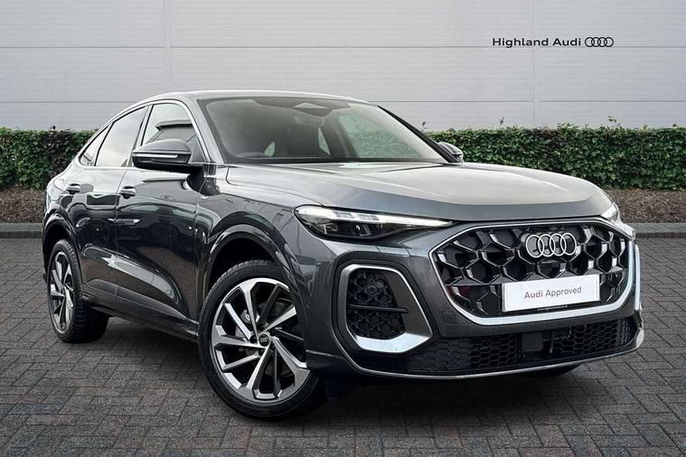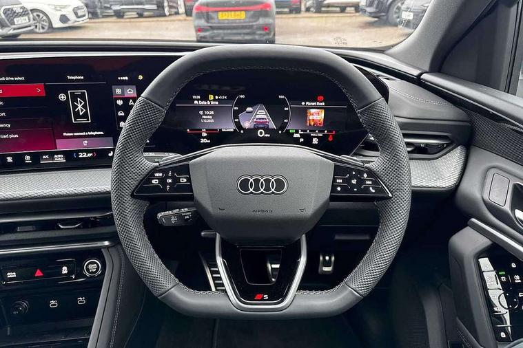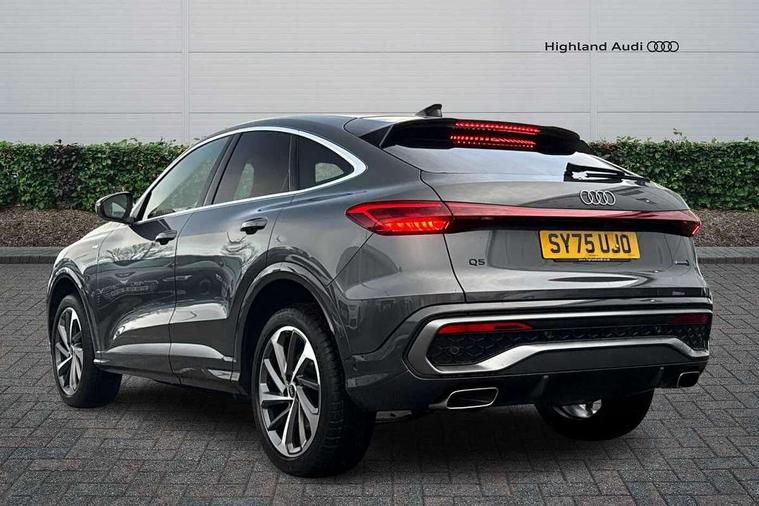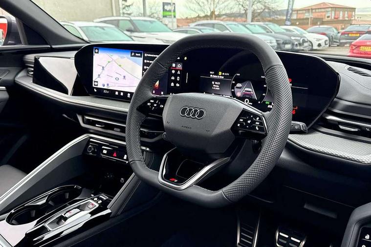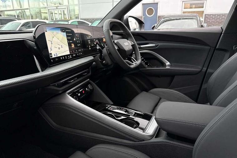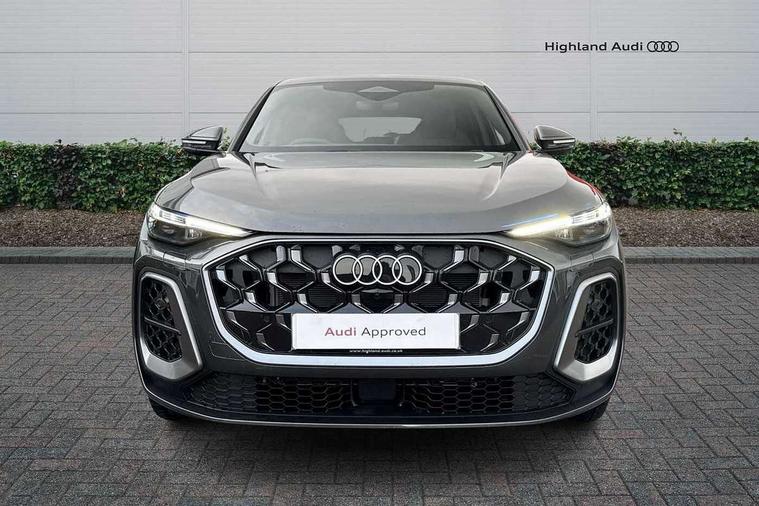 Adaptive cruise control, Advanced driver attention alert, Audi application store, Audi connect emergency call and service, Audi drive select, Audi smartphone interface, Audi virtual cockpit plus with 11.9" OLED colour display, Camera based traffic sign recognition, Fatigue monitor, Front cross traffic intersection assist, Lane departure warning system, MMI navigation plus with high resolution 14.5" OLED touchscreen colour display, Park assist plus, Parking system plus with 360 display, PAS, Reversing camera, Traffic sign based speed limiter, 2 USB-C ports in both the front and rear, Audi sound system impressive sound with 8 loudspeakers including centre speaker and subwoofer, 6-channel amplifier with a total output of 180 watts, DAB Digital radio, Smartphone compartment with wireless charging, Auto dimming rear view mirror, Body coloured door mirrors, Coming/leaving home lighting function, Electrically adjustable heated and folding + automatically dimming exterior mirrors, Front and rear electric windows, Front door sill trims with aluminium inlays, illuminated with 'S' logo, Grill frame, inlay and front air inlets in matt anthracite chrome, Headlight cleaning system, Heated rear window, High beam assist, High gloss window surrounds, LED headlights plus incl. digital DRL, dynamic coming and leaving home function with turning/all weather/motorway/manouevring and intersection lights, LED rear lights pro incl. dynamic rear indicators and illuminated light strip with animated coming and leaving home function, Logo projection light in exterior mirrors, Privacy glass, Projection third brake light for rear window in LED, Radiator grille in phantom black, Rear and side windows with heat insulating glass, Rear honeycombe grille in matt black with inlay in matt anthracite chrome, Rear side wing doors, Rear wash/wipe, S Line badge on the front wings, S line bumpers in contrasting Volcano grey metallic paint finish, Towbar preparation, Windscreen with acoustic glazing, 3 rear head restraints, 3 seat bench in 2nd row, 3 spoke leather steering wheel with multi-function buttons with touch control, flattened on top and bottom, with S badging and contrast stitching, Comfort centre armrest front, Deluxe 3 zone electronic climate control, Front and rear floor mats, Front sport seats with integrated head restraints, Headlining in black cloth, Heated front seats, i-Size child seat mounting on the front passenger side and outer rear seats, i-Size and top tether on the outer rear seats, Interior trim in aluminium look, Luggage compartment lid, electrically opening and closing, Manual steering column adjustment, S embossed logo on front sport seats, Single front passenger seat, Softwrap in leatherette, Stainless steel pedals and footrest, Steering wheel grips in perforated leather and shift paddles, Ambient lighting package plus - Q5, 3x3 point rear seatbelts, ABS, Acoustic vehicle alerting system, Convenience key with safelock, Driver and front passenger airbag with passenger airbag deactivation, Electric child safety locks, First aid kit with warning triangle and high visibility vests, Front emergency brake assist, Front side airbags with head airbag system and front interaction airbag, Hill hold assist, Rear seat occupant reminder, Tyre pressure loss indicator, Anti theft alarm, Anti-theft wheel bolts, Accent surfaces and control buttons in gloss black, Anthracite matt brushed aluminium inlays with linear embossing, Black dashboard with contrast stitching, Upper and lower interior elements in artificial leather, Tyre repair kit,