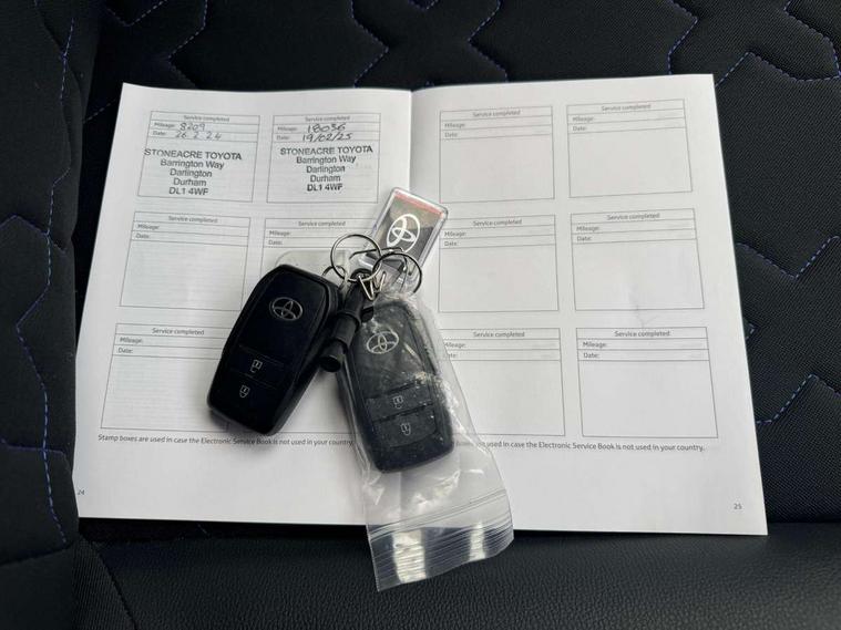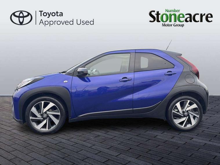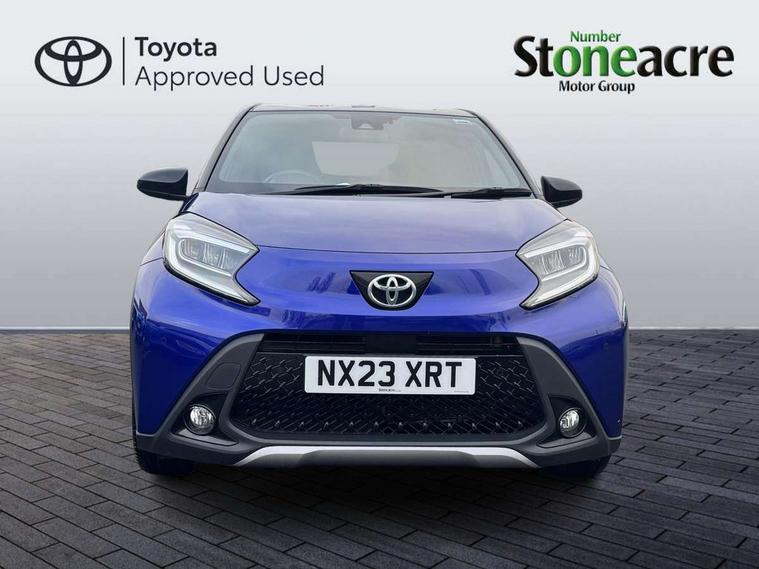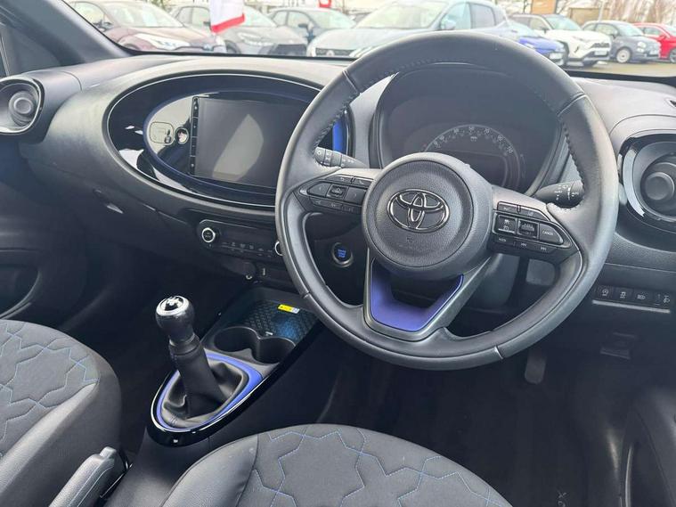 4.2" TFT colour screen, Adjustable speed limiter, Analogue speedometer, Bluetooth connectivity, Digital tachograph, Driver attention alert system, eCall emergency call system, Electric power steering, Front and rear parking sensors with auto brake, Intersection turn assist, Key reminder warning, Noise reduction kit, Pre collision system with emergency steering assist, Remote boot door release on key, Reversing camera with static guide lines, Smart entry and push button start, Speed limit display, Start and stop, Wireless charger, Wireless Smartphone Integration includes Apple CarPlay and Android auto, Vehicle Stability Control (VSC), 4 speakers, 9" HD multimedia display touch screen with Toyota smart connect, DAB digital audio broadcast, USB connector, Auto headlights, Auto wipers, Automatic headlights cut-off, Automatic high beam On/Off switch, Bicycle towing hook, Black fog light surrounds, Black side protection mouldings, Black wheel arch mouldings, Body colour door handles, Body coloured front bumper, Boot door scuff plate, Eclipse black rear bumper, Electric heated door mirrors, Follow me home headlights, Front and rear underruns in silver, Front fog lights, Front power windows, Gloss black door mirrors, Gloss black upper front grille, Headlight cut-off reminder, LED daytime running lights guide, LED front light guide, LED High mounted stop lamp, LED projector headlights, Manual day/night rear view mirror, Manual headlight levelling, Pagoda roof, Power adjustable door mirrors, Power back door, Privacy glass, Rain sensor, Rear combination lights LED bulb type, Rear side wing doors, Rear windscreen defogger, Rear windscreen wiper, Remote hazard lights system, Short antenna, Variable intermittent windscreen wipers, 12v power outlet - front, 2 seat bench in 2nd row, 3 spoke leather steering wheel, 50/50 split folding rear seat, Adhesive roof headlining, Adjustable speed limiter switch on steering wheel, Audio and telephone switches on steering wheel, Auto air conditioning, Black roof lining, Body colour satin anodised insert on steering wheel, Boot light, Centre room light, Chrome interior door handles, Chrome surround on air conditioning buttons, Clean air filter, Console box storage, Floor mats, Front and rear cup holders, Front head rest deco art, Front head restraints, Height adjustable driver seat, Intelligent adaptive cruise control switch on steering wheel, ISOFIX child restraint system on rear seats, Lane departure alert switch on steering wheel, Leather gearshift knob, Light blue ambient lighting in centre console, Manual tilt steering wheel, Manually reclining and sliding driver seat, Manually reclining and sliding front passenger seat, Multimedia switches on steering wheel, Partial synthetic leather upholstery, Pollen filter, Rear door pockets, Rear head restraints, Satin silver insert on gear shift knob, Single compartment glovebox with lights, Single front passenger seat, Soft tonneau cover, Sun visors with mirror on driver and passenger side, Voice recognition switch on steering wheel, Toyota safety sense pack - Aygo X, Anti lock braking system + Electronic brake force distribution, Child safety door lock, Emergency brake light signal (EBS), Hill start assist control (HAC), Passenger airbag on/off switch, Seat belt reminder for front and rear seats, Supplement restraints system (SRS) - 6 airbags, Traction control, Tyre pressure warning system, Immobiliser, Remote power door locks, Black wheel centre caps, Tyre repair kit,