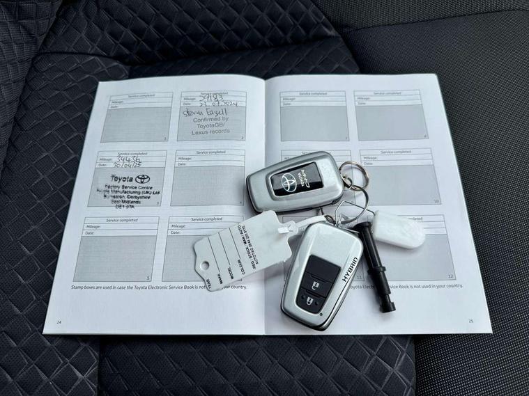 4.2" coloured TFT screen for multi-information display, Adaptive cruise control, Bluetooth connectivity, E-call, Electric power steering, Hybrid system indicator, Lane departure alert with steering control, Remote boot door release in cabin, Remote boot door release in key, Reversing camera, Road sign assist - RSA, Trip computer, Voice recognition, Vehicle Stability Control (VSC), 6 speakers, AM/FM radio, DAB Radio (Digital Audio Broadcasting), Toyota touch 2 multimedia system with 8" display, USB connector, Wi-fi connectivity, Anti-jam protection on power windows, Auto high beam, Auto up and down function on all power windows, Automatic headlights, Automatic headlights cut-off, Black and body coloured rear bumper, Black upper front grille, Body colour door handles, Body colour door mirrors, Body colour front spoiler lip, Body coloured front bumper, Boot door release with push button, Electric heated door mirrors, Follow me home headlights, Front and rear power windows, Front fog lights, Honeycomb lower front grille, LED daytime running lights, LED front light guide, LED High mounted stop light, LED rear brake lights, LED rear combination lights, Manual headlight levelling, Manually retractable door mirrors, Noise reduction layer on front windows and windscreen, Power adjustable door mirrors, Rain sensor, Rear side wing doors, Rear spoiler, Rear tailgate, Rear window defogger, Rear window wiper, Reflective LED headlights, Shark fin antenna, UV-filter on driver and passenger windows, UV-filter on rear windows, 12v power outlet - front, 3 rear headrests, 3 seat bench in 2nd row, 3 spoke leather steering wheel, 60/40 split folding rear seat, Adjustable rear headrests, Adjustable speed limiter switch on steering wheel, Assist grips front and centre pillar, Audio and telephone switches on steering wheel, Black front door assist grips, Boot light, Chrome interior door handles, Cloth upholstery, Driver and front passenger personal light, Driver and front passenger Whiplash Injury Lessening seats, Dual zone automatic air conditioning, Floor mats, Front cupholders, Front head restraints, Front sports seats, Glovebox with internal light, Hard tonneau cover, Hooks for luggage holding net, Humidifying Nanoe air purifier, Illuminated entry system, Isofix attachments on rear seats, Leather gearshift, Light on driver sun visor, Light on passenger sun visor, Manual telescopic steering wheel, Manual tilt steering wheel, Manually adjustable lumbar support on driver seat, Manually height adjustable driver seat, Manually height adjustable front passenger seat, Manually reclining driver seat, Manually reclining front passenger seat, Manually sliding driver seat, Manually sliding front passenger seat, Microphone on front personal light, Mirror on driver sun visor, Mirror on passenger sun visor, Multimedia switches on steering wheel, Pollen filter, Shopping bag hooks, Single front passenger seat, Slow opening on lower glovebox, Voice recognition switch on steering wheel, 16 Disk front wheel brake, 3x3 point rear seatbelts, ABS+EBD+Brake assist, Electronic parking brake, Front and rear seatbelt reminder, Front passenger airbag on/off switch, Hill start assist control (HAC), Pre collision system with pedestrian detection, Pre-tensioners and force limiters, Rear door child safety locks, SRS Airbags - Driver + Front passenger, front side, front and rear curtain and driver's knee airbags, Toyota safety sense, Tyre pressure monitoring system, Acoustic vehicle alert system (AVAS), Glass-breaking alarm sensors, Immobiliser, Intrusion alarm, Intrusion sensor, Motion sensor alarm, Power door locks, Power passenger window lock, Remote central locking, Black lower dashboard, Black upper dashboard, Grey deco line on upper dashboard, Matte black centre console, Tyre repair kit,