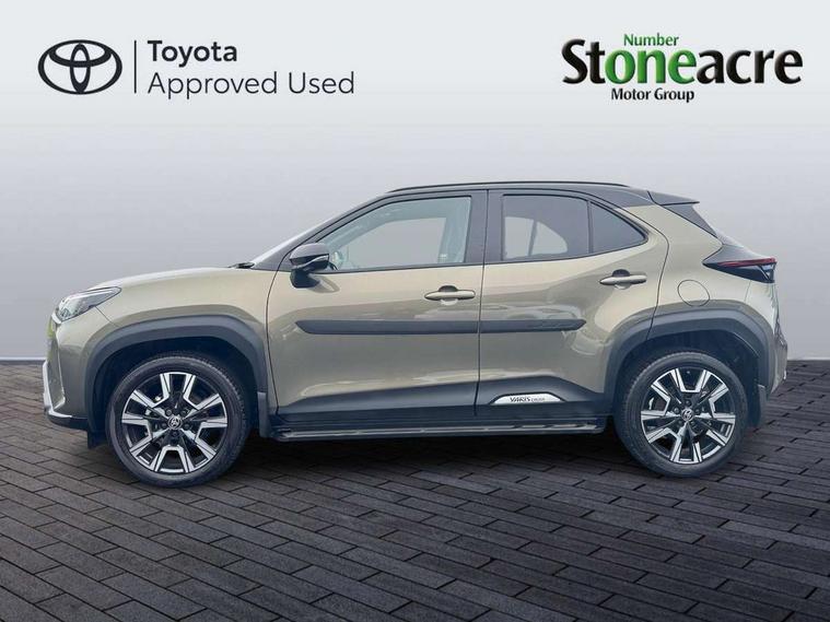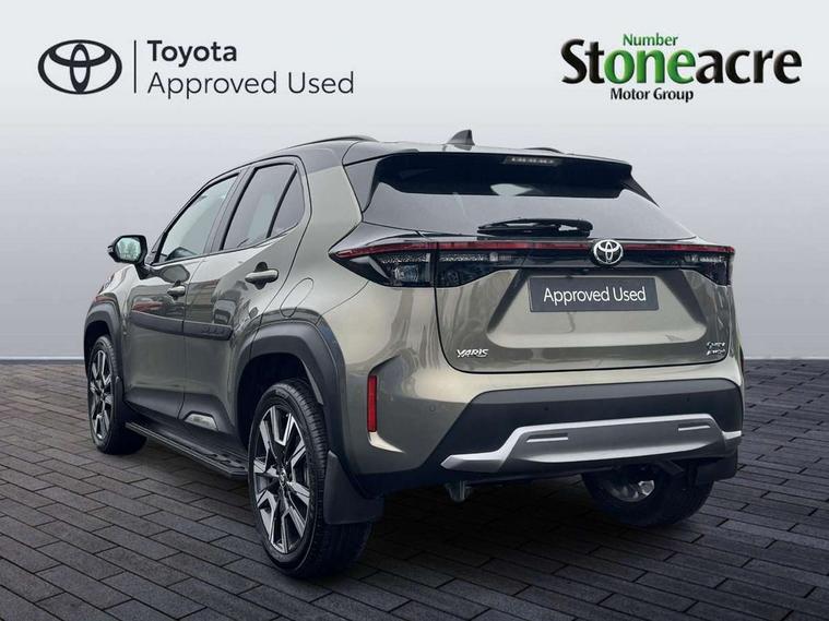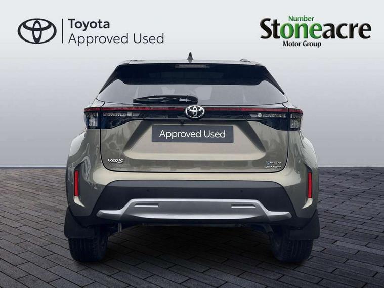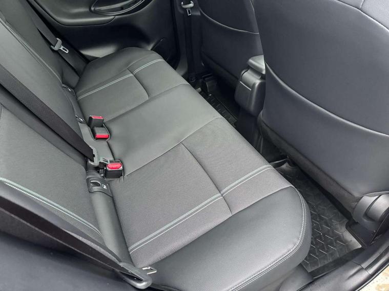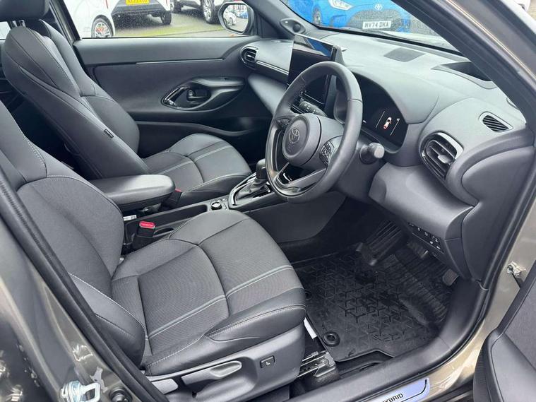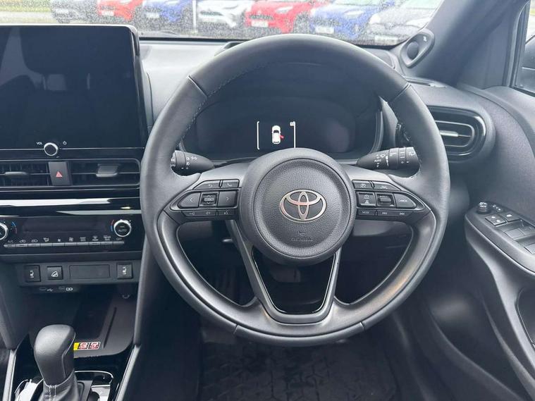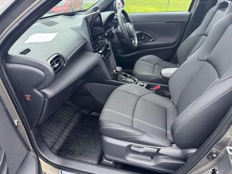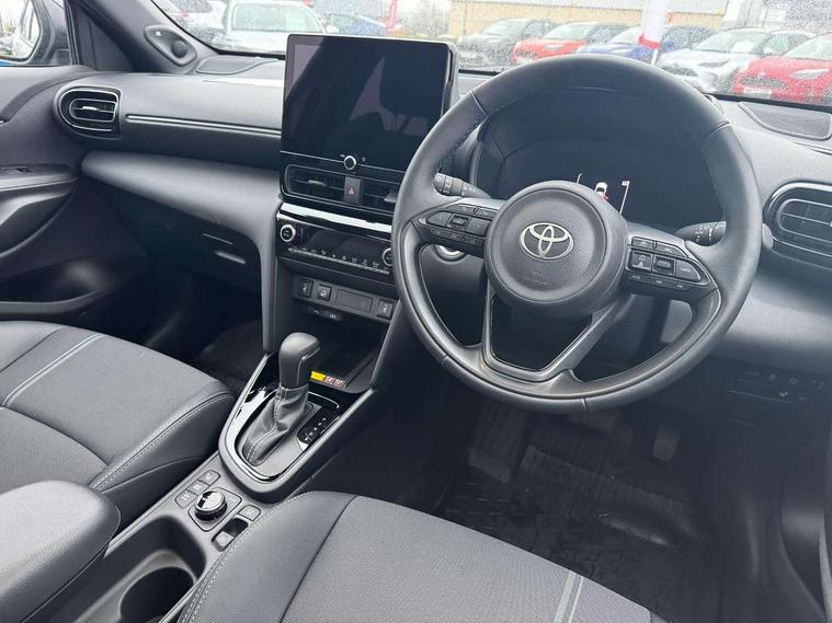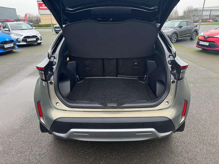 10" coloured head up display, 10.5" Multimedia display screen, 10.5" Toyota smart connect+ with navi multimedia system with wireless Smartphone integration incl Apple CarPlay, 12.3" Multi information display screen, 360 degree panoramic view monitor, Adaptive cruise control, multi info switches on steering wheel, Adjustable speed limiter, Advanced parking assist, Blind spot monitoring, Bluetooth connectivity, Color multi-information display, Digital speedometer, Digital tachometer, Drive mode selector, Driver attention alert system, Dynamic guide lines on reversing camera, eCall emergency system, Electric power steering, Emergency driving stop system, Full range intelligent adaptive cruise control, Hybrid system indicator, Intelligent front and rear parking sensors with clearance sonar and automatic braking, Intersection turn assist, Key reminder warning, Lane change assist, Lane departure warning, Lane trace assist, My T Connected services, Power tailgate, Pre-collision system enhanced with emergency steering assist, Rear cross traffic alert with brake assist, Remote boot door release in cabin, Road sign assist - RSA, Safe exit assist, Telephone switch on steering wheel, Wireless Mobile Phone Charger, Rear limited slip differential (LSD) lock, Steering assisted vehicle stability control, DAB Digital radio, Front USB Type-C connector, Front USB-C device charger, JBL Premium sound system with 8 speakers, 3rd brake light, Acoustic windscreen glass, Anti-jam protection on power windows, Auto dimming rear view mirror, Auto high beam [AHB] with on/off switch, Auto intermittent windscreen wipers, Automatic headlights, Automatic headlights cut-off, Automatically retractable door mirrors, AWD i-Badge, Black door moulding, Black lower front grille, Black protection moulding on side doors, Black roof rails, Black wheel arch mouldings, Body colour door handles, Body colour front bumper, Body colour rear bumper, Electric adjustable heated door mirrors, Follow me home headlights, Front and rear electric windows with auto up/down function, Front under run, Gloss black upper front grille, Headlight cut off reminder, Indicators integrated on door mirrors, Intermittent rear wiper, Kick activated power back door, LED daytime running lights guide, LED front fog lights, LED front light guide, LED Indicators, LED projector headlights, LED rear lights with sequential indicators, Manual headlight levelling, Meshed shape upper front grille, Noise reduction layer on windscreen, Privacy glass, Rain sensor, Rear side wing doors, Rear spoiler, Rear under run, Rear window defogger, Shark fin antenna, 12v power outlet - front, 12V power point in boot, 2x Rear coat hooks, 3 seat bench in 2nd row, 3 spoke leather steering wheel, 40/60 split deckboard, 40:20:40 split folding rear bench seat, Adjustable rear headrests, Adjustable speed limiter switch on steering wheel, Black roof lining, Boot light, Driver and front passenger personal lights, Driver and front passenger Whiplash injury Lesseing seats, Driver and passenger seatback pockets, Dual zone automatic air conditioning, Fabric door trim, Front console box, Front cup holders, Front door pockets, Front head restraints, Front sport seats, Front/rear assist grips, Gear shift indicator, Gloss black surround on gear shift console, Heated driver and passenger seats, Heated steering wheel, Height adjustable driver's seat, Height adjustable front passenger seat, Hooks for luggage holding belts, ISOFIX child restraint system, Lane departure alert switch on steering control, Leather gearshift, LED centre room light, Light on driver and passenger sun visor, Manual telescopic and tilting steering wheel, Mirror on driver and passenger sun visor, Nanoe-X air purifier, Partial synthetic leather upholstery, Pollen air filter, Power adjustable lumbar support on driver seat, Rear cup holders, Rear door pockets, Rear head restraints, Remote air-conditioning system, Single compartment glovebox, Single front passenger seat, Soft tonneau cover, Storage box under boot floor, Voice recognition switch on steering wheel, White ambient lighting in centre console, White ambient lighting in footwell, White ambient lighting on front doors, Yaris cross floor mats, 3x3 point rear seat belts, ABS+EBD+Brake assist, Downhill Assist Control (DAC), Driver and passenger central airbags, Driver and passenger front airbags, Driver and passenger side airbags, Electronic parking brake, Emergency brake light system (EBS), Front seat belt reminder, Hill start assist control (HAC), Passenger airbag on/off switch, Pre-collision system with pedestrian and cyclist detection, Rear door child safety locks, Rear passenger side airbags, Rear seat belt reminder, Traction control, Tyre pressure warning system, Digital key, Immobiliser, Intrusion alarm, Keyless smart entry with push button start, Power door locks, Power passenger window lock, Remote door lock, Gloss black side air vent surrounds, Tyre repair kit,