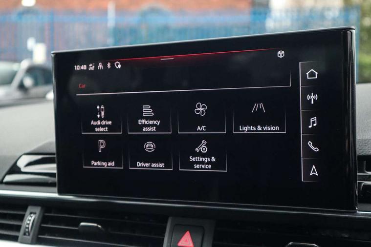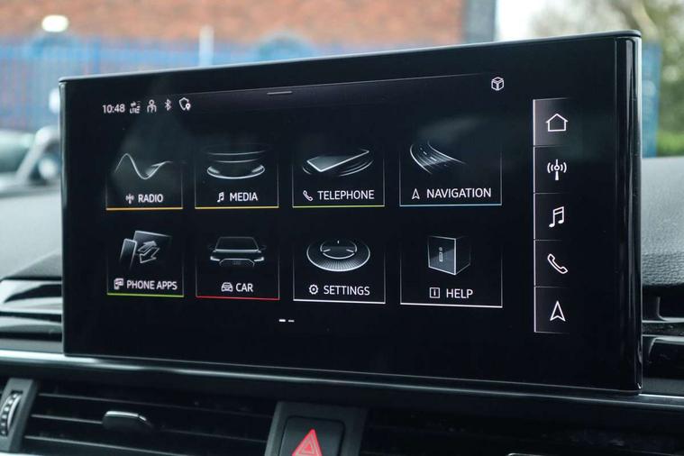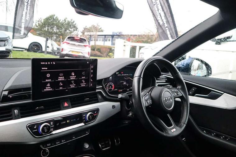 Audi connect safety and service (e-call), Audi drive select, Audi parking system plus with front and rear sensors, Audi smartphone interface, Audi virtual cockpit, Automatic start-stop system with coasting functionality and efficiency programme, Bluetooth interface, Electromechanical power steering, MMI Navigation plus with MMI touch includes 10.1" high resolution colour MMI display, 3D map, Power operated tailgate, Rear view camera, Voice control system, 54 litre fuel tank, Sports suspension lowered by 23mm, 2 USB charging ports, 8 passive loudspeakers, DAB digital radio reception, Aluminium roof rails, Auto dimming rear view mirror, Body colour door handles, Body colour front spoiler lip, Body colour side sill trim, Body coloured door mirrors, Electrically folding auto dimming/adjustable/heated door mirrors with LED side indicators and kerb view function for passenger side, Grained matt black side air inlets with matt aluminium silver inlay, High beam assistant, Honeycomb structure radiator grille in grained matt black, LED headlights with LED rear lights + dynamic rear indicators + headlight adjustment and high beam, turning light + LED daytime running lights, Matt aluminium silver tailpipe trim, New design rear diffuser, Privacy glass, Rain and light sensors, S Line badges on the front wings, S line front and rear bumpers with side skirts, S Line rear diffuser in matt titanium black with trim strip in matt aluminium silver, S Line roof edge spoiler, Windscreen with acoustic glazing, 4 way electric lumbar support for driver and front passenger, 40/20/40 split folding 3 rear seat bench in 3 parts with rear centre armrest, Black cloth headlining, Black perforated leather gearknob, Contrast stitching on seats, steering wheel and gear lever gaiter, Deluxe 3 zone electronic climate control, Door sill trims with aluminium inlay, Electric load area cover, Front and rear head restraints, Front centre armrest, Heated front seats, Illuminated door sill trims with S logo, ISOFIX child seat mounting and top tether, Manual seat adjustment, Stainless steel pedals and foot rest, High gloss package - A4, LED Interior light pack - A4/S4, 3 rear seatbelts, 6 airbags - Driver, front passenger, curtain and side windows, Electronic Stabilisation Control (ESC) including ABS, ASR and EDL, Hill hold assist, Multi collision brake assist, Pop-up bonnet for pedestrian protection, Pre sense city, Seatbelt monitoring, Warning triangle and first aid kit, Anti theft alarm, Anti theft wheel bolts, Keyless Go, Matt brushed aluminium inlays, Tool kit, Tyre repair kit,