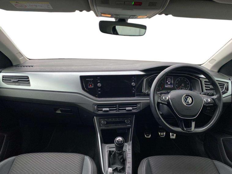 Air vents in High gloss black, Limestone grey decorative inserts, Discover media navigation system with 8" display including streaming and internet pack - Polo, Light and sight pack - Polo, Winter pack - Polo, 15" Galway alloy wheels with anti theft wheel bolts, Alarm with interior protection and deactivation via infotainment system, Electronic engine immobiliser, Remote central locking with 2 remote folding keys, Diversity antenna for FM reception, Front and rear 6 speakers, 3 point height adj front seatbelts + pretensioners, 3x3 point rear seatbelts, ABS, Automatic post collision braking, Driver/front passenger airbag, Drivers and front passengers safety optimised head restraints, ESP with EDL + ASR, Front and rear passenger curtain airbags, Front disc brakes and rear drum brakes, Front passenger airbag deactivation, Front seat side impact airbags, HBA (Hydraulic Brake Assist), Hill hold control, Single tone horn, Tyre pressure monitoring system, Active aluminium scuff plates, Active badge on B Pillar, Black grille with chrome surround, Black radiator grille with chrome louvres, Body colour bumpers, Body colour door handles, Body colour door mirrors with integrated indicators, Body colour rear spoiler, Body coloured side sills, Electric front windows, Electrically adjustable and heated door mirrors with reverse activated kerb view adjustment on passenger's side, Front windscreen washers and wipers with 4 speed intermittent delay, Heat insulating rear tinted glass from B-pillar backwards approx 65% tinted, Heated rear window with auto timer, High level 3rd brake light, LED daytime running lights, LED rear number plate lights, Rear electric windows, Rear windscreen washer and wiper with interval delay, reverse activated, 2 bag hooks in luggage compartment, 2 front and 2 rear reading lights, 2 front cupholders and 12 V socket with cover, 3 rear head restraints, 4 grab handles, 60/40 split folding rear seat, Ambient lighting, Centre console storage with open storage compartment, Chrome interior door handles, Climate control - 2 zone electronic air conditioning with automatic air recirculation and allergy filter, Driver and front passenger seat height adjustment, Driver and front passenger sunvisors with illuminated vanity mirrors, Dust/pollen filter, Folding rear seat backrest, Front + rear carpet mats, Front head restraints, Front seat backrest storage pockets, Gear lever gaiter in black trim surround, Glovebox, Handbrake grip button in chrome effect, Height/reach adjustable steering column, Instrument lighting, adjustable panel illumination, Interior light with delay, Isofix Preparation 2 Rear child seats, Leather gear knob and handbrake grip, Leather multifunction steering wheel, Luggage compartment cover, removable, Luggage compartment lighting, Luggage compartment with variable load floor, Lumbar adjustment for front seats, Special Active Waveform cloth upholstery, Stainless steel foot pedals, Storage compartment in front doors, Storage compartment in rear doors, Storage compartment under front seats, Sunglasses holder, Digital clock, Driver alert system, Emergency call service, Multifunction computer plus, Power assisted speed sensitive steering, Speedo and rev counter, electronic odometer, trip, service interval display and fuel gauge, Start/stop system, Volkswagen connect, Warning buzzer and light for front seatbelts unfastened, Wireless app connect, Battery regeneration during braking, Galvanished body,