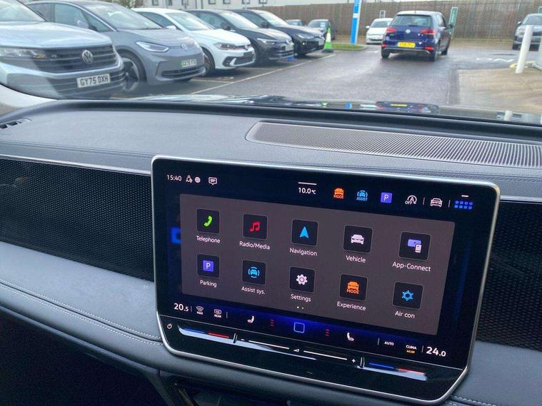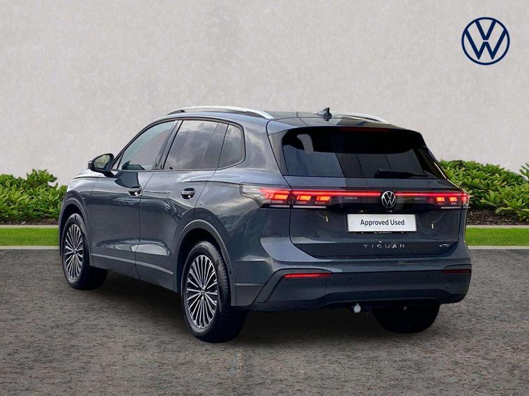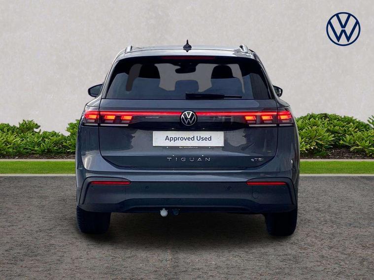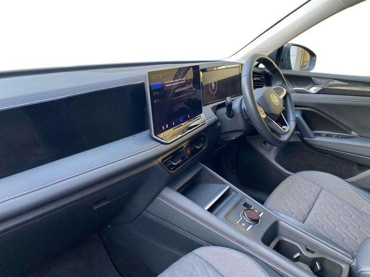 Adaptive cruise control (ACC), Advanced driver attention and drowsiness monitor, Bluetooth mobile phone interface, Digital Cockpit Pro - 10.25" high resolution dash display screen with customisable menus and information, Dynamic road sign display, E-Sim card for online connectivity, eCall emergency call service, Front Assist - Autonomous emergency braking with pedestrian and cyclist monitoring, Lane change system, Side assist, Rear traffic alert and Exit warning system, Lane keeping system Lane Assist, Multifunction front facing camera, Oncoming vehicle braking when turning including swerve support, Park assistance plus with front and rear parking sensors, Power assisted steering with speed sensitive, Start/stop system with regenerative braking, Warning signal and warning light for front and rear seatbelts not fastened, Wireless App-Connect, Front wheel drive, Digital radio reception (DAB), Diversity antenna for FM reception, Ambient lighting with logo projection, Auto dimming interior rear view mirror, Automatic headlight control system, Body coloured bumpers and air intake with chrome trim, Body coloured door handles, Body-coloured exterior mirror housings, Coming/leaving home lighting function, Heat insulating glass in side and rear windows, Heat insulating windshield, Heated rear window, High level 3rd brake light, Illuminated door handle recesses, Illuminated lightline between headlamps, Rain sensor windscreen wipers, Rear fog light on one side, reversing light on both sides, Rear side wing doors, Rear wiper, 12V outlet in center console rear and in luggage compartment, 12V socket in centre console, 3 bench rear seats in 2nd row, Air care climatronic 3 zone air conditioning system with rear air conditioning control panel, Carpet mats, front and rear, Centre console with illuminated storage compartment with sliding cover and two drinks holders, Ceramique headlining, Door and side trim panel in foam film and woven fabric, Front centre armrest, ISOFIX anchors for child seats on outer rear seats and front passenger seat compatible with i-Size, Mechanical rear seat release, Power adjustable lumbar support in front, Rear bench seat, split folding, longitudinally movable and folding with load-through hatch and centre armrest, Safety optimised front head restraints, Single front passenger seat, Sun visors with illuminated vanity mirrors, Three rear head restraints, Variable luggage compartment floor, Comfort package incl. Memory feature for Park assist and Safelock - Tiguan, Design package - Tiguan, 3 point seat belt for centre rear seats, 3 Point seat belts in front with pretensioners, 3 point seatbelts in outer rear with ECE label, Driver and front passenger airbag with front passenger airbag deactivation, Electronic parking brake with auto hold, Front and rear curtain airbags, Front and rear side airbags, Front centre airbag, Front disc brakes, Manual child proof rear door locks, Rear disc brakes, Two tone horn, Warning triangle, Anti theft wheel bolts, Soul instrument panel,