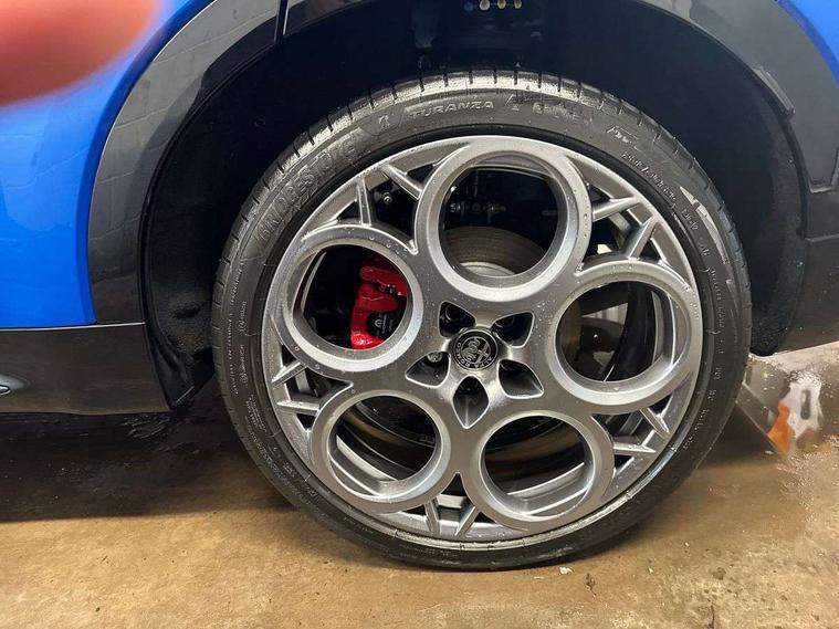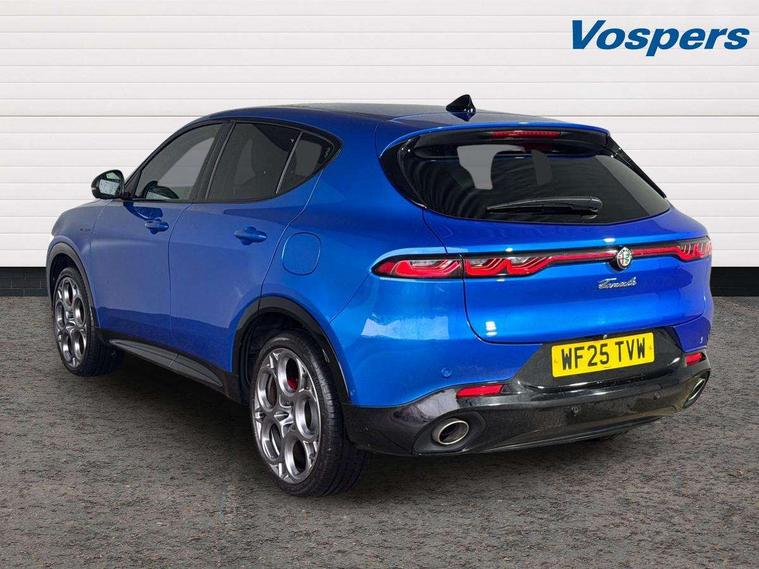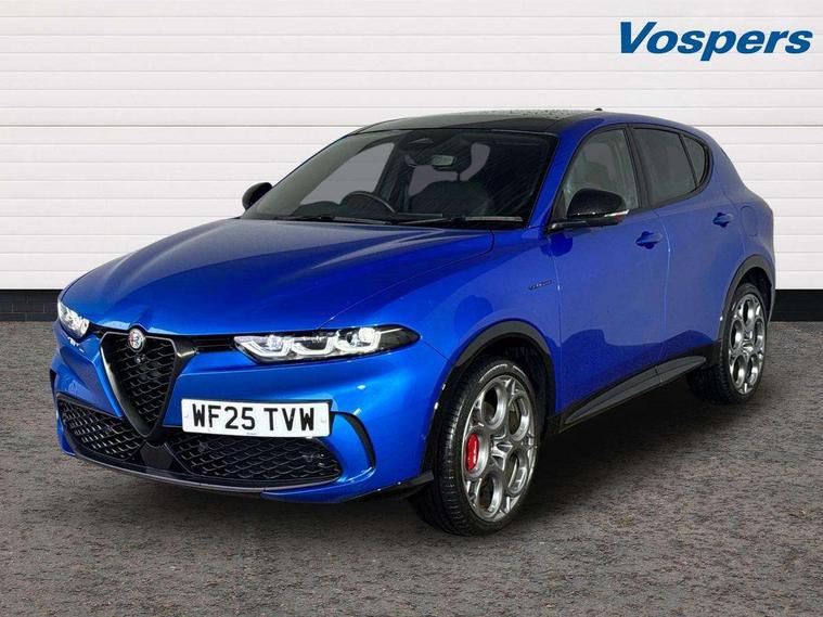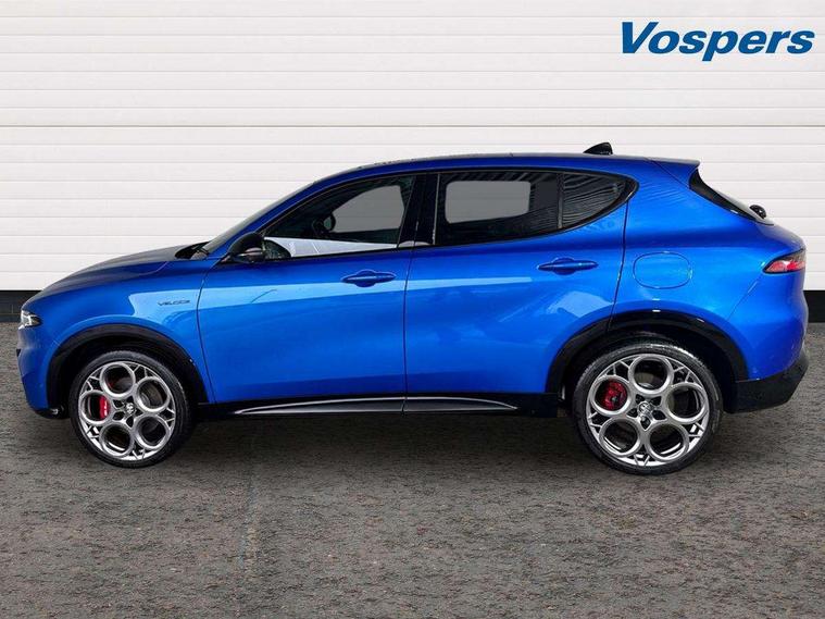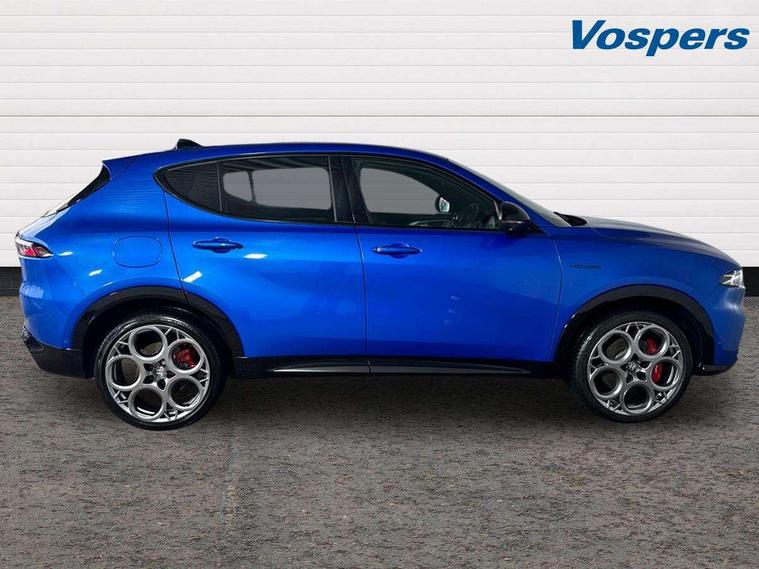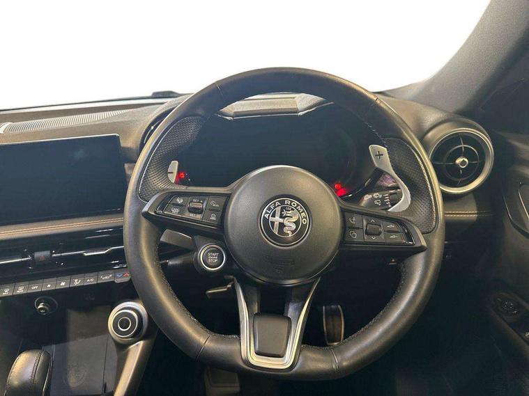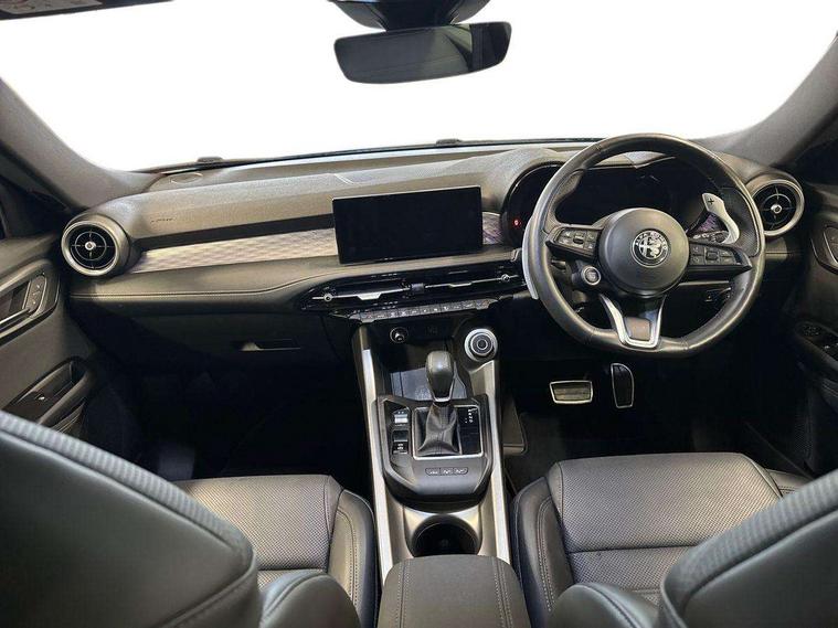 Adaptive cruise control with Stop and Go, Alfa connect box, Alfa connect services, Alfa dna with esc off (3 modes + esc off), Apple car play/Android Auto, Drowsy driver detection, e-Call (emergency call), Forward collision warning, Full tft instrument cluster - 12.3", Intelligent speed assist, Lane support system, PAS, Passive / keyless entry (front doors), Quick guide in english, Speed limiting device, Traffic sign recognition (w/navigation), Warranty handbook uk, Wireless charging pad, Mode 2 charging cable, Mode 3 charging cable, 10.25" radio touchscreen, usb, bluetooth audio streaming, voice controls with navigation, DAB digital audio broadcast, PHEV infotainment specific graphics and features, 4 Interior puddle lights, Auto headlamps with dusk sensor, Auto high beam, Auto wipers with rain sensor, Auto-dimming rear internal mirror, Black painted mirror caps, Body colour door handles, Body colour rear roof spoiler, Chrome finishing tonale badge, Electric exterior mirrors (heated), Electrical-folding exterior mirrors, Front and rear power windows with auto up/down and antipinch, Full LED rear lamps, Gloss black painted body kit w/ Black side and front inserts and skidplate, Gloss black painted window surround, LED blade stop light, LED cornering projector light, LED license plate light, Matrix full led headlamps with adaptive system and fog light function, Phev exterior badging, Privacy glass, Rear side wing doors, Rear wiper, Roof, hood and exterior mirrors protection, Shark fin antenna, U shaped LED blades DRL signature and dynamic turn indicator, V front bezel black, Welcome/leaving lighting, 12V socket in boot, 4 Ways electric driver and passenger lumbar adjustment, 60/40 Rear seats with ski pass, Alfa logo embroided on headrest, Ambient lighting and backlighted film-carbon look, Black ceiling and pillars, Bottle storage 1l on door panel, Centre armrest with dark grey stitching, Centre tunnel with rotary shifter and glossy black painted central bezel, Door armrest with biscotto stitching, Dual zone air conditioning with aqs (with rear airvents), Front armrest (integrated in the central tunnel), Front headrests, Front usb plug type a + c (charge + data), Front/rear floor mats, Metallic pedals, Mono colour ambient light (included in domelamp), Overhead console with domelamp led and switches, Perforated leather upholstery, PTC heater, Rear central armrest and 3 headrests, Rear usb plug type a + c (charge), Scoba shark black grain PVC centre armrest, Scoba shark black grain PVC upper door panel and armrest, Seat belt height adjustment, Single front passenger seat, Sport leather steering wheel with start button, Sunvisor mirror with light (driver and passenger), Ventilated front seats, Veloce RHD PHEV pack - Tonale, Winter pack - Tonale, 6 airbags, ABS, Autonomous emergency braking inter-urban, Electric parking brake with autohold, Emergency braking pedestrian and vulnerable road users - interurban, ESP, Manual rear child locks, Rear seatbelt reminder alert, Three 3 point rear seatbelts, Tyre pressure monitoring system (TPMS), Capless fuel filler, Keyless Go, Vehicle theft alarm with hood protection and intrusion sensor (thatcham), Backlight film graphic dashboard insert, Biscotto stitching on dashboard, Scuba shark black grain PU dashboard, Black and white alfa romeo logo center wheel caps, Fix and go puncture repair kit, Summer tires,