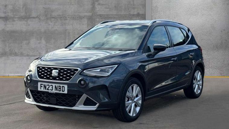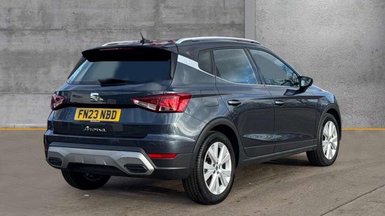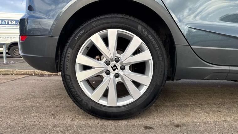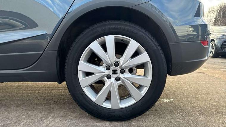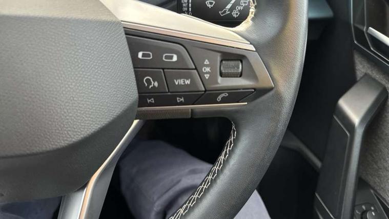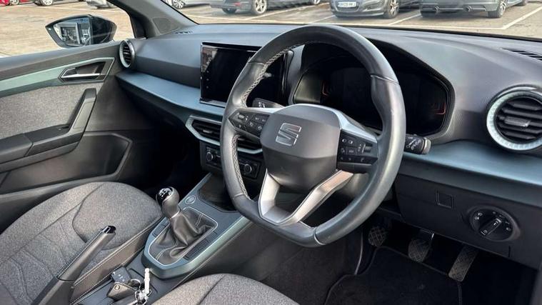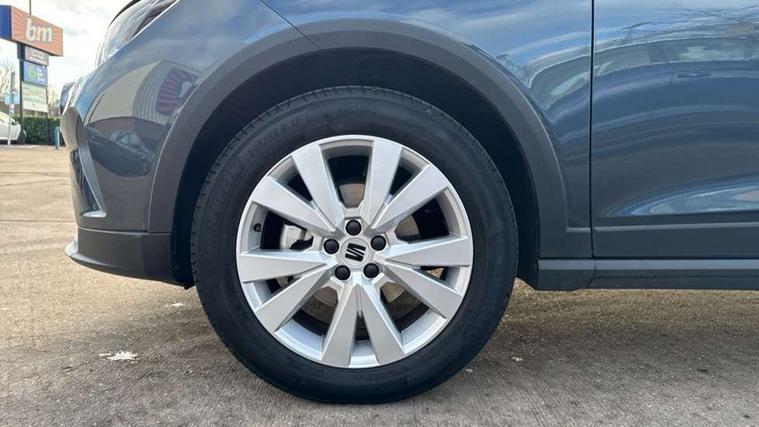 'Lights On' Reminder warning buzzer, 8" Digital cockpit, Digital clock, E-call, Electric speed sensitive power steering, Full Link Smartphone Integration with Mirror Link, Apple Car Play, Google Android Auto with USB Type C cable for Apple and Android compatibility, Lane keeping system, Low fuel warning light, Outside temperature display, Rear parking sensor, RPM counter, Seat connect with safety, service, remote and online, Trip computer, Wireless phone charger, 9.2" colour touchscreen with navigation system, voice control and USB port (type c), Bluetooth interface for hands free and audio streaming, DAB digital radio and AM/FM radio, Steering wheel mounted audio controls, Anti theft roof antenna, Auto dimming interior rear view mirror, Automatic activation of hazard warning lights, Body coloured bumpers, Body coloured door handle inserts, Chrome roof rails and window surrounds, Electric front/rear windows, Electrically adjustable, heated and folding door mirrors, Front fog lights with cornering function and rear fog light, FULL LED automatic headlights with dynamic headlight range control, coming and leaving home, LED daytime running lights, Hidden exhaust pipe, LED rear tail lights and licence plate lights, Protective side mouldings, Rain sensing wipers, Rear side wing doors, Rear spoiler, Rear window wash/wipe, Roof colour door mirrors, Third brake light, Visible VIN plate, Windshield wiper with intermittent control and potentiometer, 2 cupholders, 3 seat bench in 2nd row, 60/40 split folding rear seat, Aircare filter, Black interior roof, Cloth upholstery, Double boot floor, Driver sunvisor with covered mirror + card holder, Dual zone climate control, Flat bottomed leather steering wheel/gear knob/handbrake, Front courtesy light with front reading lights, Front seat back storage pockets, Gear shift indicator, Height adjustable front seats, Height/reach adjustable steering column, Illuminated boot, Instrument lighting with brightness control, Interior ambient lighting, Interior light in footwell, central console and door panel, ISOFIX points in outer rear seats with top tether anchorage points, Leather steering wheel/gear knob/handbrake, Passenger sunvisor with vanity mirror, Single front passenger seat, Storage net on centre console, Two front and three rear height adjustable headrests, Interior chrome pack - Arona, Safety and driving pack (M) - Arona, Storage pack - Arona, 3 point seatbelts on all rear seats, ABS, Active front headrests, Child locks on rear doors, Driver and front passenger airbags with front passenger airbag de activation, front side and curtain airbags, Electronic stability control, Emergency Brake Assist (EBA) and front assist, Front and rear seatbelt reminder, Hill hold control, Multi-Collision braking, Tiredness recognition system, Traction control, Tyre pressure monitoring system, Alarm with back-up horn, Electronic engine immobiliser, KESSY Keyless entry and go, Locking wheel bolts, Remote central locking + deadlocks, Tow away protection, Titan black dashboard, 17" Dynamic alloy wheels,