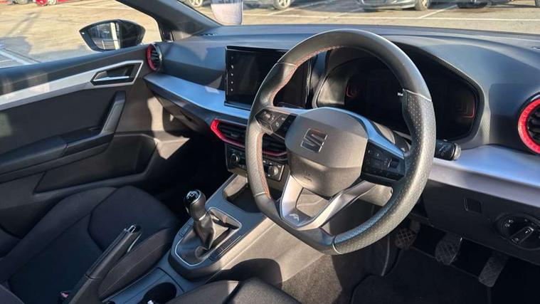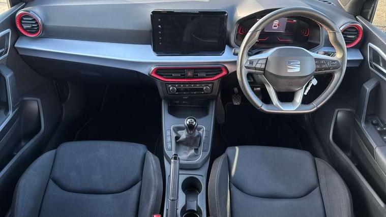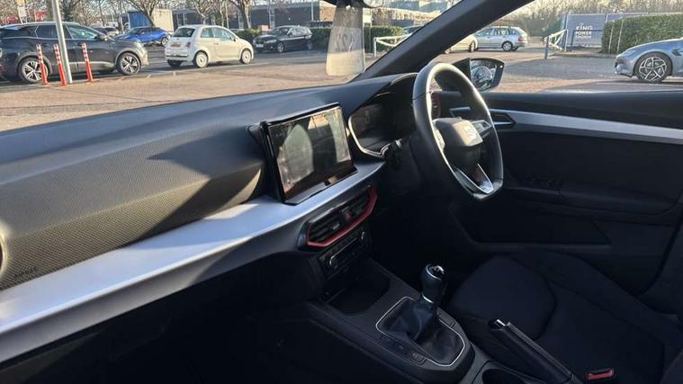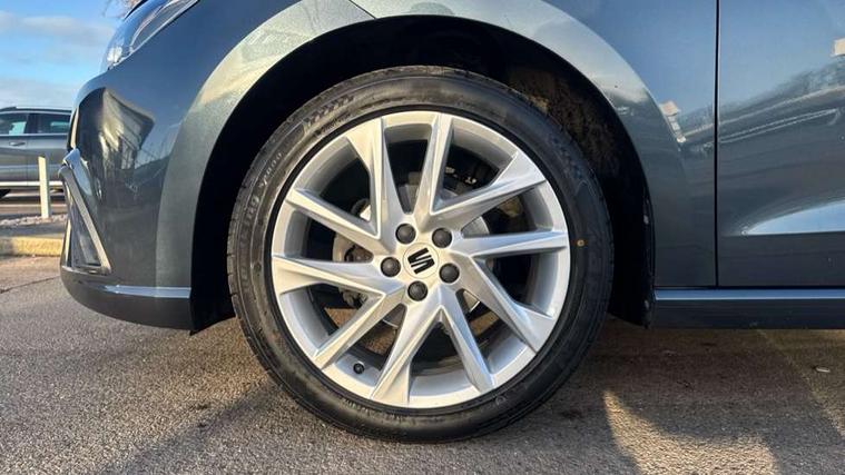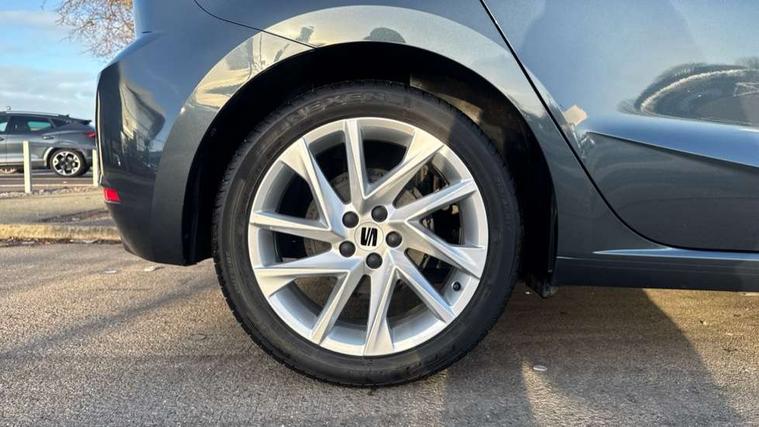'Lights On' Reminder warning buzzer, 8" Digital cockpit, 9.2" touchscreen navigation system with type C USB socket, Voice control and DAB/AM/FM radio, Auto start and stop system, Bluetooth audio streaming with handsfree system, Digital clock, E-call, Full link smartphone integration with mirror link, wireless apple carplay, Google android auto + USB Type C cable for apple and android devices, Lane assist, Low fuel warning light, Outside temperature gauge, Power Steering, Seat connect with safety, service, remote and online, SEAT drive profiles and ECO function, SEAT logo boot release, Speed limiter, Trip computer, Sports suspension, Auxiliary input socket, Radio/MP3 player, SD card slot, Steering wheel mounted controls, Anti theft roof antenna, Auto dimming rear view mirror, Automatic rain sensing wipers, Black door mirrors, Body colour bumpers, Body colour door handles, Brilliant black window surrounds, Dark tinted rear windows, Electric adjustable/heated/folding door mirrors, Electric front windows, Electric headlight adjustment, Electric rear windows, Front/rear fog lights, FULL LED automatic headlights with dynamic headlight range control, coming and leaving home, LED daytime running lights, LED tail lights, Rear roof spoiler with FR twin exhausts, Rear side wing doors, Rear wiper, Third brake light, 3 seat bench in 2nd row, 60/40 split folding rear seat, Ambient interior lighting, Chrome detailing and black headlining, Cloth upholstery, Dual zone climate control with combination filter, Front courtesy lights, Front cupholders x 2, Front reading lights, Gear shift indicator, Glovebox, Height adjustable front and rear headrests (five), Height adjustable front seats, Height/reach adjust steering wheel, Illuminated air vent surrounds, Illuminated boot, Instrument lighting with brightness control, Isofix, Leather multifunction flat bottomed sports steering wheel, Passenger sunvisor, Single front passenger seat, Sports seats, Sunvisors with mirror and driver side card holder, 3 point seatbelts on all 3 rear seats, ABS, Active front headrests, Child locks on rear doors, Electronic stability control, Energy recovery system, Front assist forward collision warning and autonomous emergency braking, Front driver and passenger side airbags with curtain airbag and front passenger airbag deactivation, Hill hold control, Multi-Collision braking, Seat belt reminder for front and rear seats, Tiredness recognition system, Tyre pressure monitoring system, Electronic engine immobiliser, Locking wheel bolts, Perimeter alarm and interior monitoring with backup horn and tow away protection, Remote central locking + deadlocks, 17" Alloy wheels in Brilliant silver,