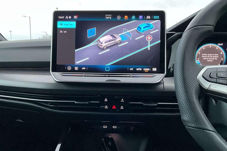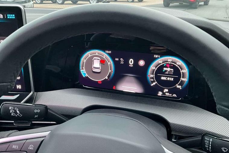 Activated carbon canister, Adaptive cruise control (ACC), Advanced driver attention and drowsiness monitor, Dynamic road sign display, Dynamic steering, E-Sim card for online connectivity, eCall emergency call system, Multi-color Digital cockpit pro, selection of different info profile possible, Multifunction front facing camera for distance control, Navigation system, Oncoming vehicle braking when turning including swerve support, Preparation for light assist system, Speed limiter, Speedo, rev counter, electronic odometer, trip, service interval display, exterior temperature and fuel gauge, Traffic jam assist, Voice enhancer and voice control, Warning signal and warning light for front and rear seatbelts not fastened, We connect plus preparation, We connect preparation, Wireless app connect, Petrol Particulate Filter, Start-stop system with battery regeneration (recuperation - energy recovery during braking), XDS electronic differential lock for improved traction and handling, 2 USB C ports in front, 2 USB charging sockets on the centre console in the rear charging capacity upto 45W, Comfort telephony + wireless charging, without wireless aerial connection, Digital radio reception (DAB), Diversity antenna for FM reception, Gaming platform via car app, Infotainment system with 12.9" display, Mobile phone interface with inductive charging feature, 3rd brake light, Auto headlights, Automatic headlamp activation with Coming home and Leaving home feature, Body colored bumpers in R-Line style, Body colour door handles, Exterior ambient lighting with illuminated door handles, Exterior mirrors convex on the left and aspherical on the right, Front and rear electric windows, Heat insulating windshield made of laminated glass, LED daytime running lights, Rear exhaust tailpipe, Rear fog light on one side and reversing lights on both sides, Rear side wing doors, Rear windscreen washer and wiper with interval delay, Remote electrically foldable door mirrors, puddle lights and reverse activated passenger's door mirror, Welcome light with surround lighting, 12V socket in front centre console, 12V socket in luggage compartment, 3 rear head restraints, 3 seat bench in 2nd row, Ambient lighting with 30 colour including LED light unit in front footwell with selectable light colour, Brushed stainless steel pedals, Carpet mats, front and rear, Chrome plated radiator grille inserts, air vent surrounds and light switch surrounds, Front centre armrest, Integrated front head restraints, ISOFIX anchors for child seats on outer rear bench seats and on front passanger seat compatible for i-Size, Leather gearshift handle, Luggage compartment lighting, Premium sports seats in front, Rear cupholder and loadthough, Single front passenger seat, Soul black instrument panel, Split folding backrest with centre armrest and unsplit rear seat bench, Storm grey roof lining, Sun visors with illuminated vanity mirrors, 3 point height adj front seatbelts + pretensioners, 3 rear three point seatbelts, ABS, Autonomous emergency braking front assist with pedestrian and cyclist monitoring, Child locks on rear doors, Driver and front passenger airbag with front passenger airbag deactivation, Electronic parking brake with auto hold, ESC (Electronic Stability Control), Extended pedestrian protection measures, Rear disc brakes, Two tone horn, Tyre pressure loss indicator, Volkswagen roadside assistance, Anti theft wheel bolts, Preparation for alcohol interlock, Decorative inserts carbon grey for dashboard and front door trim panels,