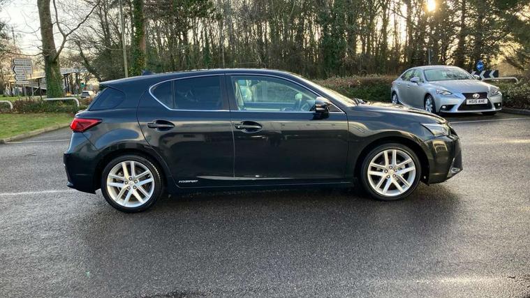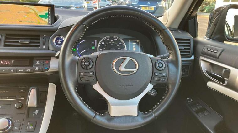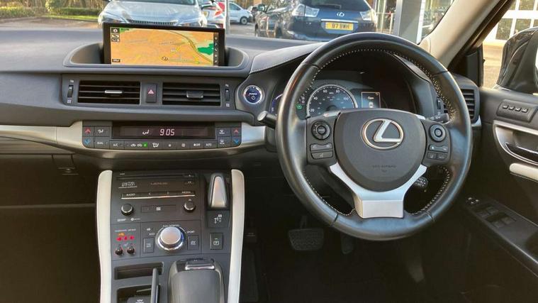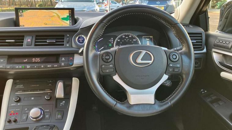 Bluetooth mobile phone connection, Drive mode selector, EPS with speed sensitive steering, Lexus premium nav - 10.3" screen, DVD, European map, connected service, reversing camera, remote control, Auto dimming rear view mirror, Lexus safety systems+ adaptive cruise control, pre crash safety, traffic sign recognition, sway warning system, automatic high beam, Push button starter, Trip computer, Vehicle Dynamics Integrated Management, Vehicle Stability Control (VSC), 2 USB ports, AUX socket with VTR compatibility, DAB Digital radio, Mark Levinson premium surround sound system with 13 speakers, Auto headlights, Body colour bumpers, Electric sunroof, Front and rear one-touch automatic power windows equipped with a jam protection, Headlamp washers, Heated, auto-folding, auto-dimming outside mirrors with memory function, reverse tilt function, turn indicators and puddle light, LED brake lights and rear lights with emergency brake signal, LED daytime running lights, LED front fog lamps, LED low beam headlights, Rain sensor windscreen wipers, Rear privacy glass, Rear spoiler, Rear wiper, 2 cup holders in the front and rear centre console, 2 map pockets in the rear of the front seats, 2 way electrical lumbar adjustment for driver, 2 x coat hooks in the rear, 2 x sun visors with vanity mirror and lamp, 4 way electric passenger seat, 4 x tie down hooks in the boot, 60/40 split folding rear seat, 8 way electric adjustable drivers seat, Card holder installed in drivers sun visor, Driver and passenger door pocket, Driver seat memory function, Dual zone climate control, Front aluminium scuff plates, Front and rear head restraints, Front and rear textile carpet mats, Front centre armrest with storage, Front glove box with lock, Heated front seats, Leather upholstery, Manually reach and rake adjustable leather steering wheel, Multifunction steering wheel, Storage tray under the deck board boot + storage location for tonneau cover, Sunglasses storage by interior rear view mirror, Whiplash lessening front seats, Convenience Pack with front and rear parking sensors - CT, 2 x Isofix child rear seat restraints, 3 point ELR front seatbelts with pretensioners, ABS, BAS (Brake Assist System), Driver and front passenger 2 stage airbag, Driver and front passenger knee airbag, Driver and passenger side airbags, ECB (Electronically Controlled Brake System), Electronic brake force distribution, Front and rear curtain airbags, Hill assist control, Passenger airbag cut-off device, Three 3 point rear seatbelts, Traction control, Tyre pressure warning, Anti-theft system with siren, intrusion sensor, tilt sensor and immobiliser, Locking wheel nuts, Two motion door lock with double lock, VIN Window etching, Black metal film inlay, 17" Alloy wheels,