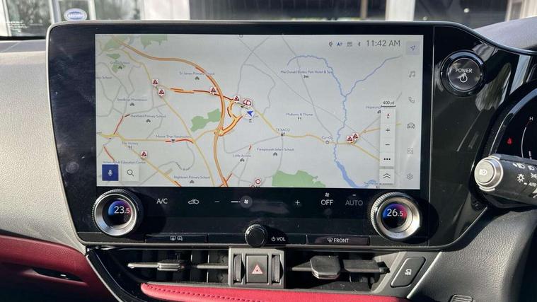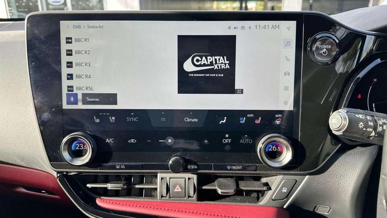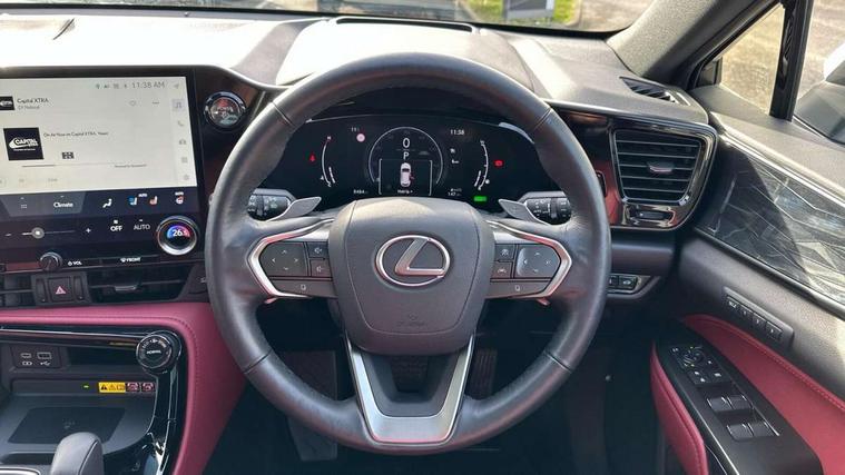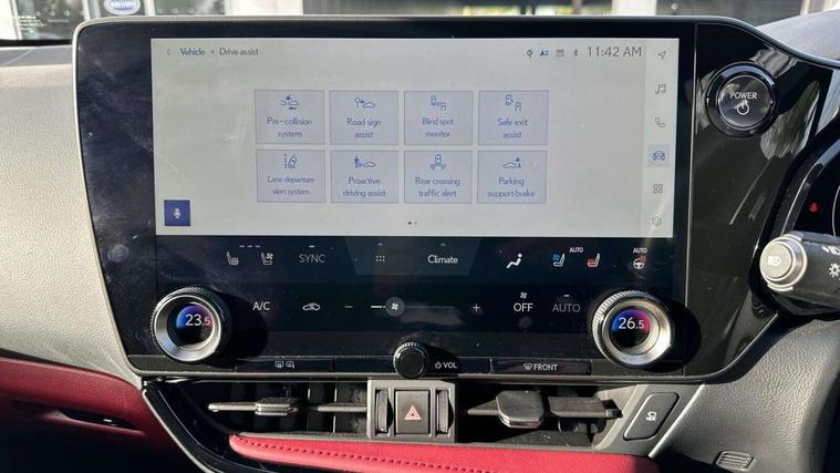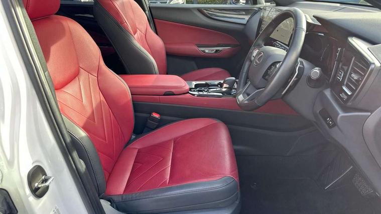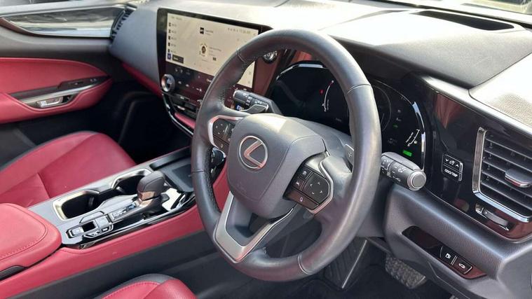 4 driving modes EV/Eco/Normal/Sport, 7" display in instrument binnacle, Bluetooth telephone connectivity, eCall emergency system, Electric speed sensitive power steering, Intelligent parking sensors - 4 front and 4 rear, Lane change flasher function, Lexus link connect - Cloud based navigation, cloud based voice assistant, always online and 9.8" VGA touchscreen, Push button starter, Reversing camera with back guidelines, Service interval indicator, Tailgate, Wireless Apple CarPlay and wired Android Auto, All Wheel Drive (AWD), Hybrid automatic transmission, Vehicle Dynamics Integrated Management (VDIM), Vehicle Stability Control (VSC), 10 speakers, 4 USB ports - 2 front, one USB C, 2 rear USB C, DAB Digital radio, Auto dimming interior rear view mirror, Automatic headlights, Bi LED headlights, Double hidden exhaust pipes, Front and rear one touch power windows, with anti-jam protection, Heated, auto-folding, auto-dimming outside mirrors with reverse tilt function and turn indicators, LED brake lights and rear lights with emergency brake signal, LED daytime running lights, LED Indicators, Light green UV acoustic rear doors & rear glass, Power back door system, Rain sensor windscreen wipers, Rear side wing doors, Rear wiper, Roof rails, 12V accessory port centre console and luggage compartment, 2 cupholders in front centre console, 2 x fixed shopping bag hooks in boot, 2 x sun visors with vanity mirror and lamp, 3 seat bench in 2nd row, 4 x tie down hooks in the boot, 6 tie down hooks in boot, 6 way manually adjustable front seats, 60/40 split folding rear seat, Adjustable rear seat backrest, Card holder installed in driver and passengers sun visors, Centre armrest with storage box, Dual climate control air conditioning system, Front and rear head restraints, Front and rear textile carpet mats, Front passenger seat, Heated front seats, Leather gear lever, LED interior illumination, Power adjustable leather steering wheel with paddle shifts, Rear centre armrest with 2 cupholders, Tahara leather upholstery, Whiplash Injury Lessening (WIL) feature (active headrest) for seats, 2 x Isofix child rear seat restraints, 3 point ELR front seatbelts with pretensioners, 3x3 point rear seat belts, ABS, Adjustable seat belt anchor points, Driver and front passenger 2 stage airbag, Driver/front passenger side airbags, Drivers knee airbag, E-Latch electric door release, EBD + Brake Assist, ECB (Electronically Controlled Brake System), Electronic parking brake, Front and rear curtain shield airbags, Front center airbag, Front passenger seat cushion airbag, Hill assist control, Lexus safety system - dynamic radar cruise control, pre collision system day and night, lane tracing assist, road sign, automatic high beam, OTA, Manual rear child locks, Passenger airbag cut-off device, Traction control, Tyre pressure warning, Anti-theft system with alarm, intrusion sensor, glass breakage sensor, tilt sensor and engine immobiliser, Locking wheel nuts, Speed sensitive auto door locking, Ultra Wide Band (UWB) Anti-theft system, VIN Window etching, Black microdot inlay, Tyre repair kit,