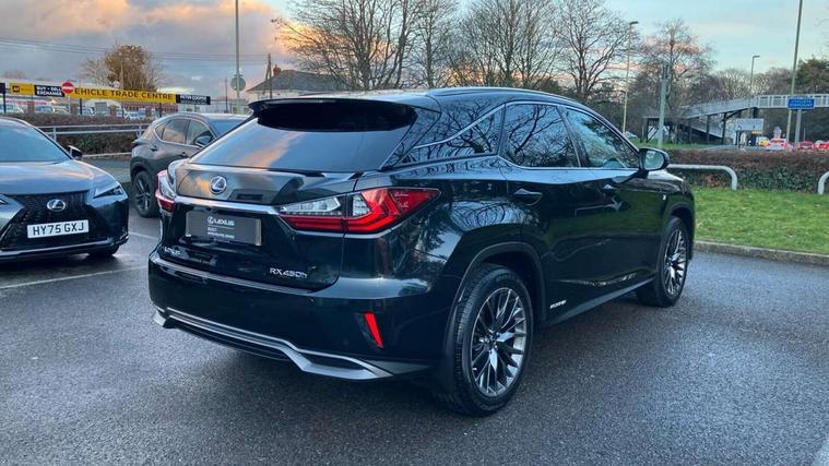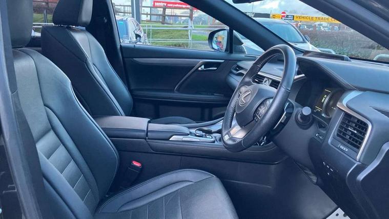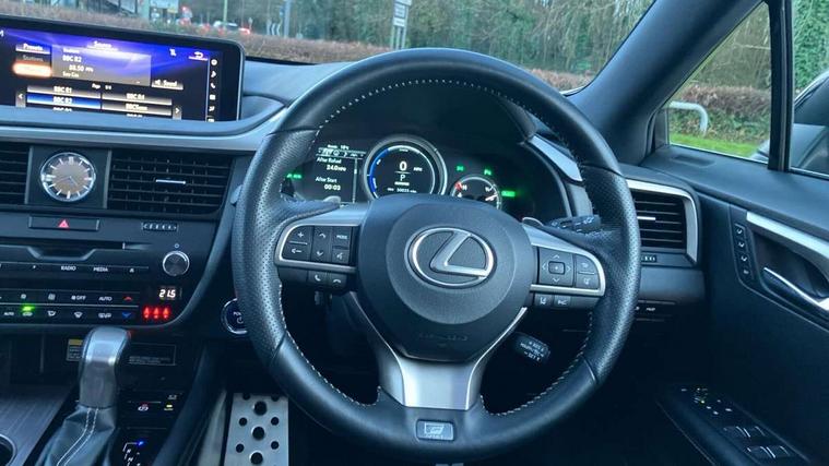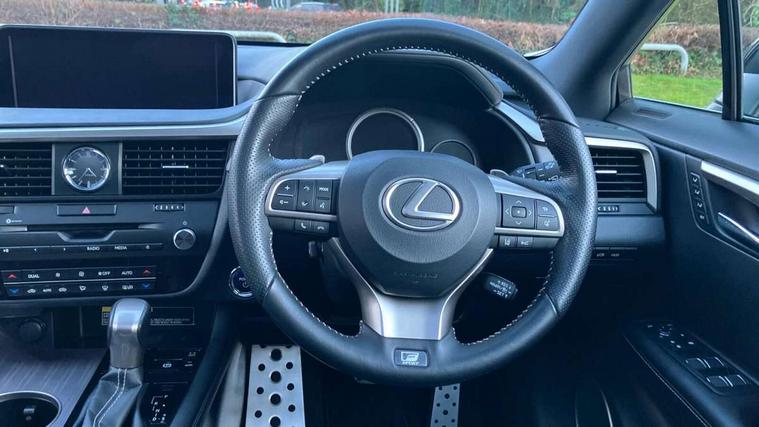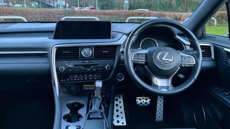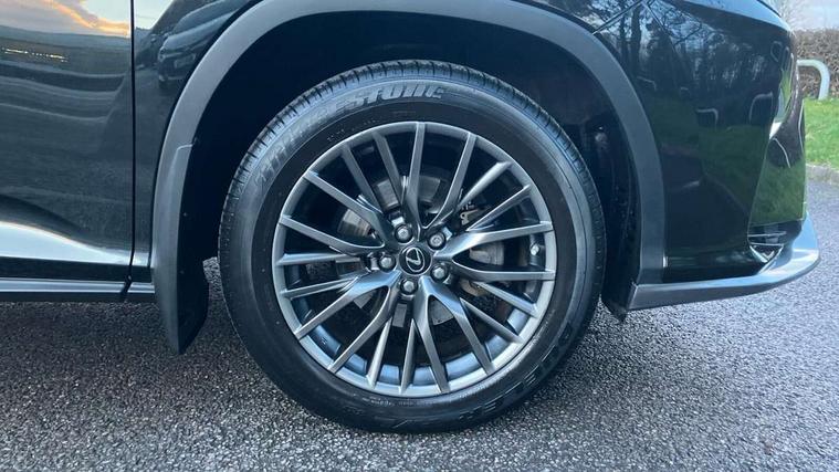Adaptive cruise control + pre-crash system, Analogue clock, Analogue clock with GPS function, Bluetooth system, Drive mode selector, Driver alert system, EPAS, Hands free power tailgate, Intelligent parking assist, Lane keep assist, Multi-information display, Premium navigation system, Push button starter, Remote touch interface, Reversing camera, Service interval indicator, Sports steering system, Traffic sign recognition, Trip computer, Wireless Smartphone charger, Adaptive variable suspension, VDIM, Vehicle Stability Control (VSC), 12 speakers, 12.3" colour touch-screen display, Auxiliary input socket, DAB Digital radio, DVD System, Steering wheel mounted audio/telephone controls, USB connection, 3 eye LED headlamps, Adaptive front lighting system, Auto dimming interior mirror + dimming door mirrors, Auto high beam assist, Black mirror caps, Body colour bumpers, Door mirror memory, Electric folding door mirrors, Electrochromatic rear view mirror, F SPORT exterior styling, Front and rear electric windows, Front windscreen de-icer, Headlight washers, Heated door mirrors, Laminated front side windows, LED brake lights and rear lights with emergency brake signal, LED cornering headlights, LED daytime running lights, LED front and rear sequential indicators, LED front fog lights, LED rear lights, Power back door system, Privacy glass (rear side windows and rear screen), Puddle lights, Rain sensor windscreen wipers, Rear wiper, Roof rails, Roof spoiler, UV reducing glass, 2 bag hooks in luggage compartment, 2 way electric lumbar support, 3 rear headrests, 3 x 12V power sockets, 4 load securing hooks in luggage area, 60/40 split sliding rear seats, 8 way electric adjust front seats, Active sound control, Aluminium scuff plates, Aluminium sports pedals, Auto air recirculation, Card holder installed in driver and passengers sun visors, Carpet mats, Centre armrest with storage box, Clean air filter, Driver seat memory function, Driver/passenger temperature controls, Dual zone climate control air conditioning system with auto recirculation, pollen removal mode, nano technology and climate concierge, Electric adjustable steering column, F Sport interior styling, Front centre armrest with 2 cupholders, Front head restraints, Front seat back map pockets, Heated and ventilated front seats, Heated leather steering wheel, Illuminated entry system, Isofix standard child seat restraint mounting, Leather gear knob, Leather gear lever, Leather steering wheel, LED interior illumination, Lexus safety system +, Memory for steering column, Multi function steering wheel, Paddle shift controls, Perforated leather upholstery, Rear armrest with storage + cupholders, Rear door map pockets, Rear side window blinds, Side sunshades, Sliding/reclining rear seats, Sunglasses holder, Sunvisors with illuminated vanity mirrors, ABS, Curtain airbags, Driver/Front Passenger airbags, Driver/front passenger side airbags, Drivers knee airbag, EBD + Brake Assist, Electronic parking brake, Electronically controlled braking, Front passenger seat cushion airbag, Front/rear seatbelt pre-tensioners, Hill start assist, Passenger airbag cut-off device, Rear passenger side airbags, Sway warning system, Three 3 point rear seatbelts, Traction control, Tyre pressure warning, WIL whiplash protection front seats, Anti theft alarm, Deadlocks, Immobiliser, Locking wheel nuts, Remote central double locking, Security window etching, Smart keyless entry, Aluminium inlays, 20" Sport alloy wheels, Space saver spare wheel,