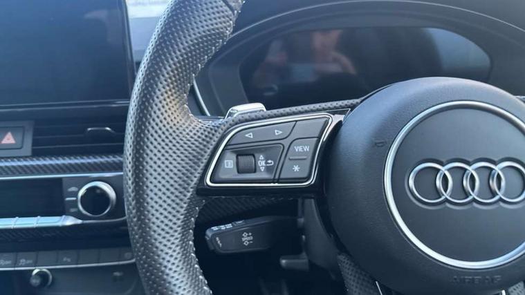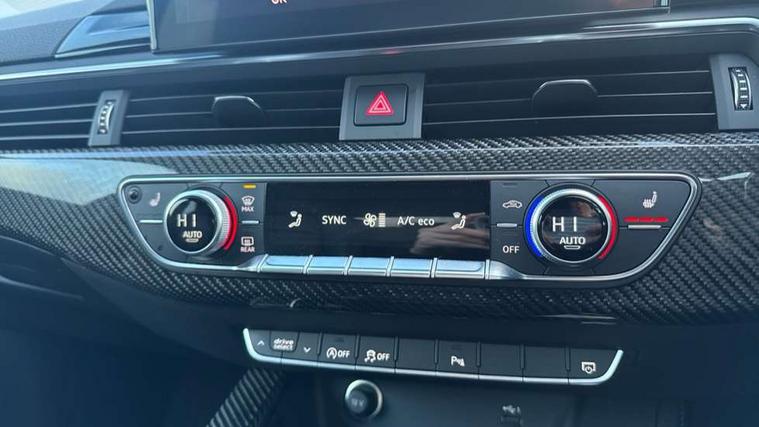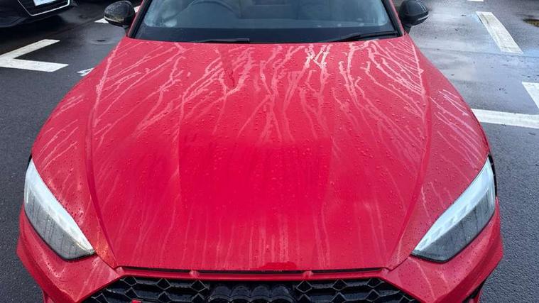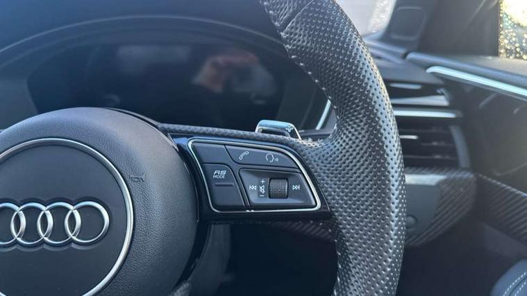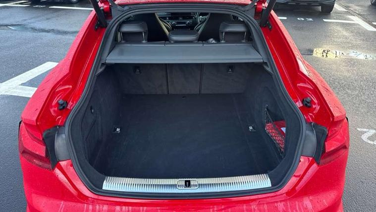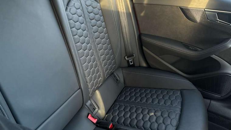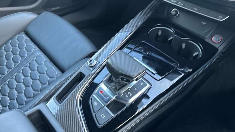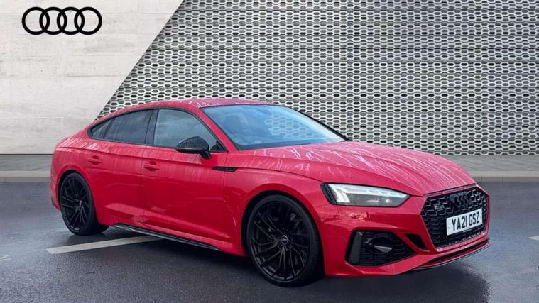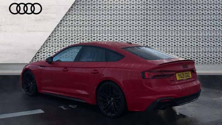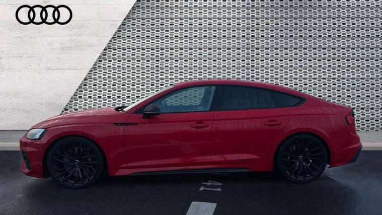 Carbon twill inlays, Carbon black styling pack - RS5, LED Interior light pack - RS5, 20" 5 Segment spoke Evo style design audi sport alloy wheels in glossy black, Tyre repair kit, Anti theft alarm system, Anti theft wheel bolts, Immobiliser, Keyless Go, Remote control key with RS emblem, Audi sound system, DAB digital radio reception, 3x3 point rear seatbelts, 6 airbags - Driver, front passenger, curtain and side airbags, Electromechanical parking brake, Electronic Stabilisation Control (ESC) including ABS, ASR and EDL, Front passenger airbag deactivation, Height adjustable front seatbelts, Hill hold assist, Multi collision brake assist, Pop-up bonnet for pedestrian protection, Pre sense city, RS Model enhanced braking system, Seatbelt monitoring, Tyre pressure warning, Warning triangle and first aid kit, Audi Beam uses LEDs to project the Audi logo, Audi matrix LED headlights with LED rear lights + dynamic front and rear indicators, Audi rings and lettering glossy black, Auto dimming rear view mirror, Body colour door handles, Electric front windows, Electric rear windows, Electrically folding, adjustable and heated door mirrors with integrated LED side indicators and kerb view function for passenger side, Exterior mirror housing in high gloss black, High beam assistant, Larger singleframe grill, LED daytime running lights, Privacy glass with rear acoustic glazing, Rain and light sensors, RS bumper with quattro lettering, RS5 badges on grille, the front wing panels and rear, RS5 dual branch chrome tailpipes with left and right oval pipes, Windscreen with acoustic glazing, 2 x USB charging port with aux input socket, 3 spoke flat bottomed high multi-function leather sport steering wheel with RS badging, 40/20/40 split folding 3 seater rear bench seat, Aluminium shift paddles, Black cloth headlining, Deluxe 3 zone electronic climate control, Electrically adjustable front seats, Fine Nappa leather upholstery, Front centre armrest, Front head restraints, Front/rear floor mats, Heated front seats, Illuminated door sill trims with RS5 logo, ISOFIX child seat mounting and top tether, Leather door armrests and knee pad, Pneumatic massage function, Rear head restraints, RS Specific perforated leather gear lever knob with contrast stitching, RS Super Sports seats with contrast honeycomb stitching, Stainless steel pedals, Tool kit, Audi connect safety and service (e-call), Audi parking system plus with front and rear sensors, Audi phone box with wireless charging, Audi side assist, Audi smartphone interface, Audi Virtual Cockpit with RS specific design and 12.3" display, Automatic start-stop system with coasting functionality and efficiency programme, Bluetooth interface, Electromechanical power steering, Email, calendar and text messages displayed via MMI, MMI Navigation plus with MMI touch includes 10.1" high resolution colour MMI display, 3D map, Rear view camera, RS Audi drive select, RS drive modes on steering wheel, Service interval indicator, Voice control system, Quattro sports differential,