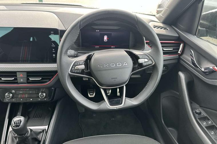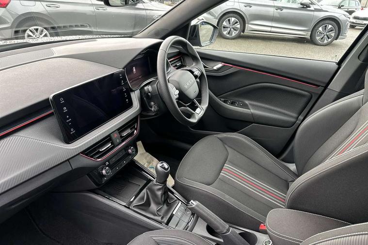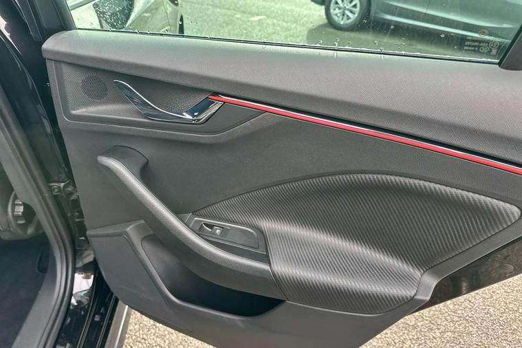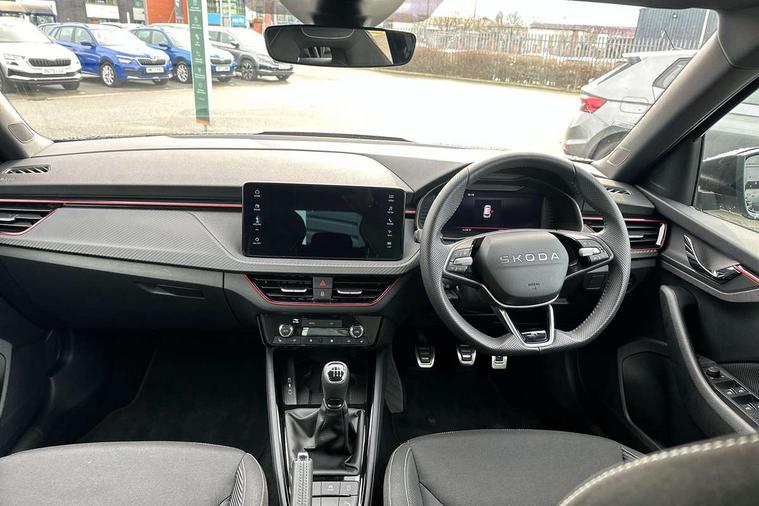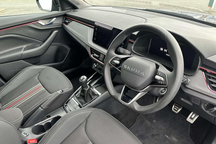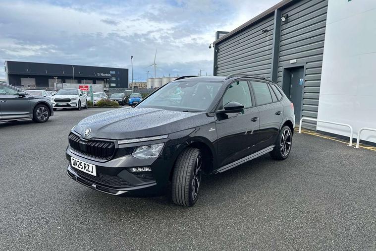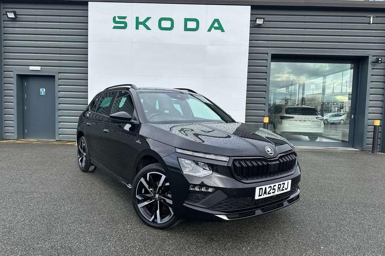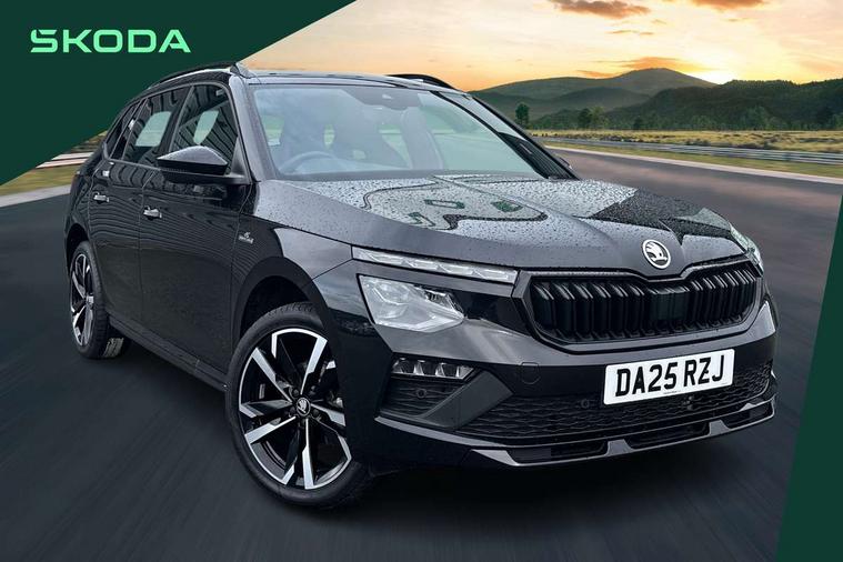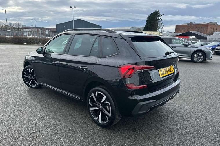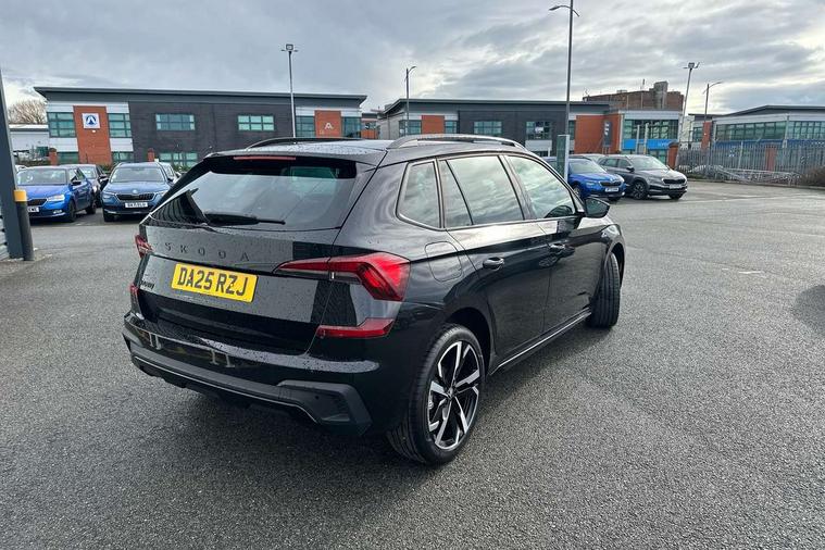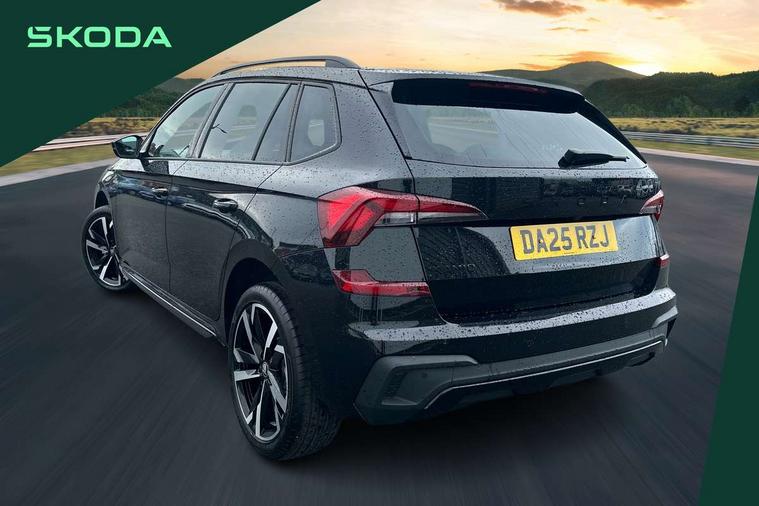 Advanced driver attention and drowsiness monitor, Bluetooth system, E-call, Front assist system, PAS, Rear parking sensors, Rear view camera, Service indicator, Speed limiter, Traffic sign recognition, Virtual cockpit with 10.25" display, Voice control system, Wireless smartlink, 4 USB C ports, 8 Speakers, 9.2" Skoda navigation display, DAB Digital radio, Auto dimming rear view mirror, Automatic headlight control with coming home and leaving home feature, Black door mirrors, Black radiator grille, Black rear diffuser, Black roof spoiler, Body colour bumpers, Body colour door handles, Boot lettering in black, Extended tailgate glass, Fixed panoramic sunroof with black roof rails, Front and rear electric windows, Heated rear window, LED daytime running lights, LED high beam, LED low beam, LED third brake light, Light sensors, Monte carlo plaque, Privacy glass, Rear side wing doors, Rear wiper, Ticket holder inside windscreen, 12V socket in luggage compartment, 3 seat bench in 2nd row, Aluminium pedals, Ambient lighting in white/red, Art leather carbon decor inserts, Art leather carbon door inserts, Black roof lining, Cargo elements, Chrome inner door handles, Driver and passenger sun visors with vanity mirror, Dual zone climate control, Front and rear roof lights, Front centre armrest, Front head restraints, Glove compartment with illumination, Height adjustable driver seat, Height adjustable front passenger seat, Ice scraper, Inner circulation control with pollen filter, ISOFIX on front passenger seat, Isofix preparation for back seats, Leather gearknob and handbrake lever, Manual lumbar support for front seats, Monte Carlo cloth upholstery, Net package and top tether hooks in boot space, Net under rear shelf, Pocket on the back of both front seats include mobile phone pockets, Rake/reach adjustable steering wheel, Reading lights, Rear centre armrests, Red hotstamping, Single front passenger seat, Sports seats, Textile floor mats, Third rear headrest, Top tether for front passenger seat, Umbrella in driver's door, Light and view plus package - Kamiq, 3x3 point rear seatbelts, Airbags - driver and front passenger, Disc brakes, ESP, Extended and predictive pedestrian/cyclist protection, Front passenger airbag deactivation switch, Front side airbags with curtain airbags, Hill hold control, Manual leather parking brake, Manual rear child locks, One tone horn, Seatbelt reminder for driver an co-driver, Traction control, Tyre pressure monitor, Anti-theft alarm system with interior monitoring, backup horn, towing protection and remote central locking with SAFE system, Anti-theft wheel bolts, Electronic engine immobilizer, 18" Ursa black diamond cut alloy wheels,